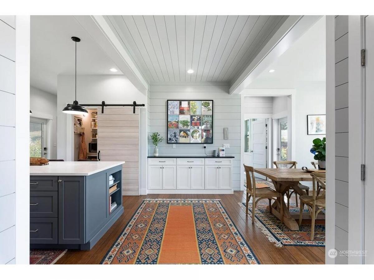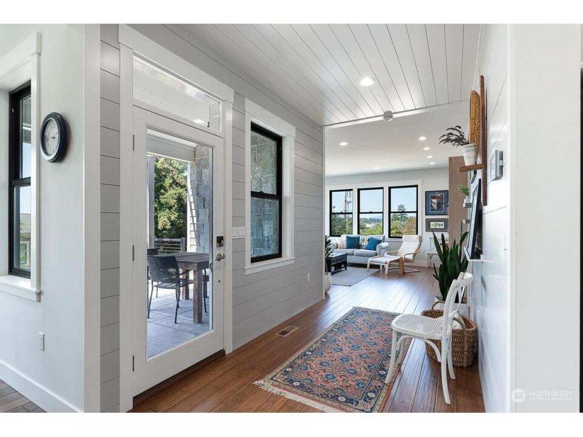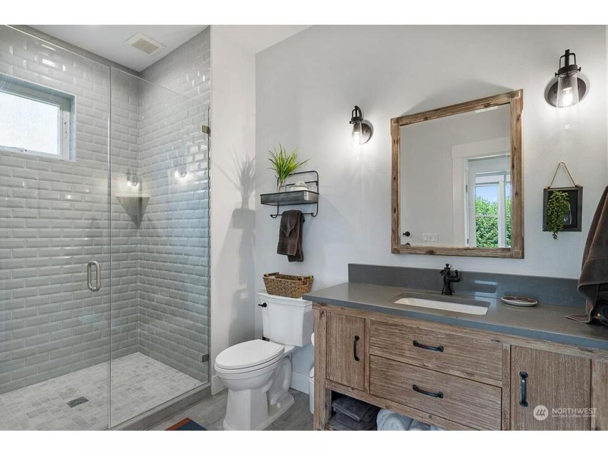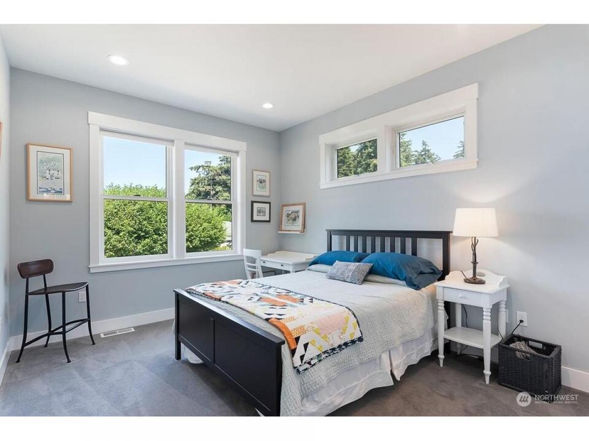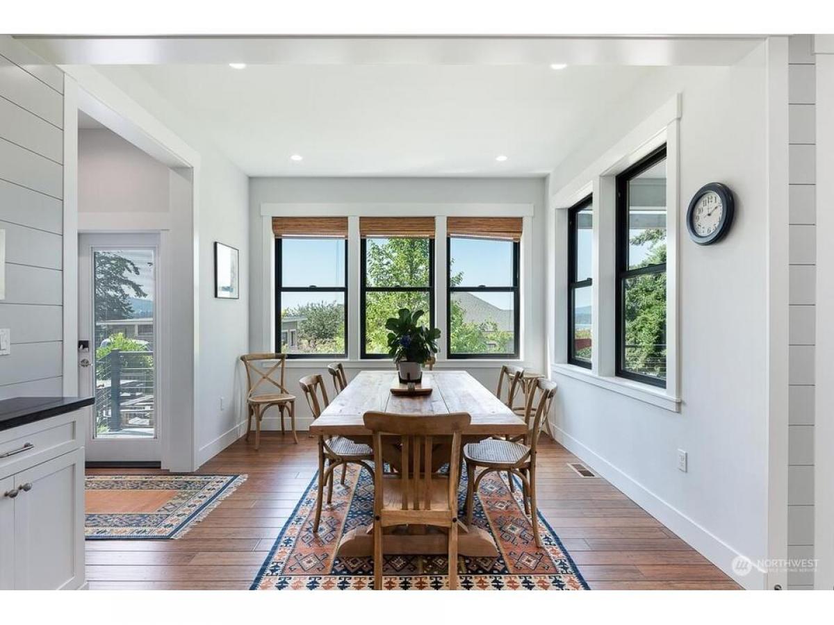 Timeless Cape Cod-inspired gem in desirable Cap Sante radiating charm craftsmanship. Enter to bamboo floors, feature shiplap stone walls. Chef's kitchen with dining shines w/quartz island+black granite countertops, sliding door to walk-in pantry w/coffee bar. Relax in the living room with built-ins stone fireplace. Upstairs rec rm, where vaulted ceilings abundant windows fill the space w/natural light. Covered open air upper deck+spiral stairs to captains deck with Guemes Channel downtown views. Relaxing primary suite boasts scenic views, ensuite bath walk-in closet. Gardeners delight exterior offers fenced yard, garden shed, lush landscaping raised beds plus extra parking off alley, 2-car garage w/huge storage rm. Must see!