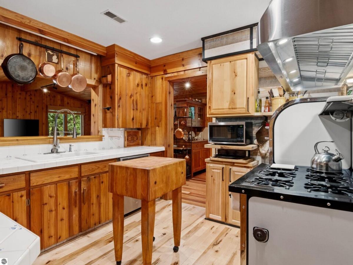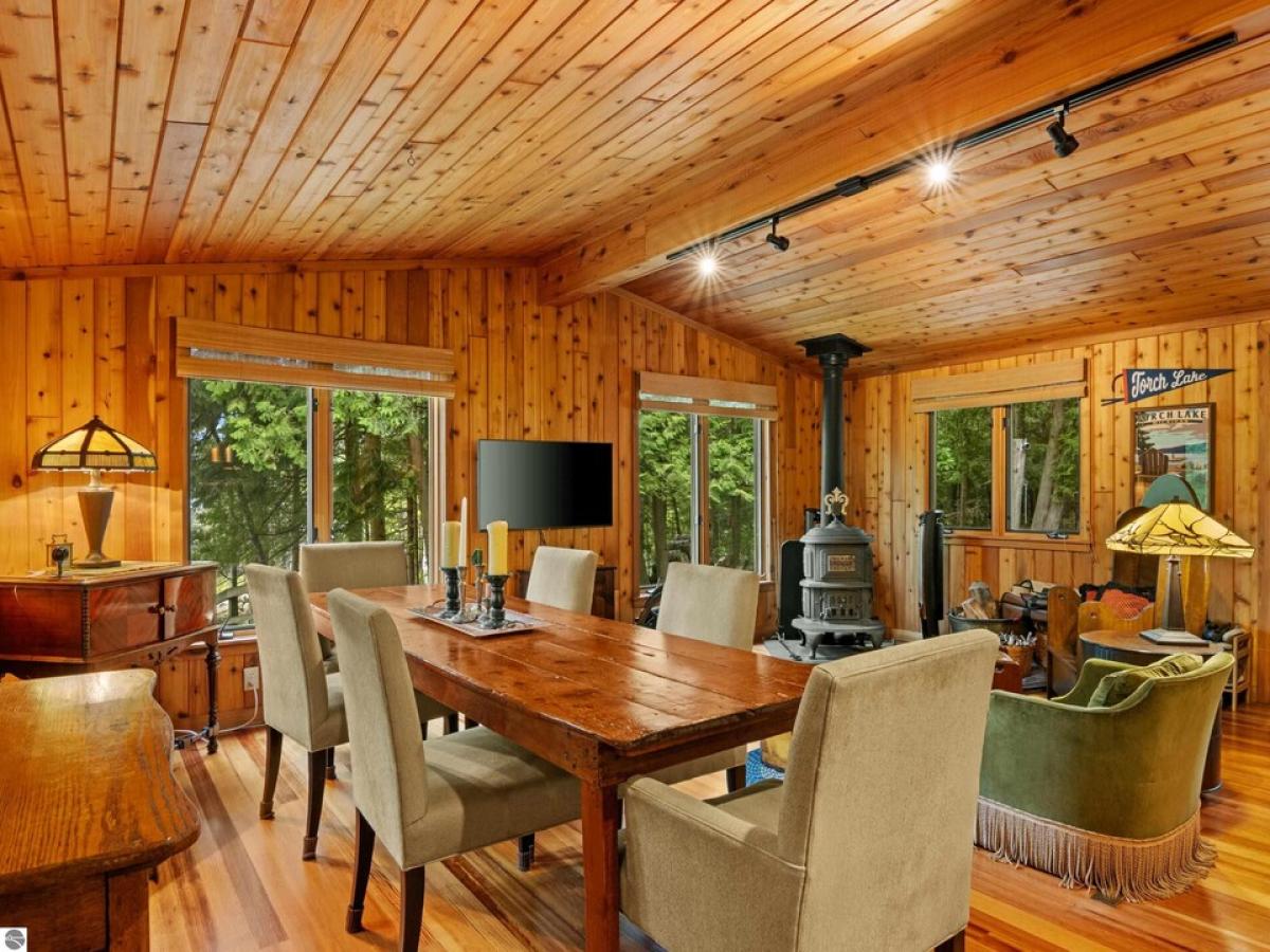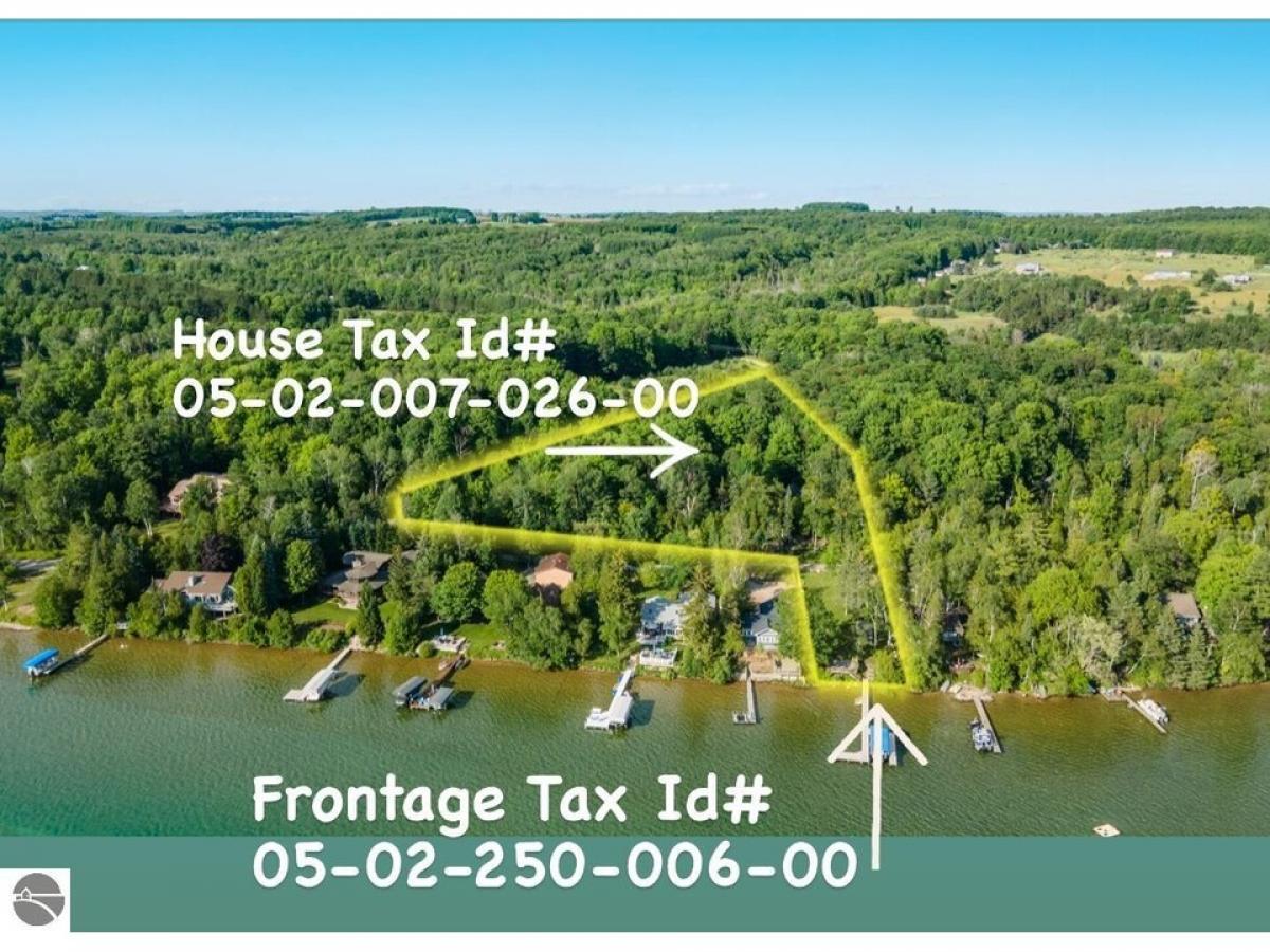 TORCH LAKE!! RARE opportunity to own an “estate like” parcel with private water frontage, 2+ wooded acres w/potential for adding multiple dwellings-think family compound or? Charming year-round home, stone fireplace, beautiful hardwood floors, extensive updates, whole house generator, natural gas furnace/AC, landscaping, to name just a few! Natural woodwork, vaulted ceilings, 4BR, 3BA, bonus room above attached garage, so many possibilities! Own your piece of paradise on one of the beautiful lakes in the world A MUST SEE!!!