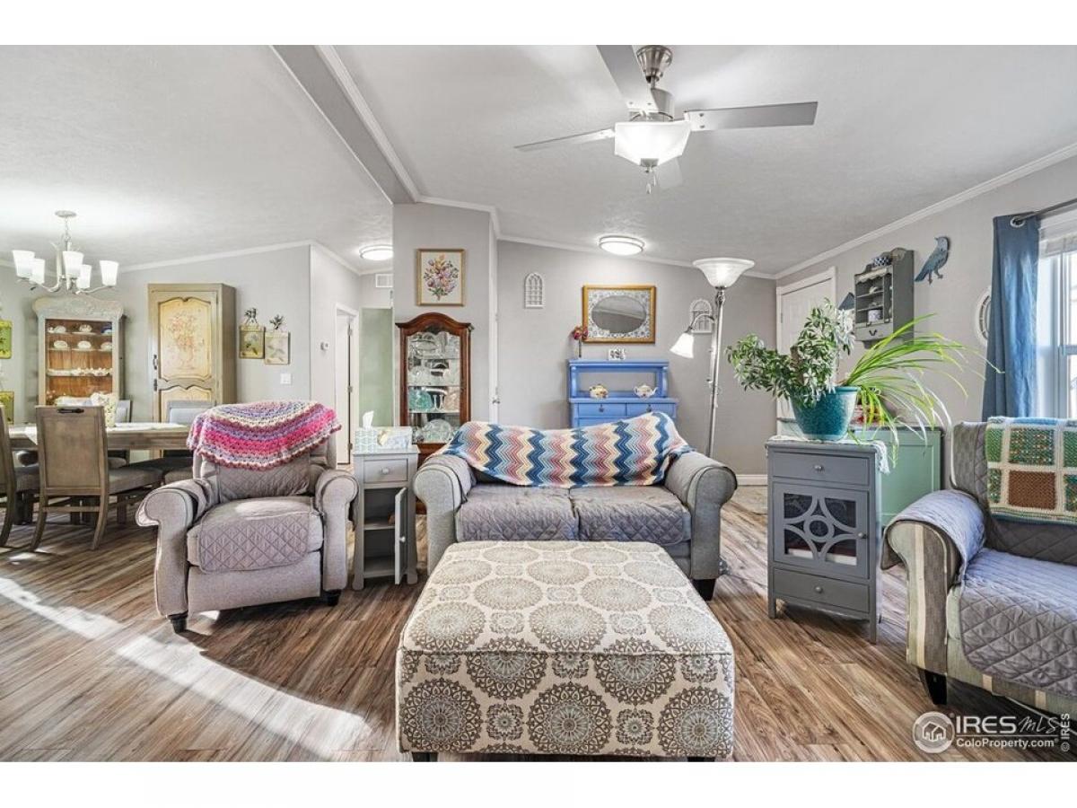 This stunning 3-bedroom, 2 bath home in the Cave Creek neighborhood of Evans is move-in ready. Open floor plan home comes with a kitchen equipped with stainless steel appliances, including a farm sink, updated backsplash amp; poured epoxy counter tops amp; the bathrooms have been thoughtfully updated with custom finishes amp; skylights. The private primary bedroom suite is separate from the other two bedrooms amp; features an ensuite bathroom with dual vanities. All 3 bedrooms have spacious walk in closets amp; the additional storage shed outside the home creates an abundance of extra space. Well maintained garden boxes behind the home are perfect for the gardening enthusiast. With meticulous care, this home is ready for immediate enjoyment. Residents can also take advantage of the community amenities, including a pool, park, a dog park, a clubhouse, and a fitness center. This home an excellent option for those seeking a comfortable and well-maintained living space in a vibrant community.