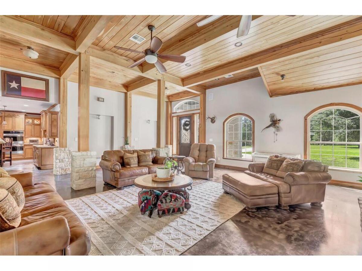 Introducing this stunning Custom Built Austin Stone Dream Home on 21 acres that abuts to the Sam Houston National Forest. This property boasts panoramic views, fenced pastures, and a plethora of amenities. Enjoy custom craftsmanship, a spacious wood deck, and Oversized 3 car garage. The interior features unique accents like cedar ceilings, kitchen/bathrooms granite counters, all bedrooms walk in closets, walk in pantry, dry bar and beautiful stained polished concrete floors. Entertain on the luxury back porch or in front of the cozy fireplace. Additional highlights include a workshop with a car lift, boat and RV storage, a guest house, and more. Don't miss your chance to own this exceptional property at 4151 FM 2666. Contact us for more details.