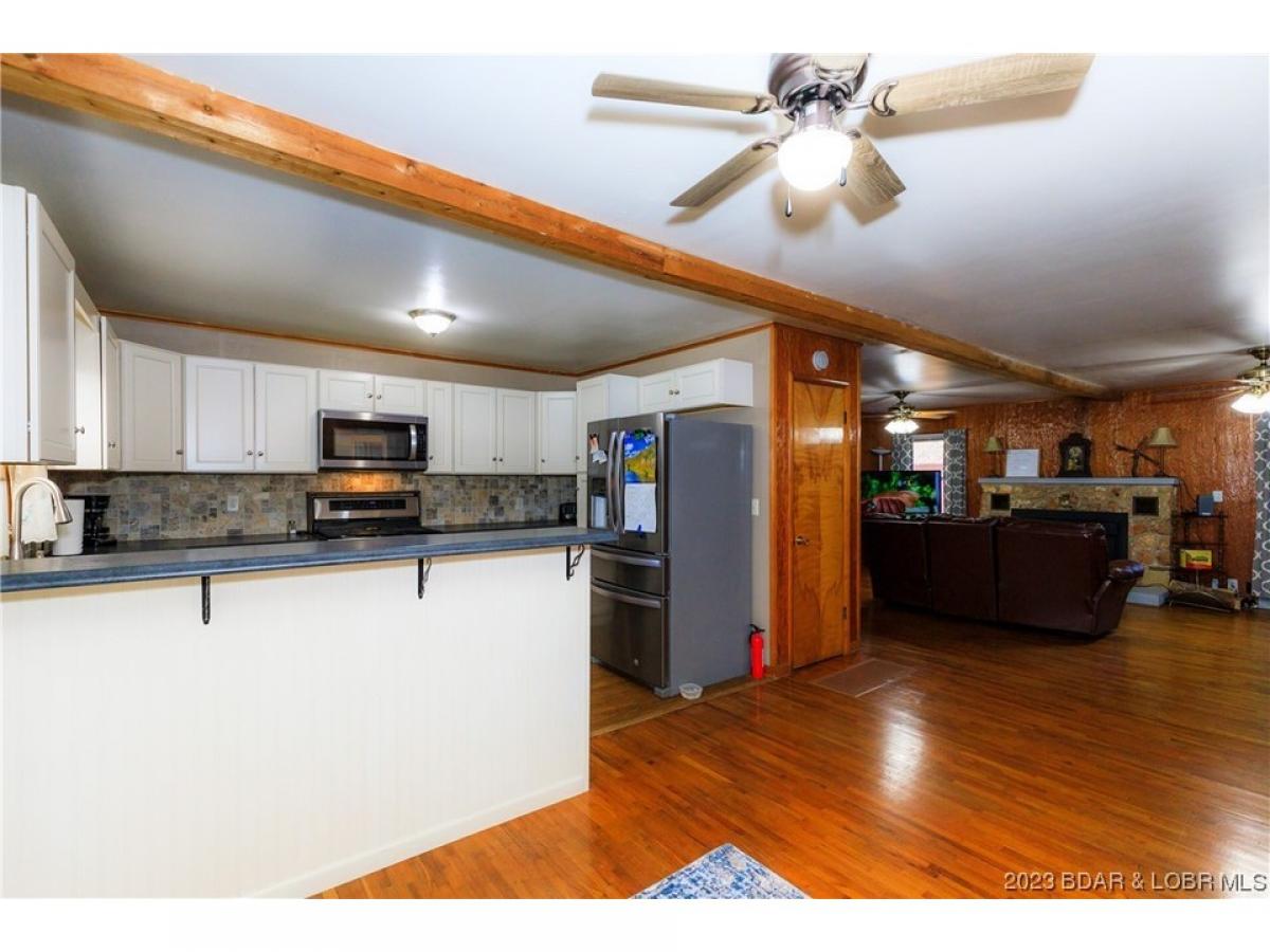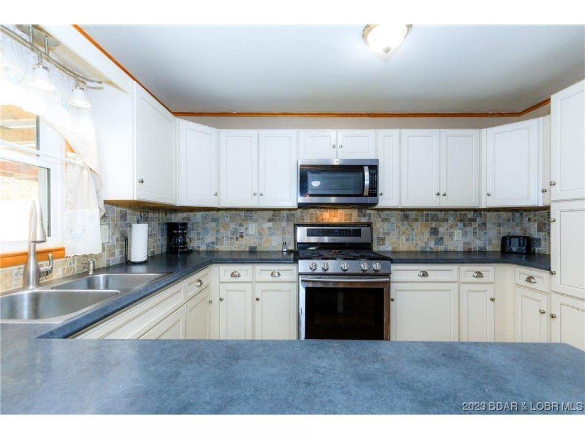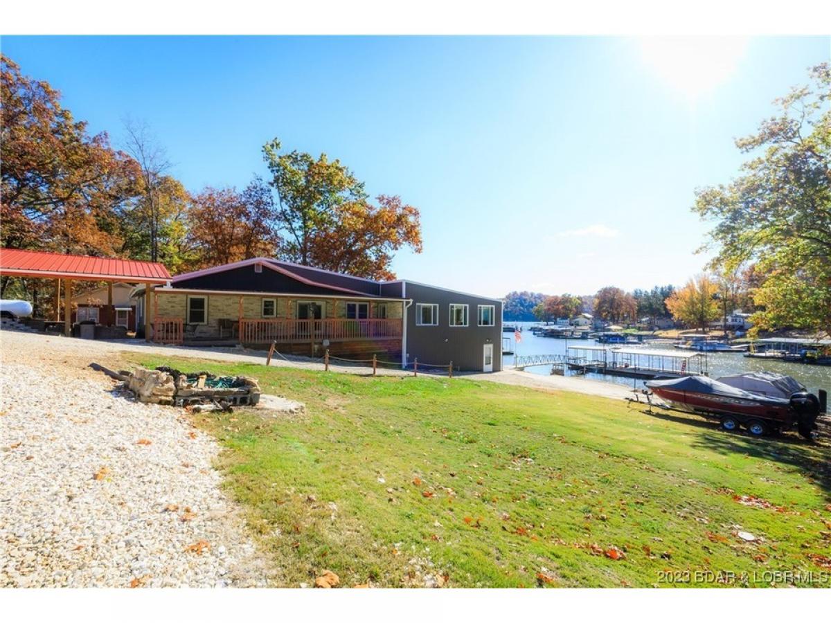 Discover your lakeside paradise at Lake of the Ozarks! This property offers 126 feet of breathtaking lake frontage and an unrivaled main channel view. What sets it apart is the close-knit community of friendly neighbors who regularly gather for lakeside fun. Inside, the house is an updated retreat with two spacious living areas, one with a cabin feel and the other with a lakeside view and updated amenities, well-appointed bedrooms, and a gourmet kitchen. Plus, it comes with a 3-car garage/shop, providing ample space for all your toys and hobbies. This property also features a 2-well dock and two private boat ramps. Whether you're looking for a weekend retreat, a year-round sanctuary, or an investment in a lakeside lifestyle, this property has it all. Nestled in a serene location at Lake of the Ozarks, you'll have easy access to the area's great amenities without all the hustle & bustle noise. Your lakeside dream begins here – seize the opportunity and make it yours before it's gone.
