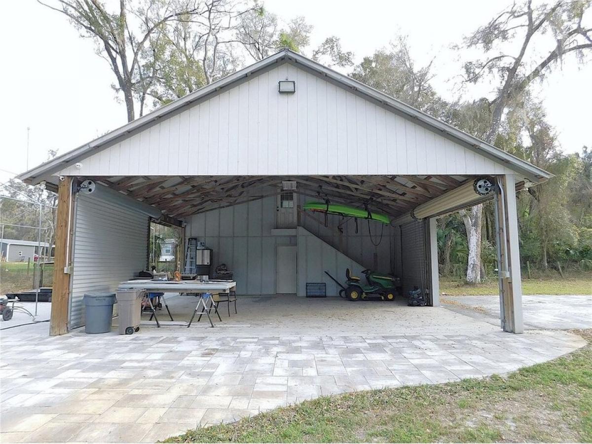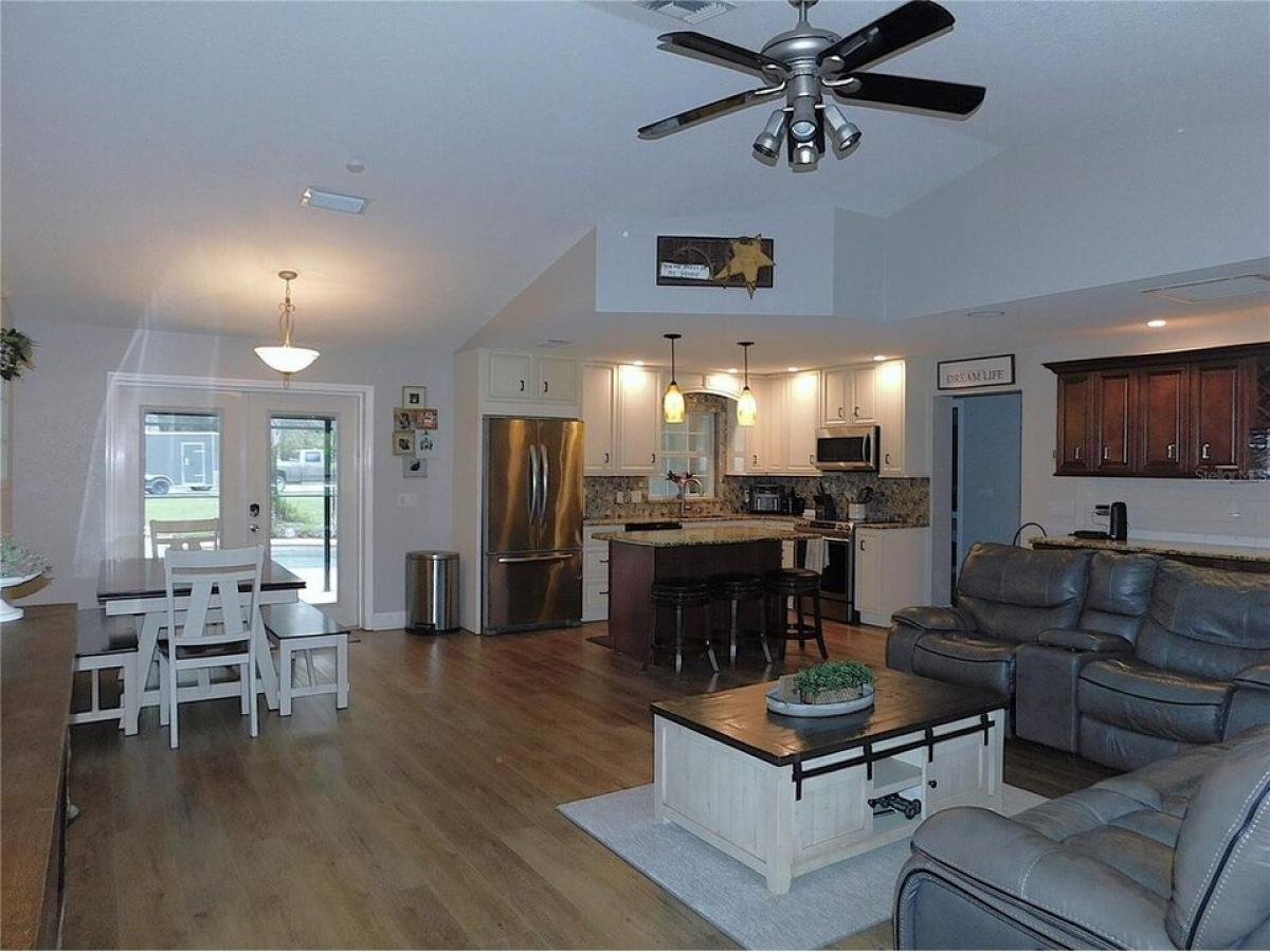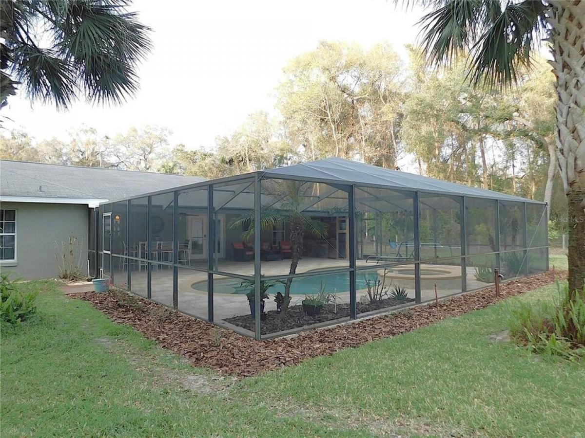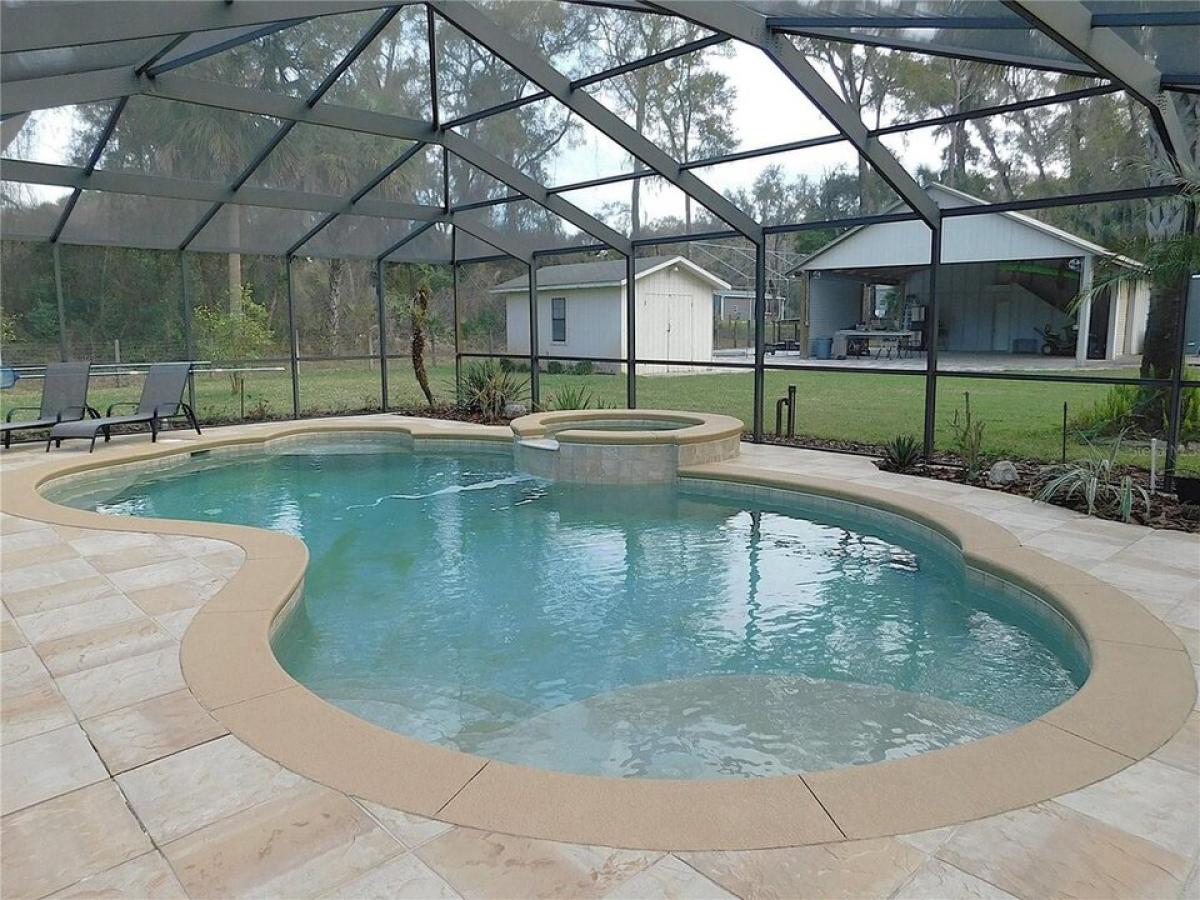 Under contract-accepting backup offers. COUNTRY LIVING AT IT#039;S BEST! One-owner 3BR/2.5BA/2GA inground pool home on 1.06 acres with 30x40 pole barn/workshop/office in NE Marion County offers 1,861 sf living area, open floor plan, laminate/tile floors, cathedral ceilings, amp; custom details throughout.. From the front covered porch, enter through the foyer to the living area w/custom built dry bar with ample storage, dining area w/French doors leading to the pool area, open kitchen w/detailed two-toned custom cabinetry, granite counters, SS appliances amp; center island w/storage amp; seating space, primary suite w/upgraded rustic laminate floors, vault ceilings, seating area, spacious walk-in closet amp; luxe bath w/ separate dual vanities, jetted tub, huge glass enclosed tile shower amp; private toilet, 2 spacious BRs w/fans amp; double closets, guest BA w/tiled shower, lovely laundry room w/shiplap wall amp; storage cabinets, plus side-load 2-car garage w/storage amp; sink.. THIS PROPERTY IS MADE FOR OUTDOOR FUN! Either the private amp; screened inground pool area which is free-form w/seating, heated amp; attached spa w/waterfall, covered/screened porch with room for lounging amp; dining complete w/outfitted summer kitchen w/gas grill amp; fridge, plus outdoor half-BA for swimmers.. OR hang out in the 30x40 pole barn w/3 roll-up doors, enclosed workshop, amp; 2nd story office/storage room.. OR gather your eggs in the huge custom built chicken coop.. Back yard is completely fenced for pets amp; kids.. Property is surrounded by woods.. Property sits on 1.06 cleared acre, corner lot, citrus trees, amp; irrigation system.. Extras include security system, outdoor paver patio, separate driveway to the pole barn, well pump storage shed, zoned HVAC units.. FIRST TIME ON THE MARKET! COUNTRY LIVING AT IT#039;S BEST!