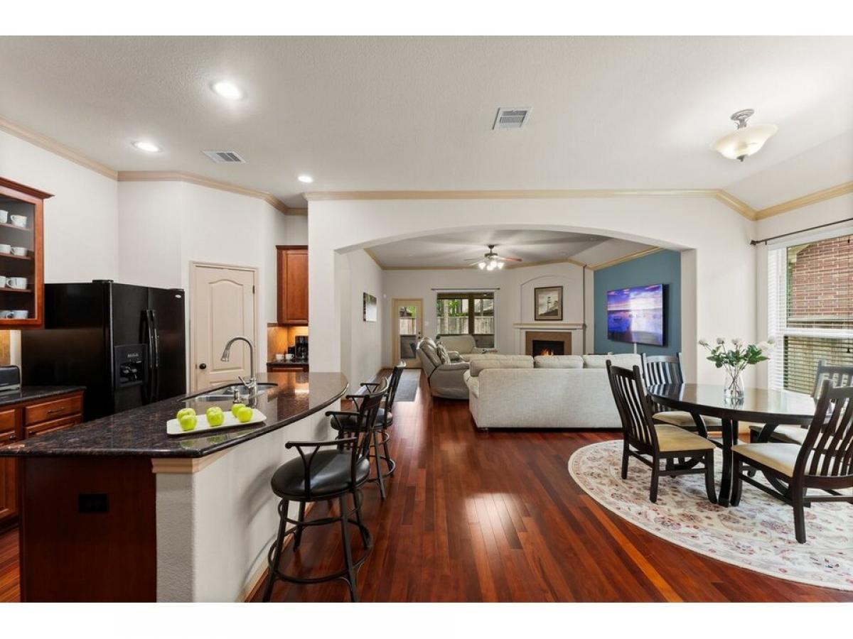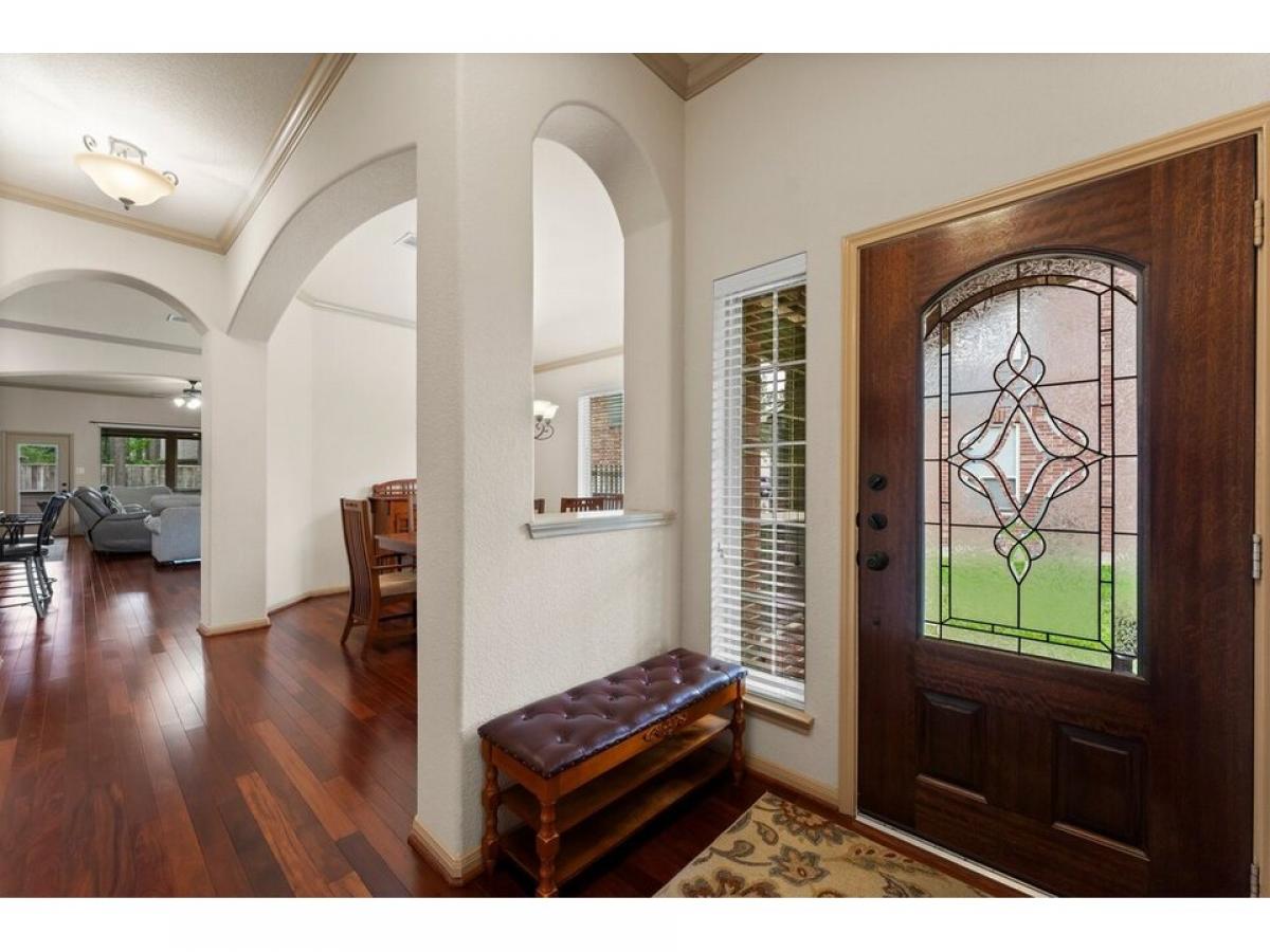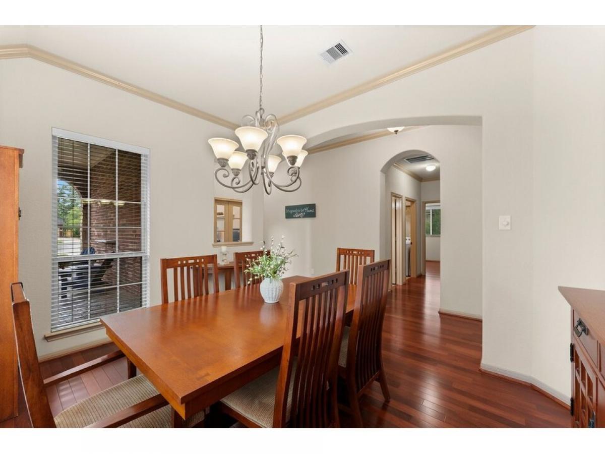 Elegantly nestled beneath the towering pines that define The Woodlands, this impeccably maintained single-story residence offers comfort and timeless appeal. A charming front porch with newly installed ceiling fans invites quiet mornings and relaxed evenings. Inside, an open-concept layout is enhanced by rich hardwood flooring throughoutmdash;no carpet in sight. One of the four bedrooms is currently utilized as a home office, offering flexibility to suit your lifestyle. The true standout is the custom screened-in porch featuring a fully equipped summer kitchen, ideal for year-round outdoor enjoyment. Raised garden beds line the backyard, perfect for cultivating fresh herbs and seasonal produce. A brand-new roof completes this exceptional offering. Ideally located in Creekside Park, just minutes from fine dining, H-E-B, community pools, sport courts, parks, trails, and major thoroughfares including Grand Parkway, I-45, and ExxonMobil campus. .