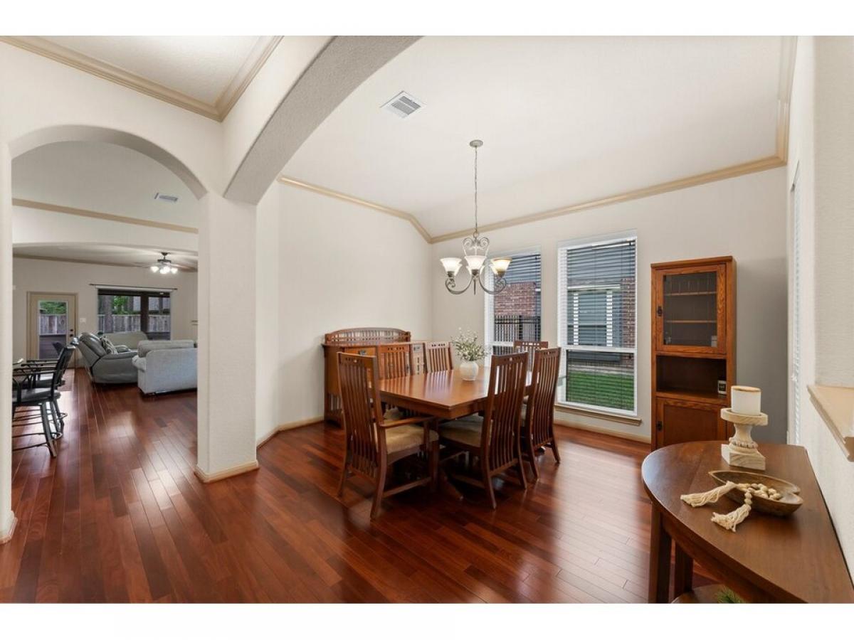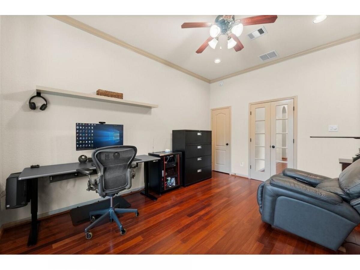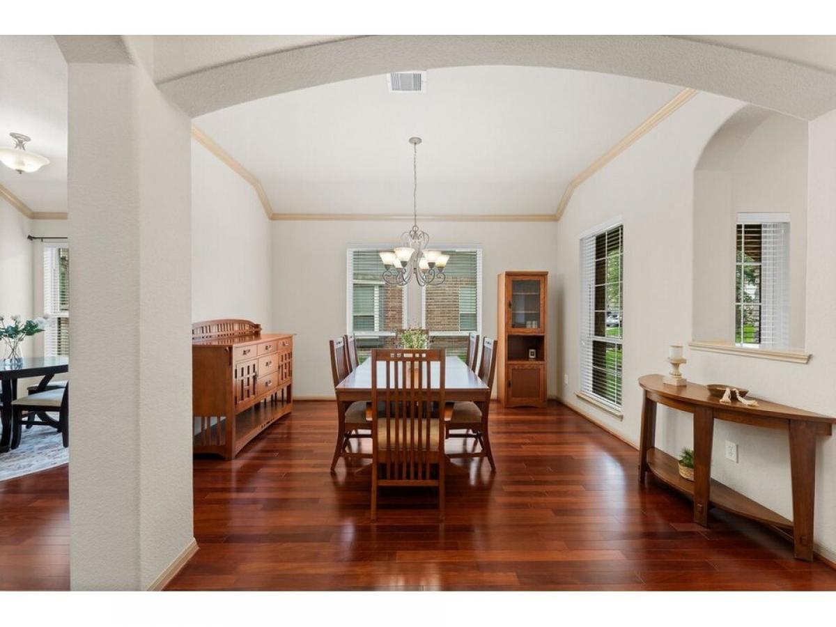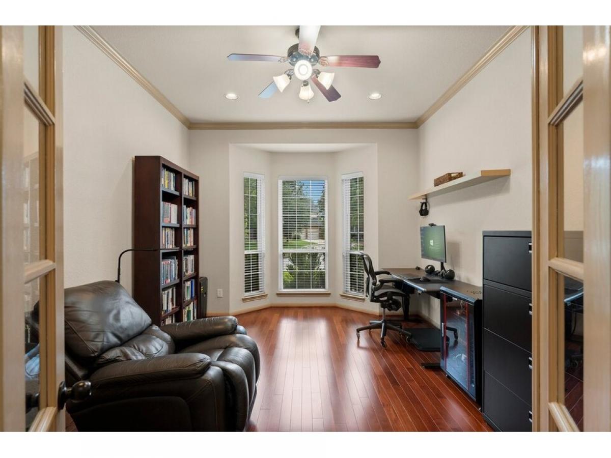 Elegantly nestled beneath the towering pines that define The Woodlands, this impeccably maintained single-story residence offers comfort and timeless appeal. A charming front porch with newly installed ceiling fans invites quiet mornings and relaxed evenings. Inside, an open-concept layout is enhanced by rich hardwood flooring throughoutmdash;no carpet in sight. One of the four bedrooms is currently utilized as a home office, offering flexibility to suit your lifestyle. The true standout is the custom screened-in porch featuring a fully equipped summer kitchen, ideal for year-round outdoor enjoyment. Raised garden beds line the backyard, perfect for cultivating fresh herbs and seasonal produce. A brand-new roof completes this exceptional offering. Ideally located in Creekside Park, just minutes from fine dining, H-E-B, community pools, sport courts, parks, trails, and major thoroughfares including Grand Parkway, I-45, and ExxonMobil campus. .