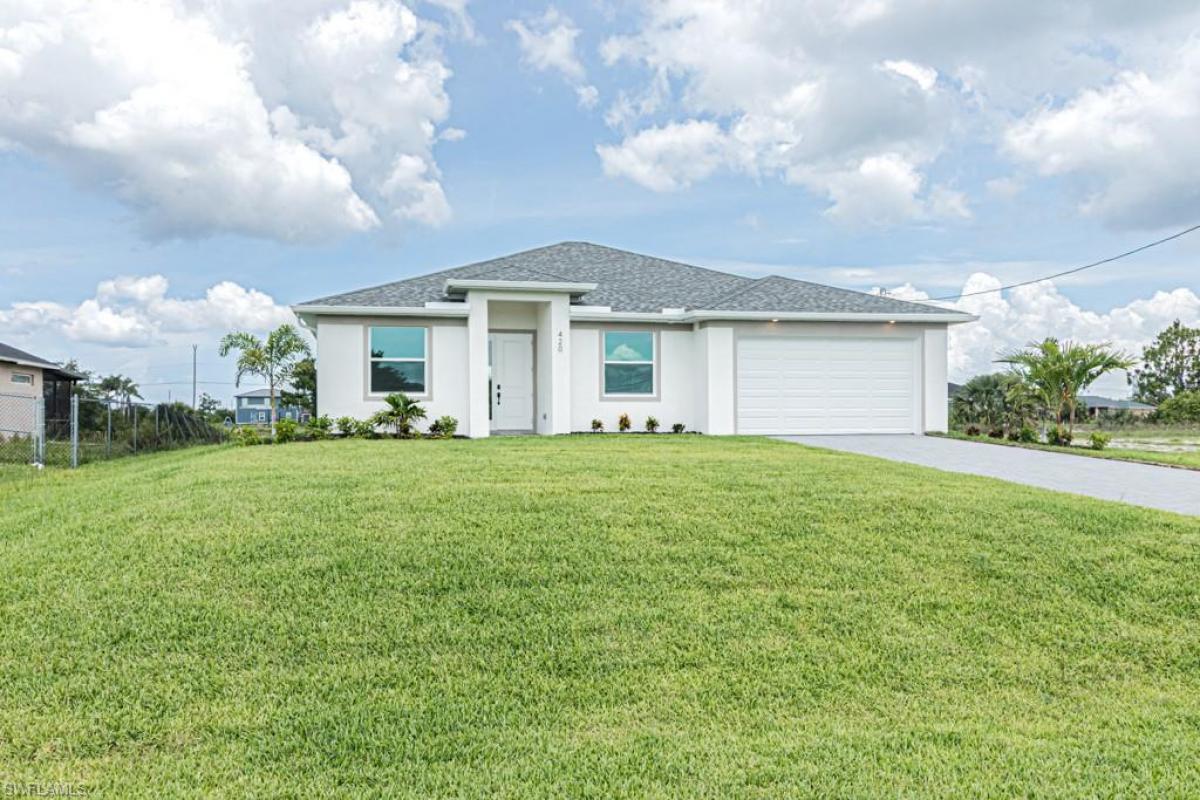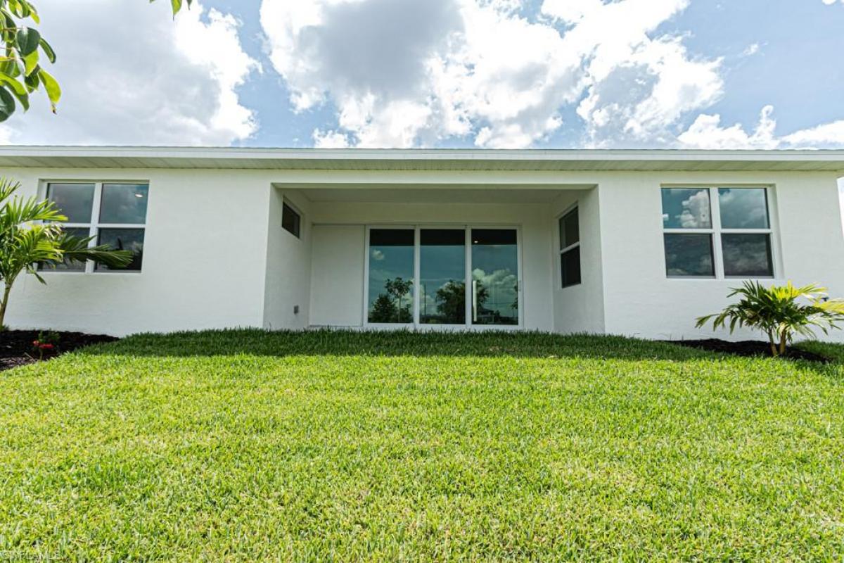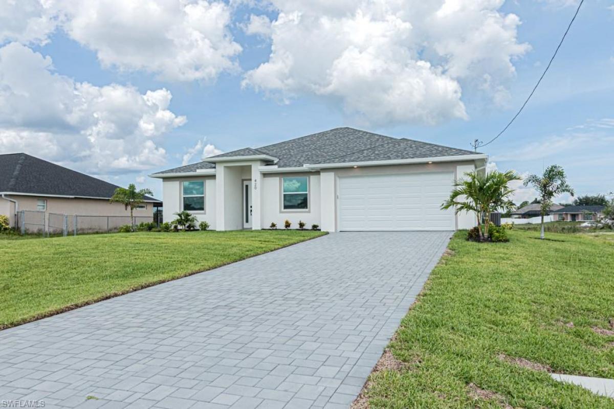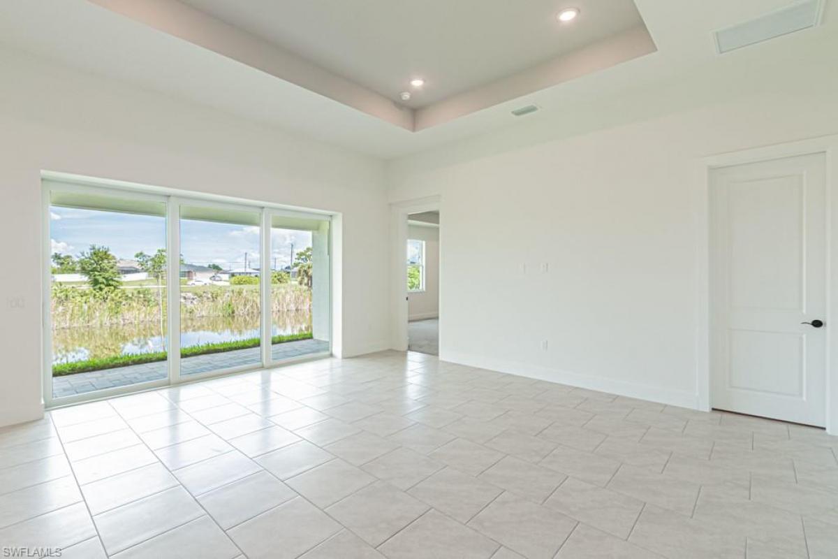 Brand new home built in 2025 located in a No Flood Zone has so much to offer. This waterfront home overlooking the canal has seawall protection, live where modern luxury meets Florida charm. With 4 generous bedrooms, 2 spa-like bathrooms, and a 2-car garage featuring glossy epoxy floors, this home is designed to dazzle and delight. Step inside and be captivated by the open-concept layout, where soaring vaulted ceilings create an airy, sunlit vibe. Gleaming tile flooring flows through the main areas, while plush carpet in the bedrooms adds a cozy touch. The heart of the home—a chef’s kitchen with sleek granite countertops—is perfect for whipping up culinary creations or hosting lively gatherings in the vibrant social area. Built for peace of mind, this home boasts impact-resistant windows and doors, blending style with security. Outside, a paved driveway welcomes you, and the paved lanai sets the stage for morning coffees or sunset cocktails. The sprawling backyard is your canvas, with plenty of room to craft your dream pool and create an outdoor oasis for endless summer fun.