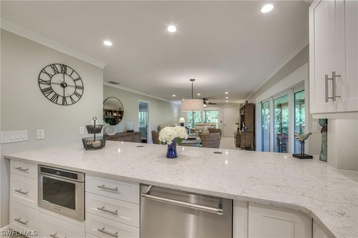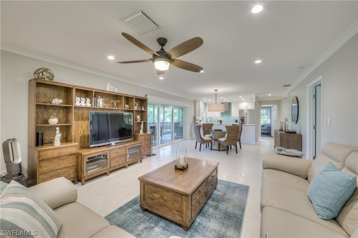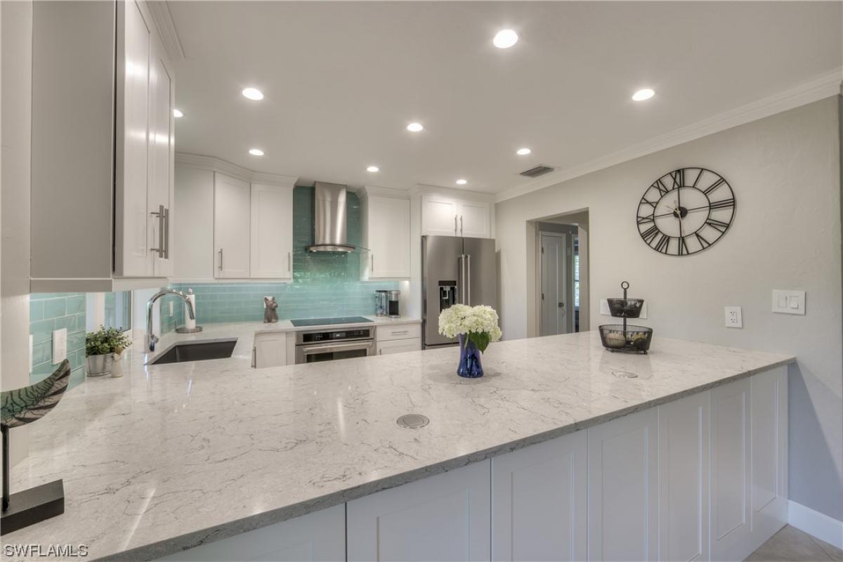This beach house has it all, plus more! Recently renovated and your own private beach path. No crossing a main road to put your toes in the sand. Gulf Pines is a private beach front neighborhood with brand new amenities. Two swimming pools, tennis courts, clubhouse, also a beach path to one of the widest sections of sand on all of Sanibel, you must see it to believe it! Go shelling, take walk on the beach, or watch the gorgeous sunsets all just a stroll from your front door. The wrap around porch is a nature lovers dream and the wildlife is abundant. The great room, kitchen, dining room and bedrooms all lead out to newly screened lanai overlooking the Sanibel River. The recently updated baths & kitchen are stunning and look like they are straight out of a magazine. Quartz countertops, induction cooktop with chimney hood, Grohe, and Kohler fixtures. Don’t miss this beautiful turnkey home it checks all the boxes.
