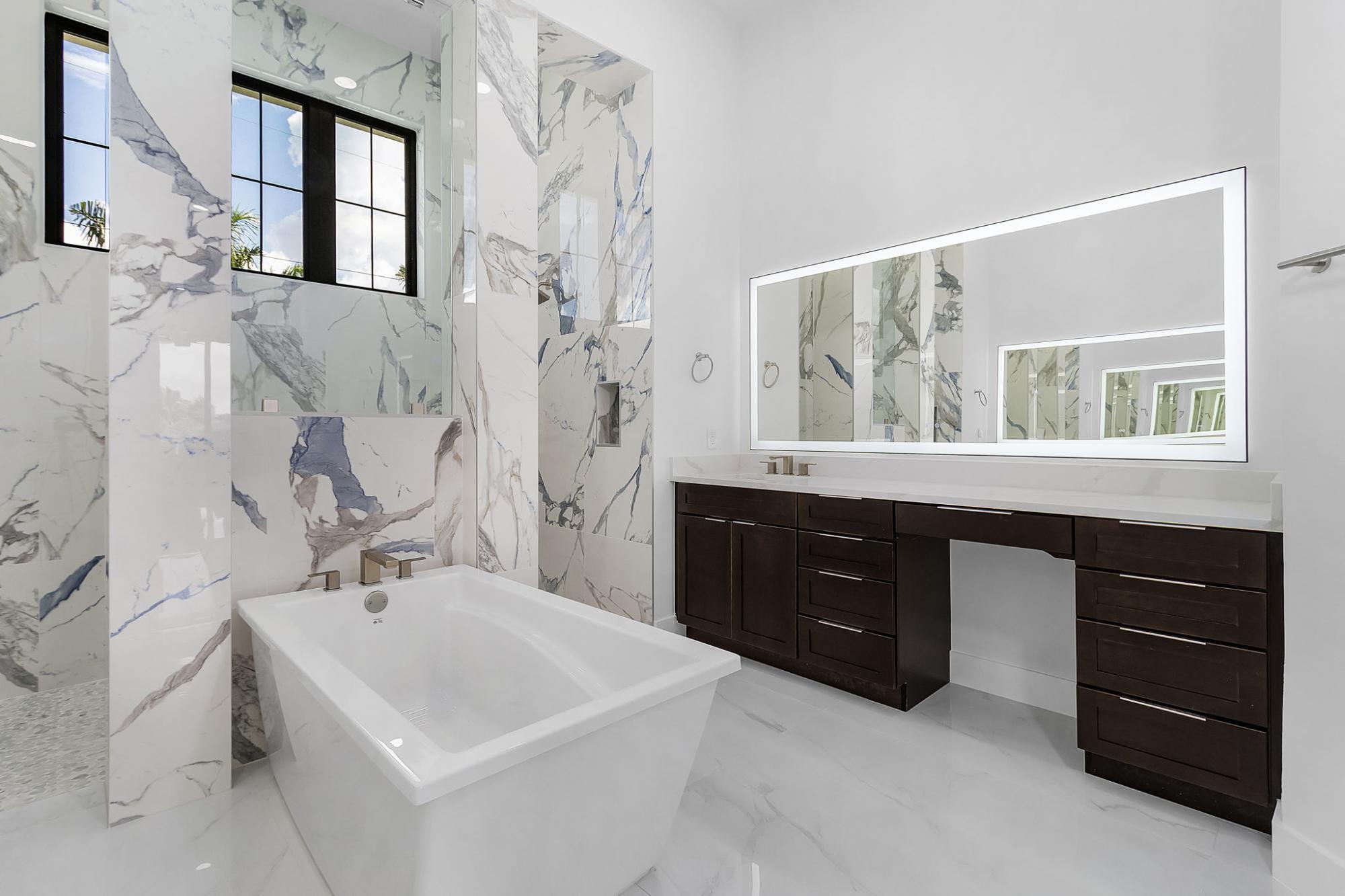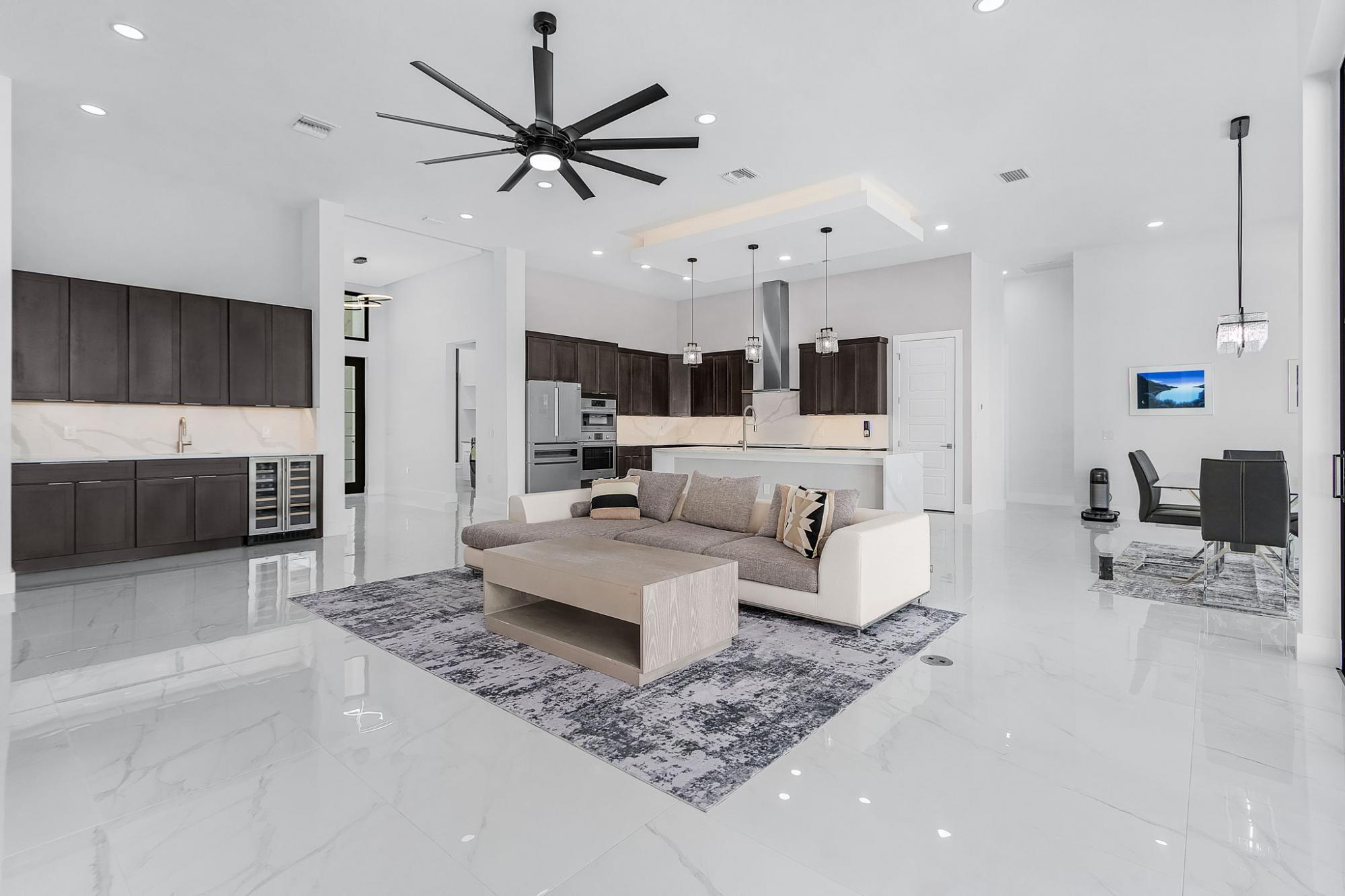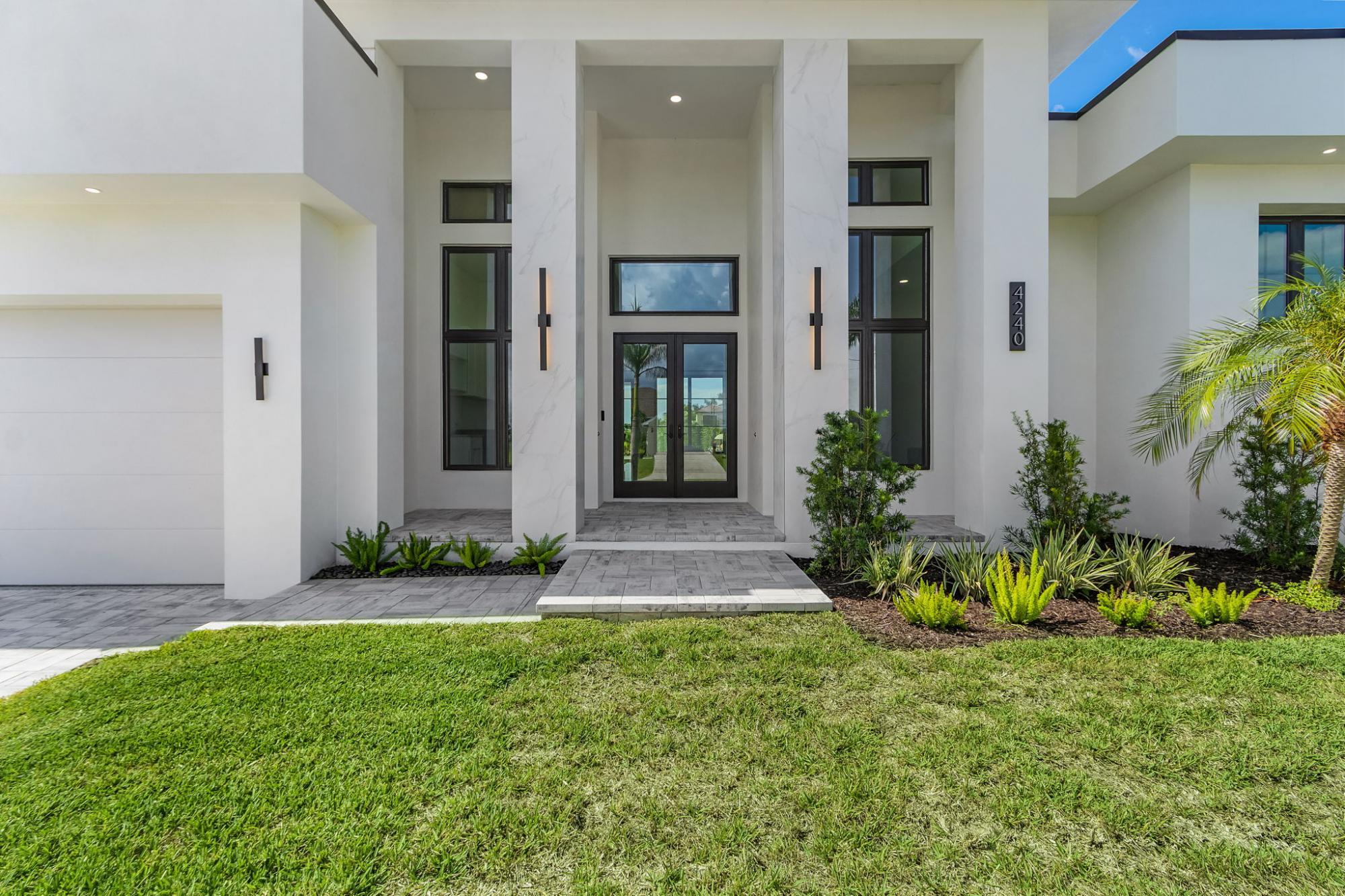 A truly must see, one of a kind custom designed home, “NOT A BUILDERS MODEL” New construction June 2025. 3Br. 3Ba. with den/office or permitted 4th bedroom, overlooking a south facing expansive 260 ft. wide canal with no bridges to the gulf. A boater’s dream includes a 2-slip composite dock large enough for a 50ft boat and a lift on the other side. No expense spared on this modern open floor plan design. 2665sf. of living space with soaring ceilings and 10ft high impact sliders overlooking the oversized almost 800 sf. lanai with a summer kitchen and bar. The fully automated (control from your phone) large saltwater pool features a custom spa and sun shelf. The master suite includes a spa inspired bath, twin vanities with 7’ led backlit mirrors, his and her double entry shower and soaking tub. Large 24X48 polished porcelain tiles throughout the house gives the house an elegant appearance and blends in with a fireplace and custom tile and wood wall feature. A custom large kitchen with espresso cabinets, a 10ft. island and top of the line Bosch appliances will truly inspire any chef’s dreams.