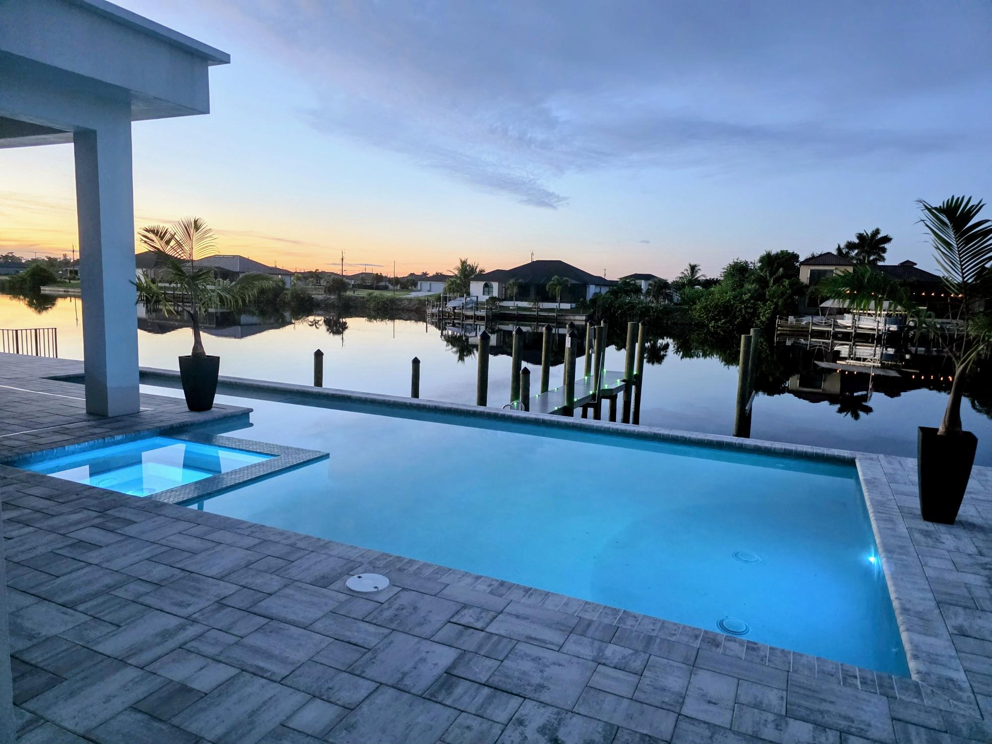 PRICE JUST REDUCED TO $1,350,000A truly must see, one of a kind custom designed home, “NOT A BUILDERS MODEL” New construction June 2025. 3Br. 3Ba. with den/office or permitted 4th bedroom, overlooking a south facing expansive 260 ft. wide canal with no bridges to the gulf. A boater’s dream includes a 2-slip composite dock large enough for a 50ft boat and a lift on the other side. No expense spared on this modern open floor plan design. 2665sf. of living space with soaring ceilings and 10ft high impact sliders overlooking the oversized almost 800 sf. lanai with a summer kitchen and bar. The fully automated (control from your phone) large saltwater pool features a custom spa and sun shelf. The master suite includes a spa inspired bath, twin vanities with 7’ led backlit mirrors, his and her double entry shower and soaking tub. Large 24X48 polished porcelain tiles throughout the house gives the house an elegant appearance and blends in with a fireplace and custom tile and wood wall feature. A custom large kitchen with espresso cabinets, a 10ft. island and top of the line Bosch appliances will truly inspire any chef’s dreams.