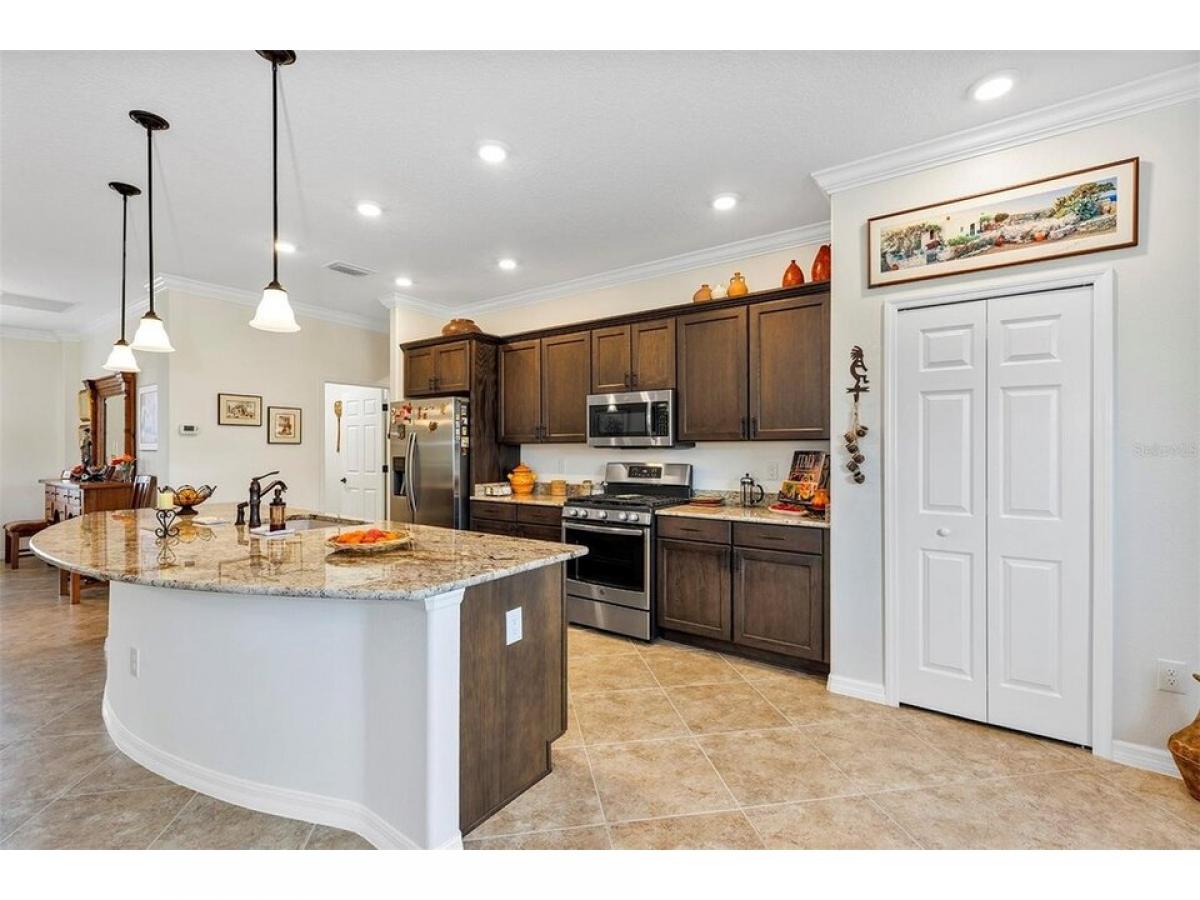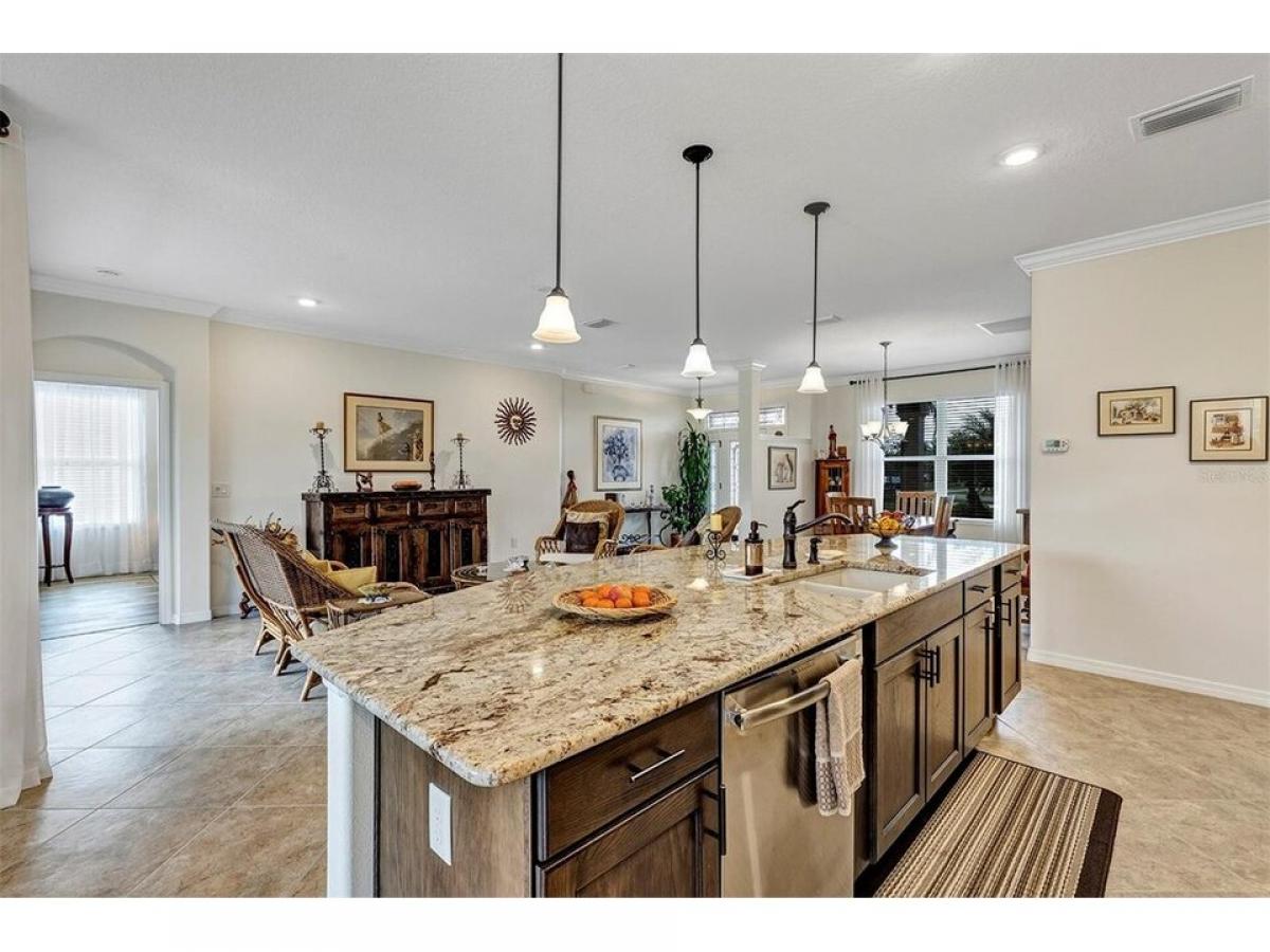 ALOT OF HOME FOR THE MONEY! Affordable Golf-Front Living, 3 Bedroom 2 bath with Huge 18x15 Den, A paver driveway, sidewalk amp; mature upgraded landscape package welcome you to this Custom Home built in 2019 Located in Highly sought after Arlington Ridge , A Guard Gated amp; Active Adult Golf Community. Discover a lifestyle of comfort and leisure you#039;ve waited for your whole life for, Very Low HOA of $125 per month includes, mowing, trimming amp; blowing of lawn Wi-Fi router for signal coverage throughout the home, 200+ cable TV channels, and 250-megabyte high-speed internet. Two DVRs are also included for recording your favorite shows which is all included, Low-maintenance stucco construction. situated on a quiet cul-de-sac with private backyard, sidewalks and underground utilities for more luxurious feel . Features an over-sized stretched 4 feet 2 car garage, Living room boast open-concept floor plan and main areas rooms have crown molding, tile and high ceilings enhancing the sense of space and inviting atmosphere. The modern design has rounded corners on sheetrock, low-maintenance life-time luxury vinyl plank flooring in Master suite, Kitchen featuring abundant wood cabinets, granite counters with long bar-top dining. The 5 burner gas natural gas range and double door stainless fridge are included, a breakfast nook and separate dining room. The master bedroom features an en-suite bath with dual vanities w/ quartz tops, a walk-in Roman shower, for added safety, private water closet, Extra Large walk-in closet . Split Plan for guest bedrooms provides ultimate privacy. ALL ROOMS HAVE 9 FOOT CEILINGS FOR EXTRA SENSE OF SPACE, Indoor laundry room with cabinets and utility sink. 220+ s.f. covered amp; screened lanai with golf view and a patio for grilling out. home is located in low wind zone being in the center of the state. Benefit from huge discounts on homeowner#039;s insurance due to the home#039;s high construction standards being built to wind code, high amp; dry elevation for flood protection, and a low wind zone, also qualifying for additional insurance discounts. The low HOA of $125/month makes this community even more affordable than nearby communities This coveted community offers a wide range of amenities, including an 18-hole golf course where you can get a tee time year round, driving range, putting greens, YOU DO NOT HAVE TO PURCHASE A SOCIAL OR GOLF MEMBERSHIP TO LIVE IN COMMUNITY OR PLAY GOLF, lighted tennis and pickleball courts, heated swimming pools, hot tub, fitness facilities, billiards, a restaurant, tavern, and a free movie theater. The community is golf cart-friendly, with sidewalks for strolls and low-speed limit streets perfect for bicycling. Enjoy the convenience to grocery stores, restaurants, banks, and pharmacies within a 5-minute drive. Emergency services are just 10 minutes away, and a free boat ramp and fishing pier on a 15,000-acre lake are nearby. Community is 20 minutes from malls, restaurants, and a 12-screen movie theater, 45 minutes from Orlando, Major theme parks, and the airport, 90 minutes to Daytona Beach amp; Atlantic Ocean and Gulf of Mexico Clearwater SJS 2025copy;