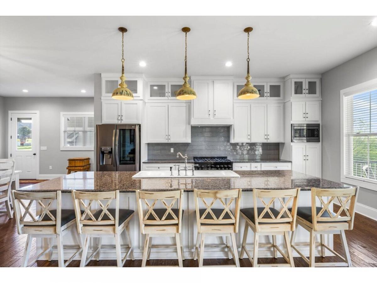 This stunning golf course home is truly a dream come true for those looking for luxury living on a golf course coupled with breathtaking views of The Great Smoky Mountains. With three kitchens, three recreational / bonus rooms, and additional living quarters, there is plenty of space for the entire family, entertaining and enjoying the finer things in life. The craftsmanship and attention to detail in this home are evident in every room, from the real wood board and batten siding to the craftsman-built cabinets in the kitchen. The main level features a spacious open floor plan with 10-foot-high ceilings, an office, 8-foot doors and a gourmet kitchen that any chef would love. Also on the main level is the primary bedroom suite with a custom bath that includes a fully enclosed electronic steam shower and whirlpool tub with smart technology. Perfect for those long relaxing showers with endless hot water! Hop on the three-level elevator and upstairs, you'll find two large bedrooms,