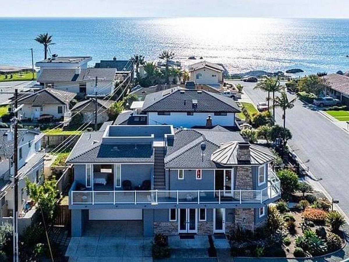 This spectacular, move-in ready property is being sold fully furnished. Offering sprawling, 360-degree views of the Pacific Ocean and coastal hill sides in the heart of Shell Beach. Located 1 block away from the ocean, 1 block from Margo Dodd Park, Dinosaur Caves Park, walking distance to the California coastal trail and the Pismo Preserve. This distinctive home combines contemporary nautical charm with thoughtful craftsmanship. The elegant property provides a large front yard, backyard, a wraparound deck, lavish living environment and a grand rooftop deck providing a 360-degree view of the ocean, parks, and coastal hillsides. The roof top deck is the ultimate entertainment location and is pre plumbed for a wet bar and BBQ. Some of the high-end finishes and features include an elevator for seamless living, solid alder wood doors, custom cabinets, custom windows, custom fixtures, modern iron handrails. The primary living area is an open concept floorplan with expansive picture windows to take in the breathtaking ocean and hillside views. Multiple doors open to the wrap-around deck providing an indoor-outdoor living environment. The kitchen is a chef's delight, showcasing the following features: white shaker-style, Thomasville cabinetry, gleaming granite countertops, and Jenn-Air stainless steel appliances. A generously sized island with a breakfast bar and a walk-in pantry. Teak hardwood floors flow seamlessly through the kitchen, living, and dining spaces. The spacious primary suite offers a peaceful retreat with a luxurious en-suite bathroom, including a soaking tub, a walk-in shower with dual shower heads, a granite-topped dual-sink vanity, and a custom walk-in closet. The primary suite also has French doors leading out to a deck overlooking the coastal hills. The ground floor's orientation and design provide a comfortable living environment and large family room with a plethora of natural light. It offers a gas fireplace, multiple doors opening the home to the large, fully landscaped, low maintenance front yard. The fully fenced backyard offers privacy and a outdoor shower. There are two large guest rooms downstairs with lots of closet space. One of the guest rooms has French doors providing access to the yard and natural light. The downstairs bathroom is built with stone, high-end cabinets and a jetted tub for a spa like environment. The oversized two car garage provides access to the backyard and is finished with epoxy floors and a storage closet.