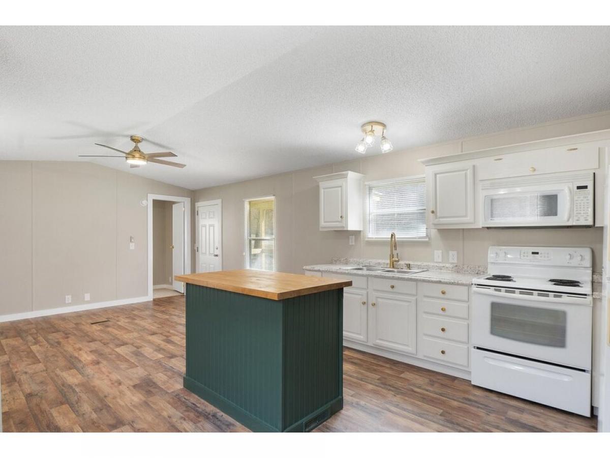 Welcome to the perfect affordable home option for you! With a complete renovation this home absolutely shines! Walking into the home whether from the front or the back you will be greeted with brand new porches! From the front covered porch you enter in and find yourself in the open floor planned living and kitchen area. You will notice that there is new LVP flooring throughout this space. Coming into the kitchen you will see all new fixtures, updated cabinetry, and a brand new island that adds functionality to the space. Additionally just off of the kitchen you will find your laundry area that is adorned with adorable wallpaper and leads you right into your bathroom. The bathroom has been fully updated with all new brass fixtures, new toilet, and a tile sided shower/tub combo. Past the bathroom you will find the master bedroom. This bedroom along with the guest bedroom have both had new flooring installed and new fixtures within them. From the outside you will notice the brand new permanent foundation done by a local builder in 2024. If you were to crawl under the house you would find the crawl space to have a vapor barrier installed and all new PEX plumbing throughout the house, and a 2022 HVAC system to top it off! This bo-ho style house with countless updates won#039;t last long, make sure to schedule your showing today!