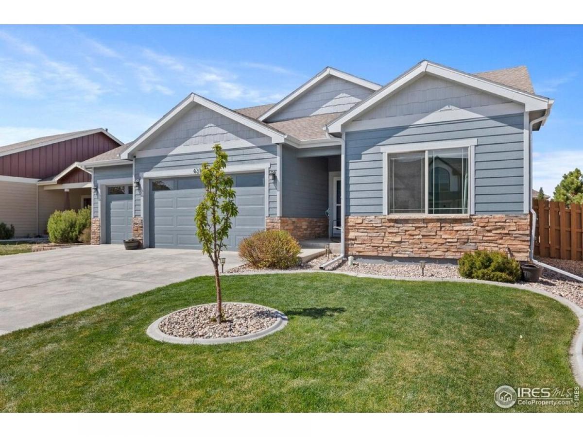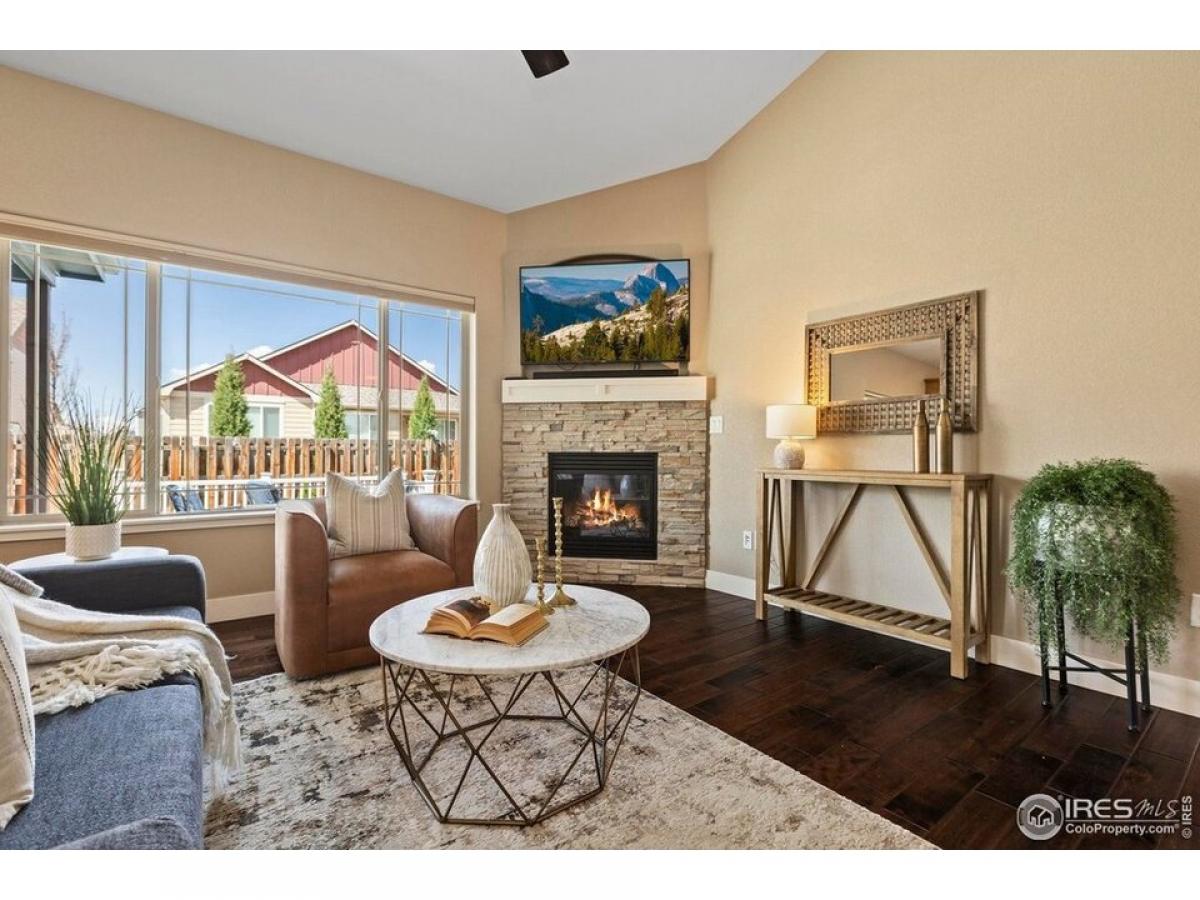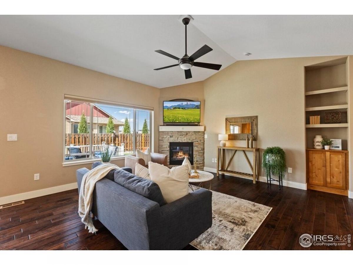 This remarkable ranch-style home blends comfortable living with exceptional spaces for entertaining. The heart of the home is the kitchen with granite counters, stainless appliances, walls of cabinet storage, plus a large walk-in pantry. Great room features vaulted ceilings, engineered wood floors, and dry-stack stone fireplace, a perfect spot for gathering together. The split bedroom floor plan means the primary bedroom feels private, with charming barn door details. Large ensuite bath features dual vanities and a beautifully tiled shower. The mudroom/drop zone has a bench with hooks and cubbies to keep you organized. Main level living includes the laundry room with granite counter, laundry sink amp; uppers. Closets are customized amp; finished with painted wood shelving, no wire shelves in sight! This practical floorplan doesn#039;t stop there. The professionally finished basement is made for entertaining, with a spacious family/media room wired for surround sound amp; separate game room for ping pong or pool. The wet bar has a live edge bar top that is great for cocktails amp; conversation. The 4th bedroom amp; full bath make a generous space for guests, while the study with walk-in closet could easily serve as a 5th bedroom. Two sizeable storage rooms ensure everything has a place. Outside, the backyard comes complete with trellis, concrete patio, large composite deck amp; irrigated garden box. The south-facing driveway amp; 3 car garage add to the ease of daily life. This home is topped with Class IV impact-resistant shingles amp; is pre inspected for peace of mind. Located blocks from the neighborhood park, with easy access to I-25, it#039;s an 18-minute drive to Old Town Fort Collins, or 25 minutes to Cheyenne, Wyoming. Check out the video amp; then come to see for yourself all the features this home has to offer.