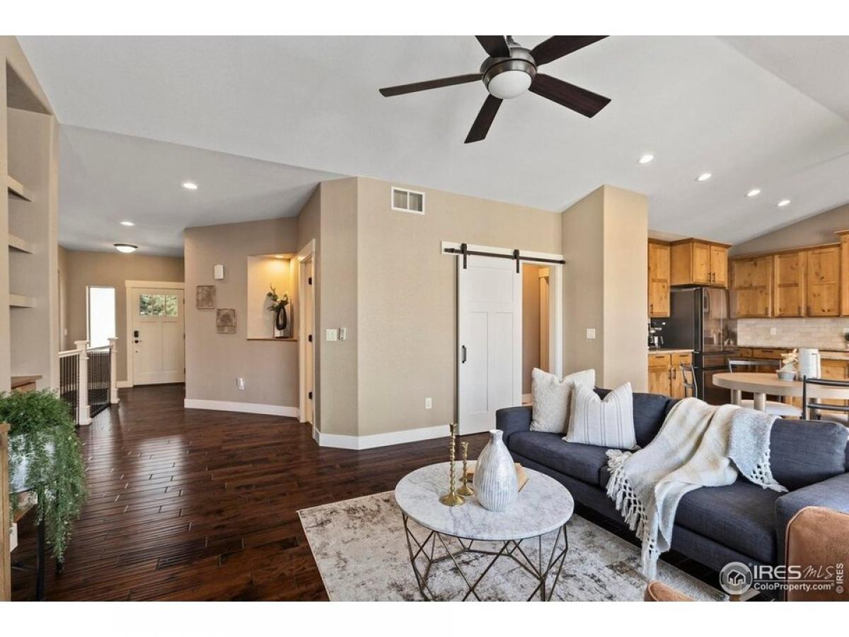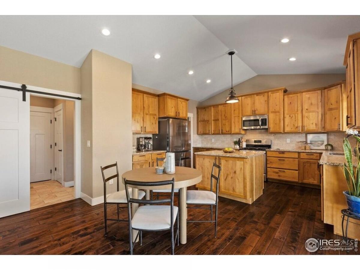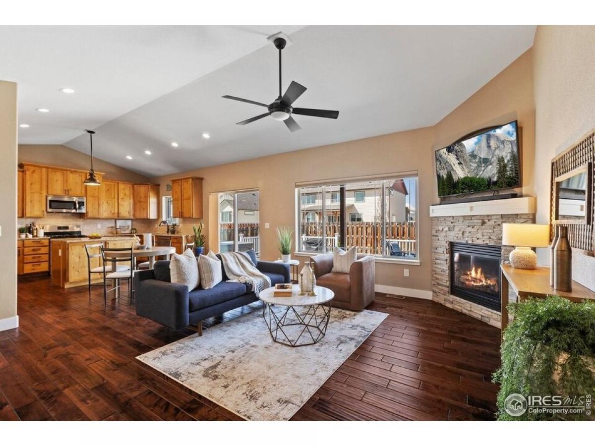 This remarkable ranch-style home blends comfortable living with exceptional spaces for entertaining. The heart of the home is the kitchen with granite counters, stainless appliances, walls of cabinet storage, plus a large walk-in pantry. Great room features vaulted ceilings, engineered wood floors, and dry-stack stone fireplace, a perfect spot for gathering together. The split bedroom floor plan means the primary bedroom feels private, with charming barn door details. Large ensuite bath features dual vanities and a beautifully tiled shower. The mudroom/drop zone has a bench with hooks and cubbies to keep you organized. Main level living includes the laundry room with granite counter, laundry sink amp; uppers. Closets are customized amp; finished with painted wood shelving, no wire shelves in sight! This practical floorplan doesn#039;t stop there. The professionally finished basement is made for entertaining, with a spacious family/media room wired for surround sound amp; separate game room for ping pong or pool. The wet bar has a live edge bar top that is great for cocktails amp; conversation. The 4th bedroom amp; full bath make a generous space for guests, while the study with walk-in closet could easily serve as a 5th bedroom. Two sizeable storage rooms ensure everything has a place. Outside, the backyard comes complete with trellis, concrete patio, large composite deck amp; irrigated garden box. The south-facing driveway amp; 3 car garage add to the ease of daily life. This home is topped with Class IV impact-resistant shingles amp; is pre inspected for peace of mind. Located blocks from the neighborhood park, with easy access to I-25, it#039;s an 18-minute drive to Old Town Fort Collins, or 25 minutes to Cheyenne, Wyoming. Check out the video amp; then come to see for yourself all the features this home has to offer.