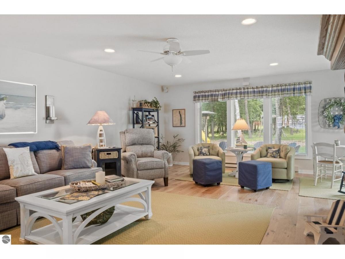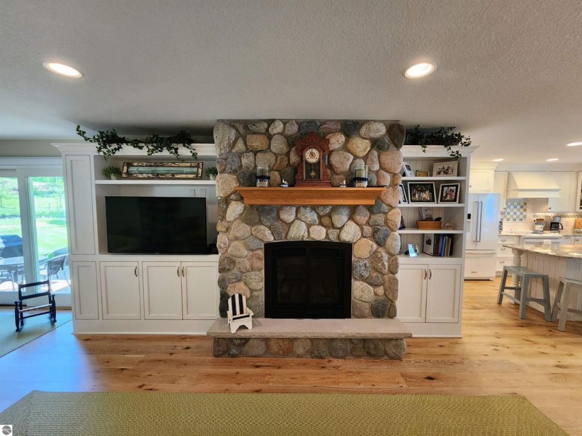 TORCH LAKE - Beautiful home in the quiet northeast lake location with views down the entire sparkling, 18-mile-long Caribbean blue lake. Torch Lake is ranked as the most beautiful lake in Michigan. Private 60 feet of frontage with Twin Bay dock and large platform included. Like new home situated among mature shade trees. Includes 4+ bedrooms, large living room with stone fireplace, family room, modern island style kitchen with granite and connected dining area and beautiful Torch Lake sunset views. Exceptionally large heated attached garage for boats, toys, extra cars, exercise room or indoor fun and games. Frontage across road dramatically reduces property taxes but provides easy safe access to all the water related activities that Torch Lake has to offer. Large, 1 acre lot in Central Lake Township provides ample room for building a large toy barn, if desired by new owner. Existing roomy garden barn currently used for lawn mower and other equipment. You’ll love the warm cozy feel of this “not-to-big”, “not-to-small” home in perfect condition. Just bring your bathing suit and toothbrush to this neat-as-pin property and relax, relax, relax.