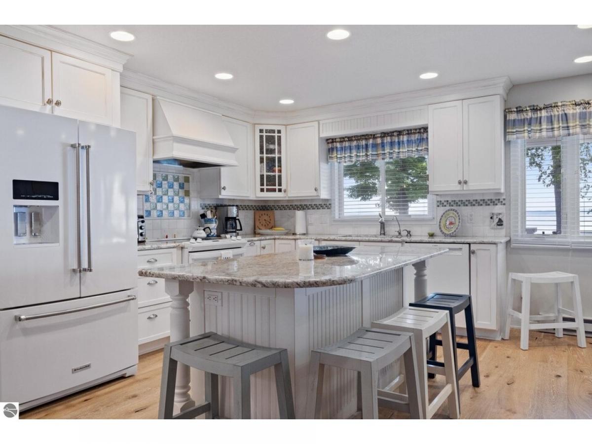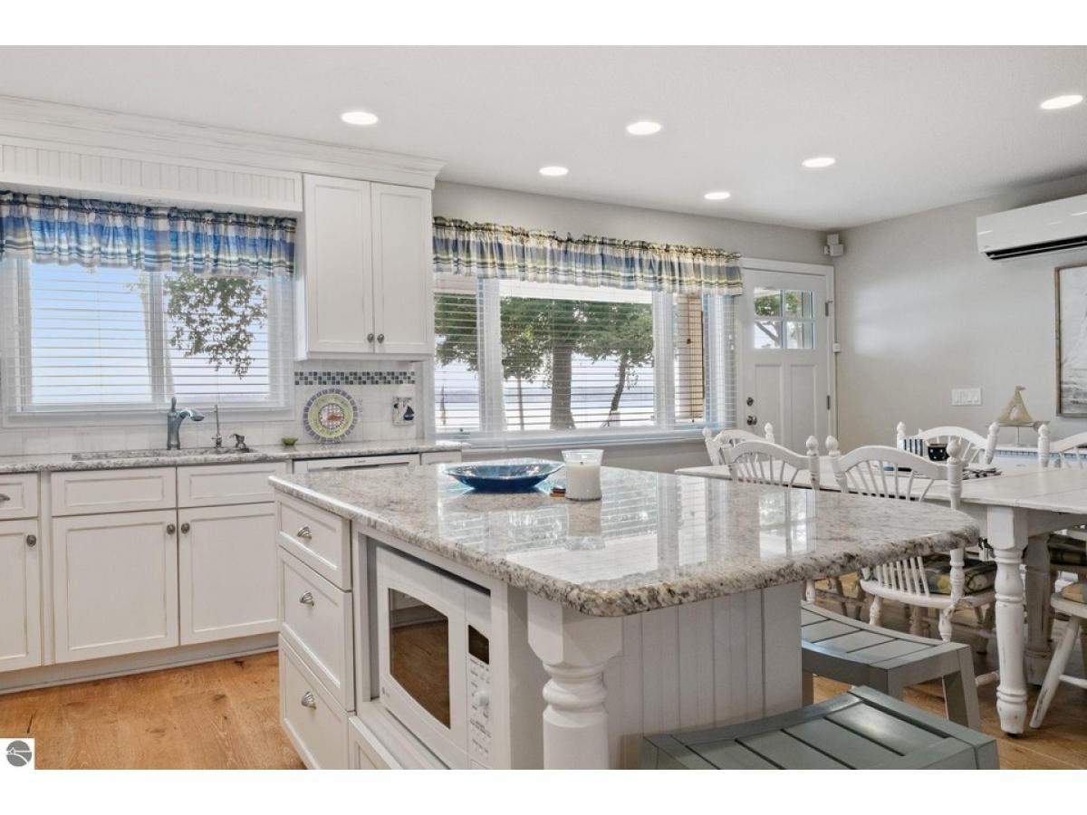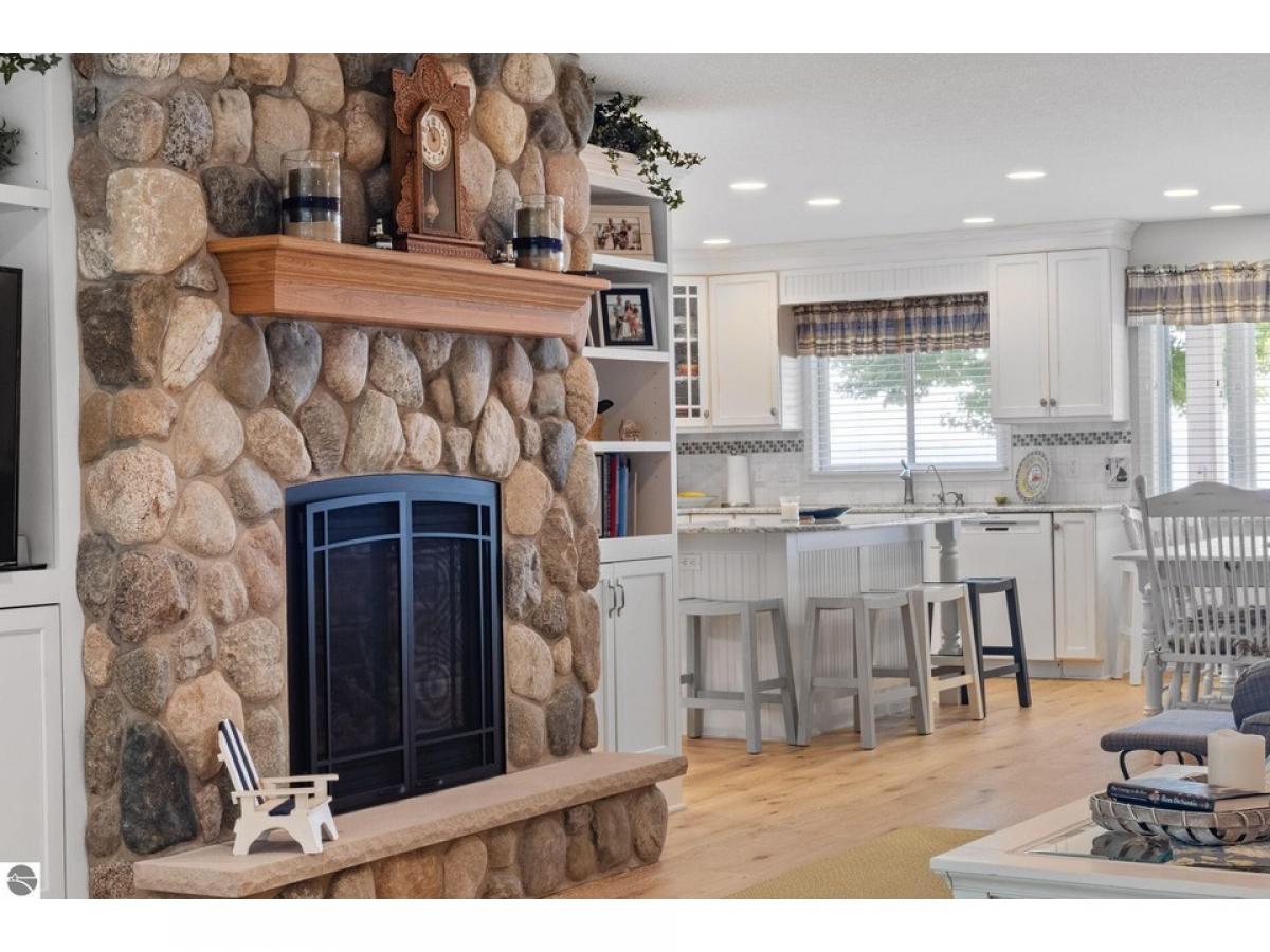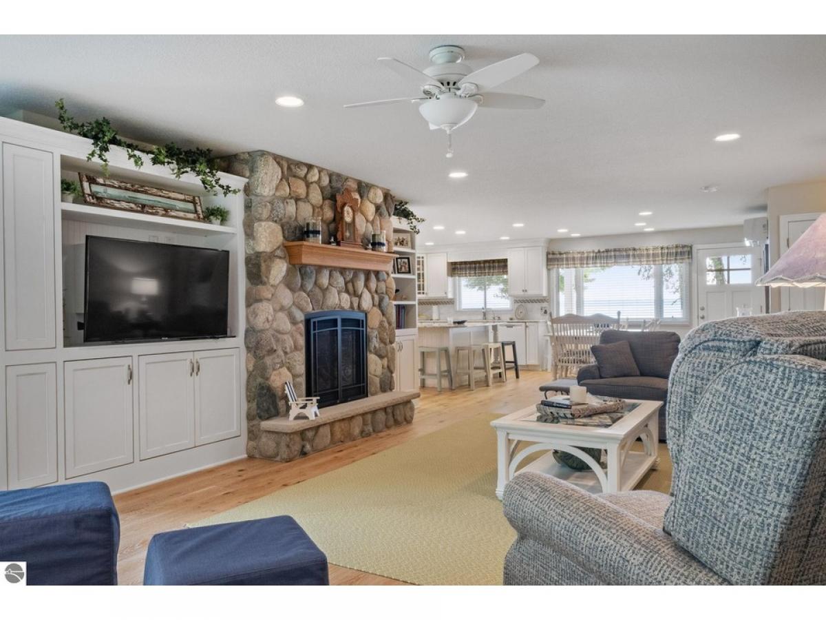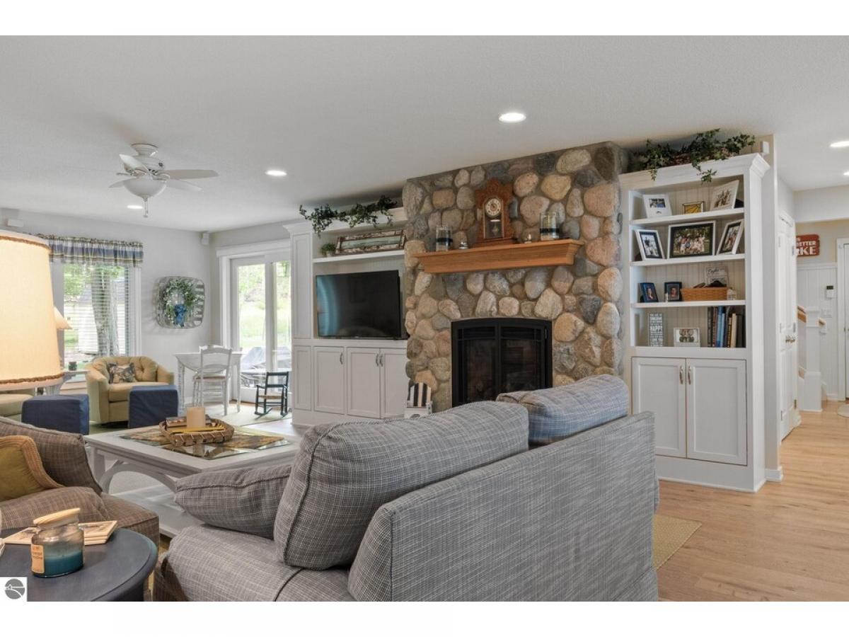 TORCH LAKE - Beautiful home in the quiet northeast lake location with views down the entire sparkling, 18-mile-long Caribbean blue lake. Torch Lake is ranked as the most beautiful lake in Michigan. Private 60 feet of frontage with Twin Bay dock and large platform included. Like new home situated among mature shade trees. Includes 4+ bedrooms, large living room with stone fireplace, family room, modern island style kitchen with granite and connected dining area and beautiful Torch Lake sunset views. Exceptionally large heated attached garage for boats, toys, extra cars, exercise room or indoor fun and games. Frontage across road dramatically reduces property taxes but provides easy safe access to all the water related activities that Torch Lake has to offer. Large, 1 acre lot in Central Lake Township provides ample room for building a large toy barn, if desired by new owner. Existing roomy garden barn currently used for lawn mower and other equipment. You’ll love the warm cozy feel of this “not-to-big”, “not-to-small” home in perfect condition. Just bring your bathing suit and toothbrush to this neat-as-pin property and relax, relax, relax.