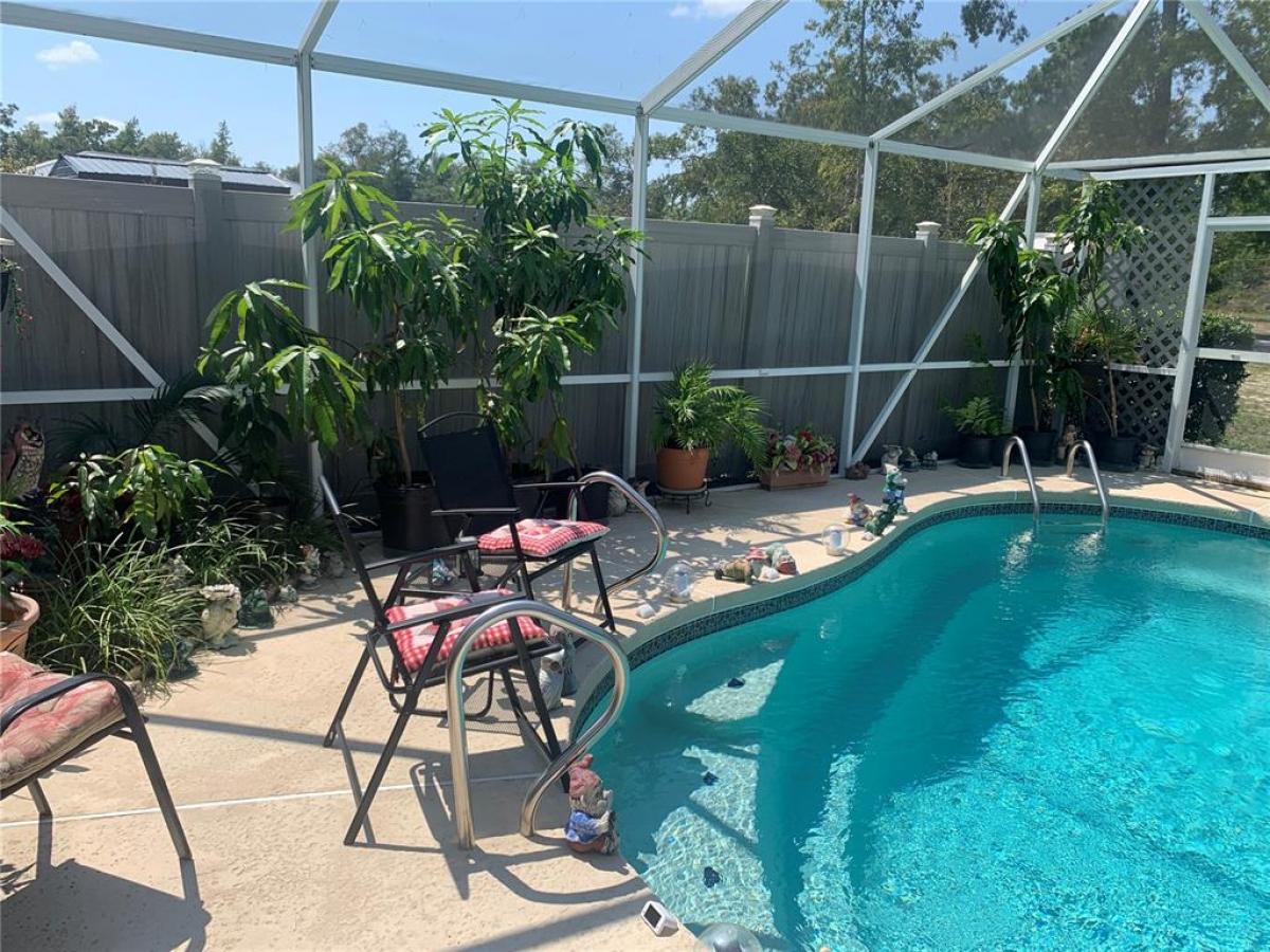 Beautiful Pool Home with .94AC ( 3 lots, could be subdivided) ,located in quiet and peaceful community. Featuring 3 Bedrooms, Eat -in- Kitchen,Living Room & Dining Room Combo,Family Room ,Spacious Garage for extra storage.Split floor plan.Stainless Steel Appliances.Security System.Well maintained.Newer Fridge,Washer, Dryer & Hot Water Heater, Updated Pool Heater ,Timer & Privacy Fence. Partially covered pool area with new vinyl roof (2 y old)-ideal for entertaining. Updated Sprinkler System with transferable warranty. Deed Restricted, No HOA.Convenient Location,Close to I-75, shopping, medical facilities,schools, & recreation/hiking,fishing & camping for all levels of outdoor enthusiasts .Nearby attractions- World Equestrian Center 17ml, Silver Springs State Park 20ml ,Rainbow Springs 23ml, The Villages 17ml,Gulf of Mexico 40-45ml, Orlando-68ml,Daytona-80ml.Call today to schedule appointment.