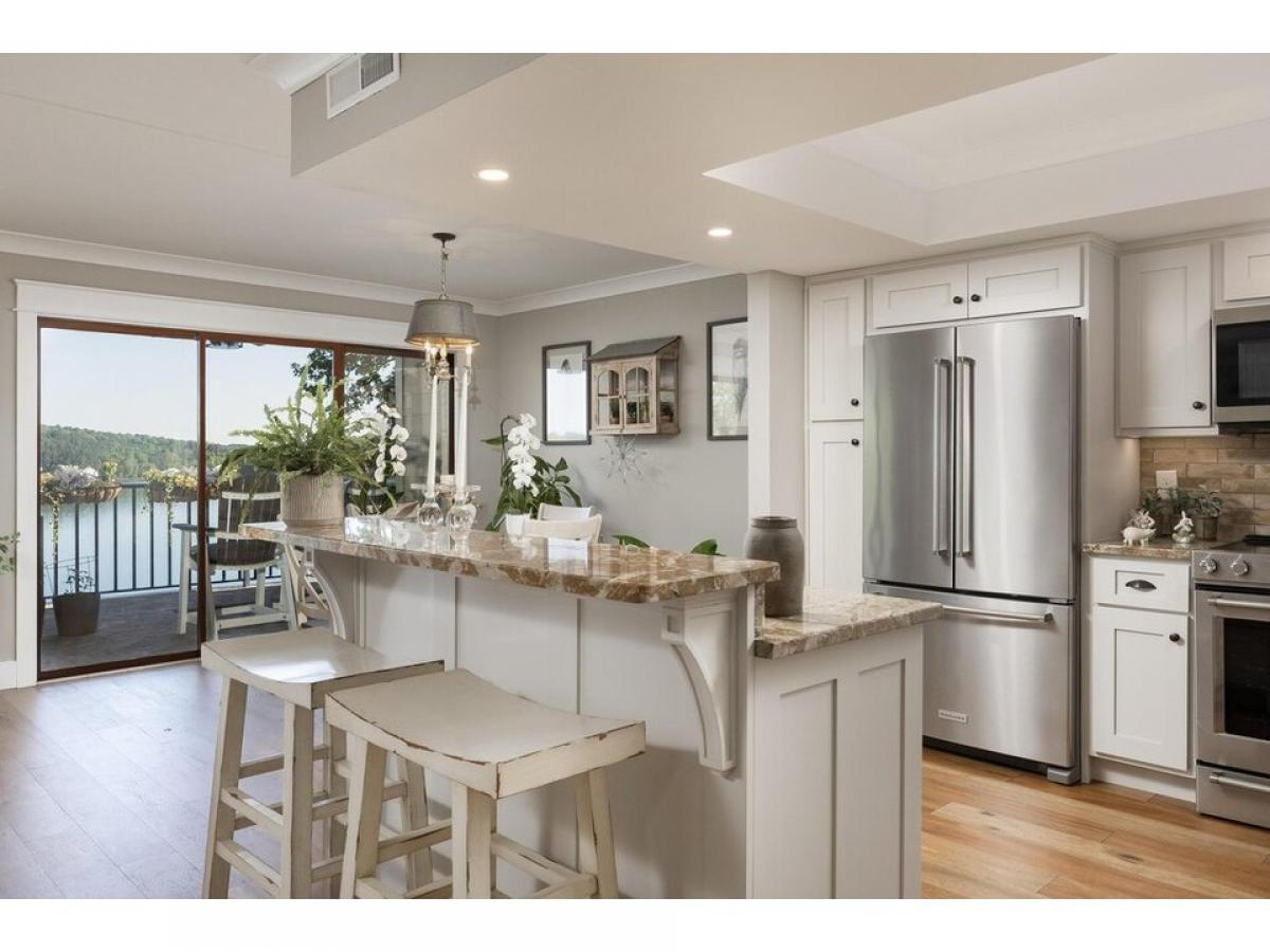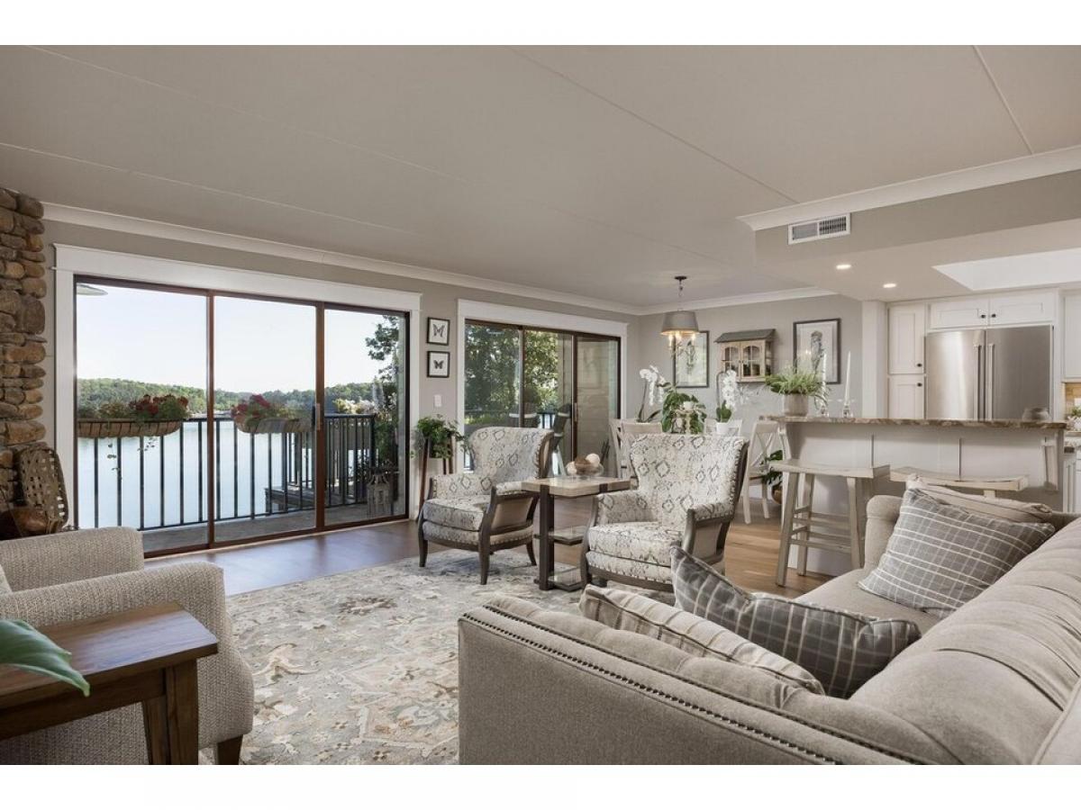 Luxurious, Lakefront condo - breathtaking view of main channel of Chickamauga Lake, top floor unit, total privacy, one level floor plan, patio/private tile deck, covered parking, remodeled throughout, KitchenAid stainless steel appliances, hardwood floors, mountain stone fireplace, granite countertops, Prime convenient location. Lakeshore development, (Harborpoint) includes a marina, restaurant, clubhouse, Community tennis courts. Must see to appreciate. A one year paid leased boat slip included in purchase price