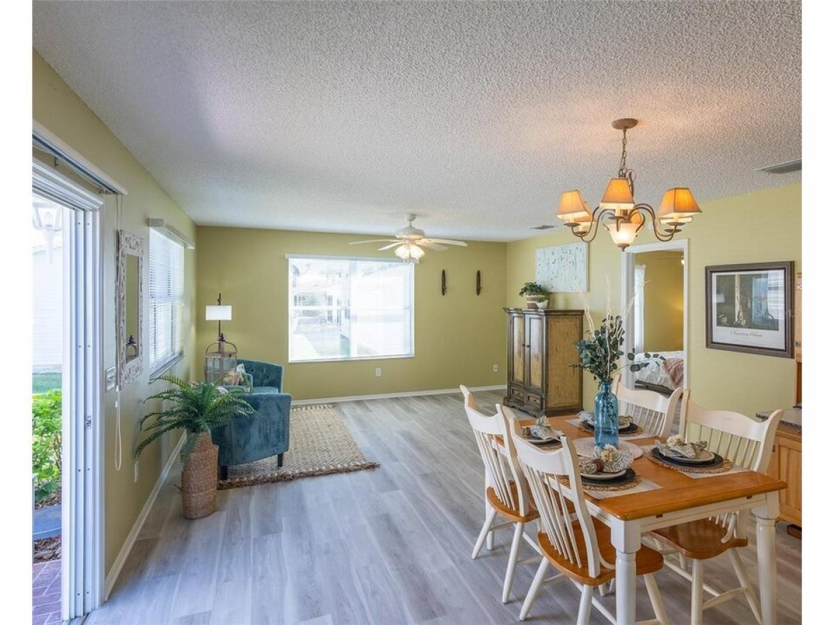 NEW AMAZING PRICE !! Welcome Home to your charming retreat in The Village of Bonnybrook! Step into this beautifully updated 1 bed, 1 bath Cottage boasting BRAND NEW luxury vinyl plank flooring throughout. The acrylic enclosed front patio invites you into an airy, open living space, perfect for relaxing or entertaining and enjoying year-round indoor/outdoor space. Great natural light pours in through the large windows and slider door access to the side porch. You#039;ll love the open porch for fresh air grilling and chilling. The spacious primary bedroom features a generous walk-in closet, while the updated bathroom showcases mosaic tile floors and a sleek seamless glass door in the shower. Ideal for those seeking comfort and style, this home offers a seamless blend of modern upgrades and cozy appeal. NO BOND ! ROOF replaced in 2012. HVAC replaced in 2024. The kitchen is light and bright and is equipped with gas stove for chef-style cooking...light cabinets and neutral countertops. Enjoy the window at the kitchen sink to see out the front of this cozy cottage. Whole-house water filtration system. Some furniture may convey. Additionally, enjoy the convenience of golf cart parking in your garage, adding to the ease of Villages living. Don#039;t miss out on this opportunity to own a meticulously maintained cottage home in a prime location. Explore the vibrant community of The Village of Bonnybrook, where your neighborhood boasts its own recreation center at its heart. Here, you can unwind with amenities such as an adult swimming pool, bocce and shuffleboard courts, and horseshoe pits, offering instant enjoyment right outside your door. Nearby, Churchill Downs and Pimlico Village Recreation Centers provide even more options with family pools, pickleball and tennis courts, alongside inviting billiards rooms, meeting spaces, and modern kitchen facilities. Golf enthusiasts can tee off at three executive coursesmdash;Pimlico, Churchill Downs, and Belmontmdash;while the Arnold Palmer Legends Country Club presents a challenging experience for golfers at any skill level.Schedule your showing today and envision yourself enjoying the vibrant lifestyle of The Villages!