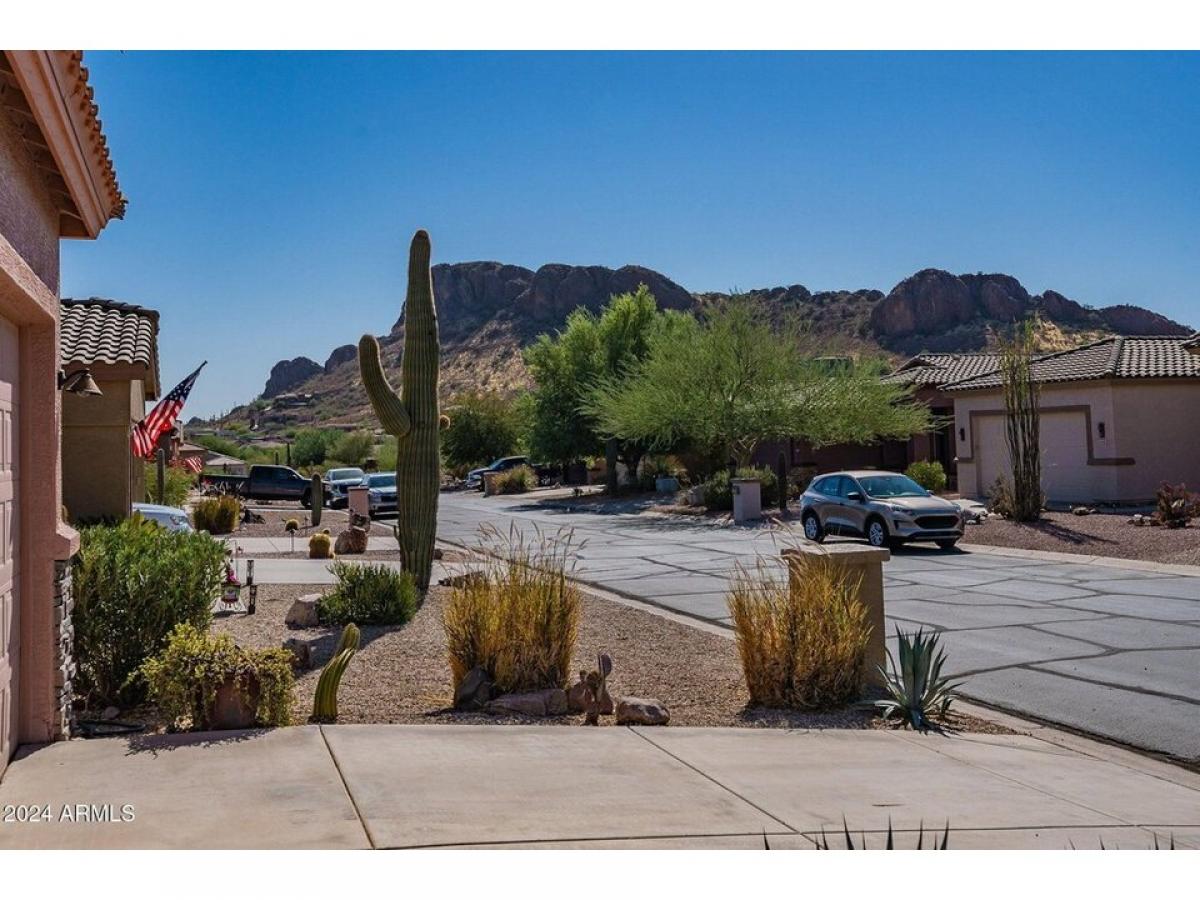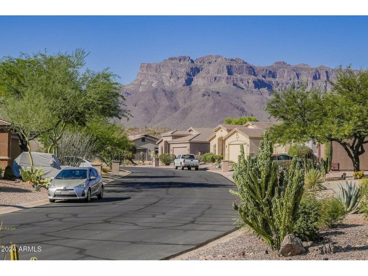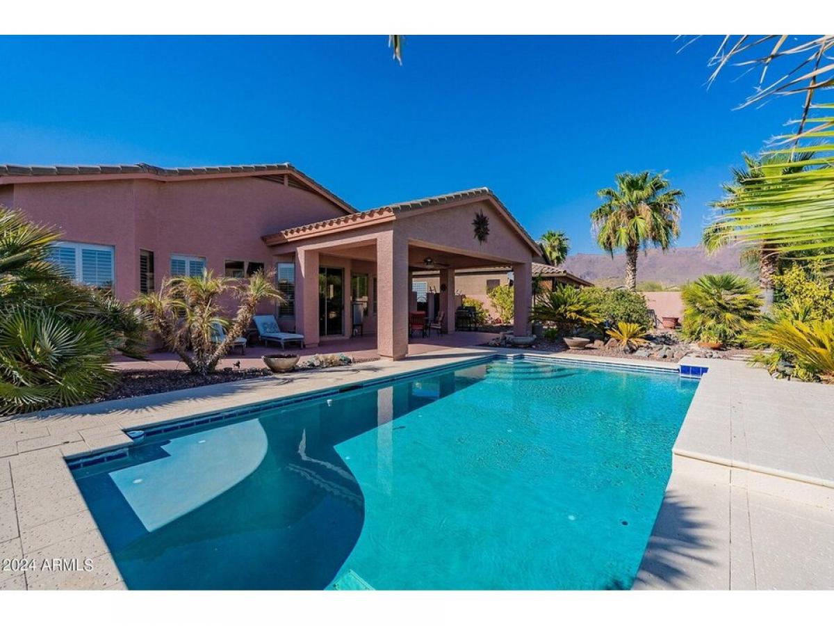 RESORT Style Backyard with Huge Extended Covered Patio Backs to Natural Wash with Superstition MOUNTAIN Views! Enjoy the Large Lap pool amp; NEWER Hot Tub to Relax after a nice swim.. 2 Bdrm/2 Bath with Separate Office/Den...Kitchen has a huge Island amp; Breakfast Bar with Granite Counters, Copper Sink amp; Backsplash, Open to Great Room / Formal Dining...Large Master Suite with Bay Window, Updated Master amp; Guest Baths...Enjoy this Beautiful Gold Canyon East Community close to walking and hiking trails, with low HOA dues.