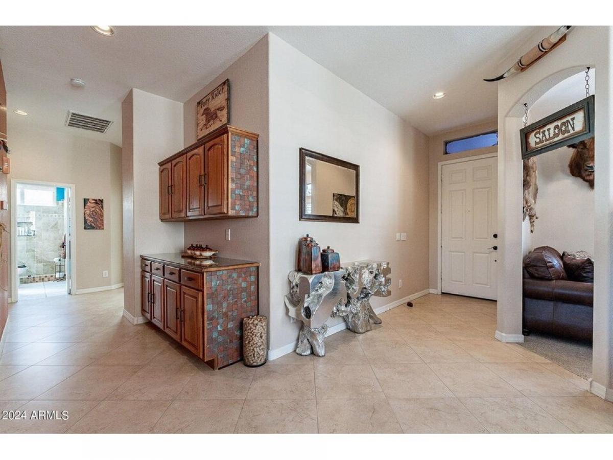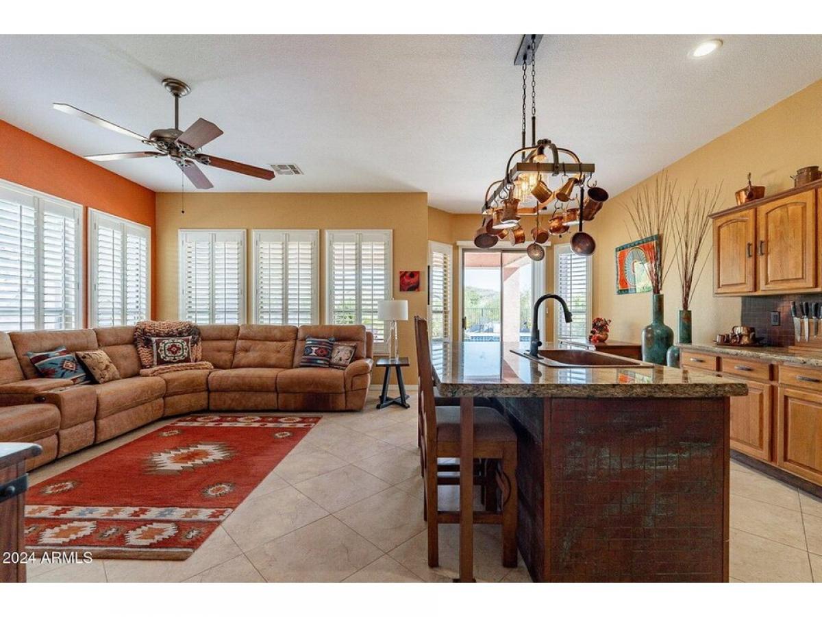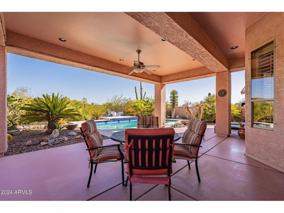RESORT Style Backyard with Huge Extended Covered Patio Backs to Natural Wash with Superstition MOUNTAIN Views! Enjoy the Large Lap pool amp; NEWER Hot Tub to Relax after a nice swim.. 2 Bdrm/2 Bath with Separate Office/Den...Kitchen has a huge Island amp; Breakfast Bar with Granite Counters, Copper Sink amp; Backsplash, Open to Great Room / Formal Dining...Large Master Suite with Bay Window, Updated Master amp; Guest Baths...Enjoy this Beautiful Gold Canyon East Community close to walking and hiking trails, with low HOA dues.