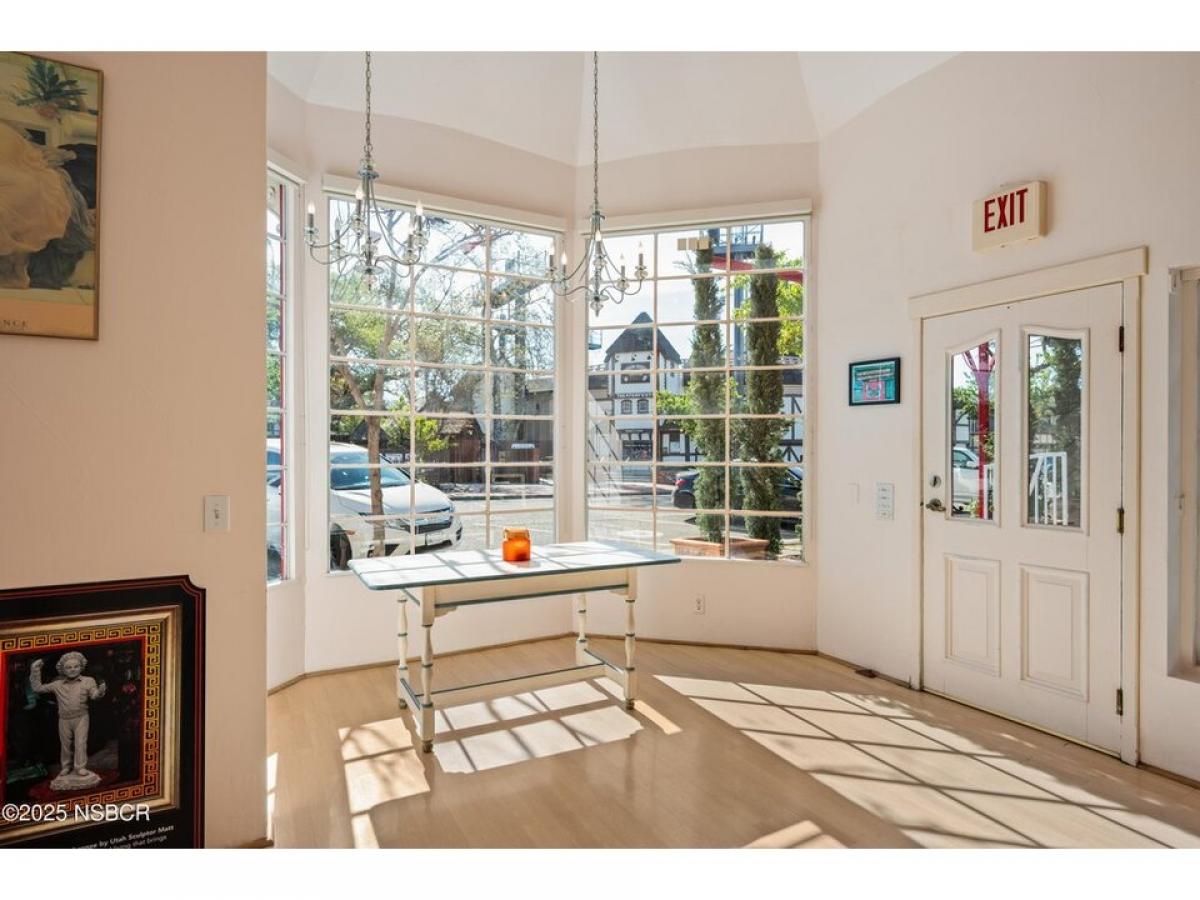This stunningly designed DT Solvang commercial building showcases outstanding architectural details and an impressive penthouse with a private elevator spanning four floors. The penthouse includes three bedrooms, two fireplaces, and Douglas fir beams, vaulted ceilings, and breathtaking city and mountain views. You will find a 30 plus seat restaurant with patio, and five retail and office spaces, ideal for conversion into vacation rental units, complemented by a carport and onsite parking. ADA-compliant restrooms are available, along with a one-bedroom short-term rental unit that generates income and high ratings. This unique property is perfect for downtown owner-occupied living, offering additional rental income potential and conveniently located across from the Solvang Festival Theater.