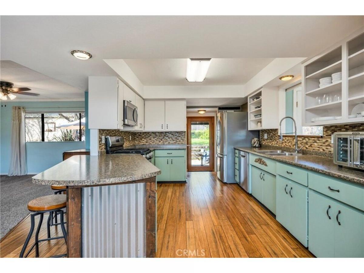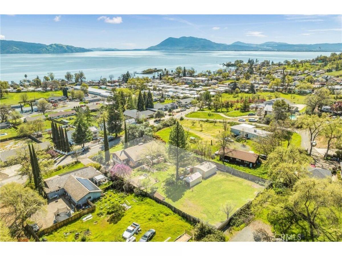 Motivated Sellers! This 5 bed / 3 bath home has nearly 3,000 SF of living space, situated on over half an acre in North Lakeport! This dual frontage property provides gated access from the rear of the property, for easy access to the sprawling backyard- ideal for RV parking/Boat storage, yard maintenance and more! From the front driveway, enter the home via the front deck to a stunning sunroom with bright windows and lovely lake and mountain views in the distance. Through the stately double doors you will find an open concept living area, kitchen and dining room. Solid bamboo flooring,newer carpet, ceiling fans amp; crown molding complete the space. The farm style kitchen offers upgraded stainless steel appliances including a propane range, dishwasher, plenty of storage cabinetry, walk-in pantry,glass tile backsplash, and functional pass-through window for entertaining in the sunroom. Primary suite, full bathroom, and large 2nd bedroom can be found on the main floor. The primary has an ensuite bathroom with dual sink vanity, walk-in shower,custom tile flooring, and refurbished 120 year old vintage french doors adding character to the space. The lower level includes a family room with electric fireplace, a den currently used as an office, soundproof music room, three additional guest bedrooms, and full bathroom with upgraded tile walk-in shower. The indoor laundry room adjoins an expansive storage area and the wine cellar is an added bonus! The fully fenced backyard has something for everyone! Great fully shaded entertainers patio with newer 7 person Caldera spa, 10x16 garden shed, 18x21 metal shop building, chicken coop, a well for irrigation, playground with play structure and vintage ride on toys from Library park. Enjoy the herb garden with pineapple sage, society garlic, thyme, oregano and lemon balm. Fruit trees include fig, plum, mulberry, olive, apple, pomegranate, grapevines, and blackberry vines. Freshly painted exterior July 2024! Hardwired exterior security cameras for added peace of mind! Ideally located 10 minutes from town and 2 blocks from the lake. This is one not to be missed!