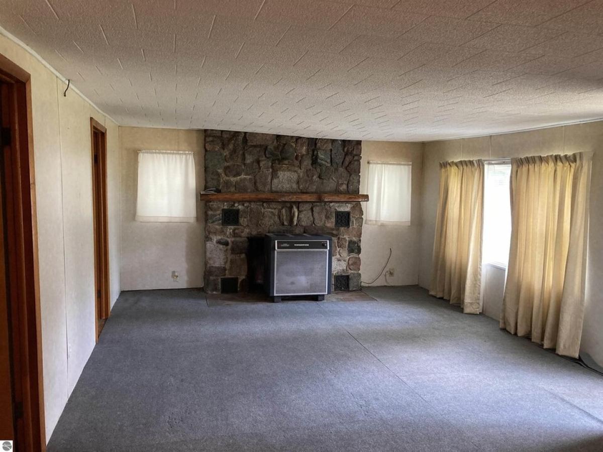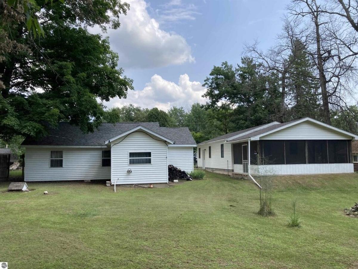 NEAT year-round week-end retreat or home! Three usable bedrooms, full bath, utility area, huge stone fireplace with a woodstove, L.P Gas wall furnace and fronts on a quiet paved road! Nearly instant access to the trails and public hunting lands out of South Branch and not far to several great lakes and the famed AuSable River. The large, finished garage is super and the screened room, 14x23, is super cool. There's also a finished barn style 10x12 building that's great for a workshop, storage OR a little day use cabin if you need some extra space. Cement garage approach and sidewalks, PEX plumbing and newer H/W heater.