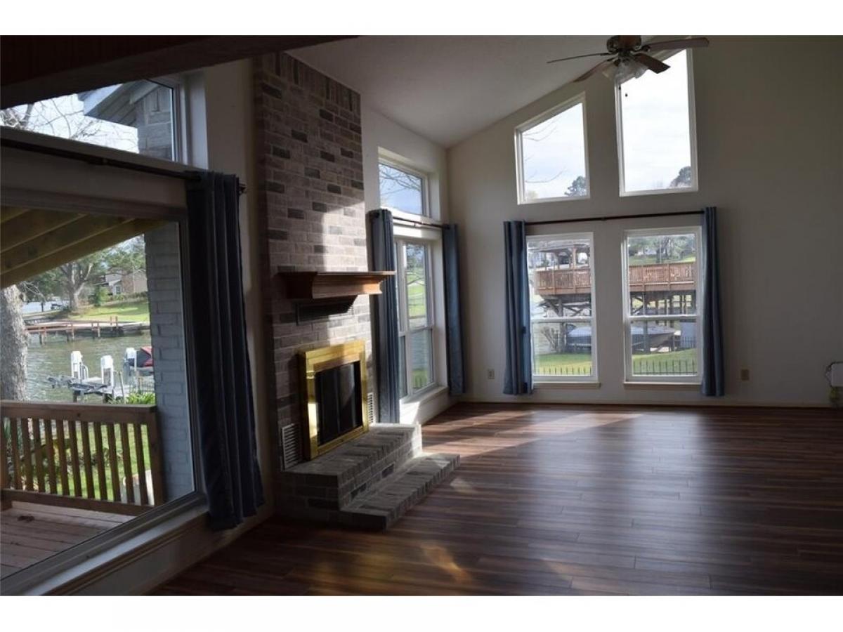 This stunning waterfront home on Lake Livingston is situated in the prestigious Lakeview Hills neighborhood, offering breathtaking lake views. The property features a concrete 110 FT bulkhead and a single boat lift, with a community boat launch. Inside, the living area boasts high ceilings and a floor to ceiling brick gas fireplace, complemented by large windows that frame the picturesque lake scenery. Recent updates include vinyl plank flooring throughout the first floor. The primary suite, located on the main level, includes a spacious bathroom with double sinks, walk-in shower, along with an additional 92 square feet of space for an office or craft area. The kitchen seamlessly connects to the dining and breakfast areas, making it ideal for entertaining. Upstairs, three additional bedrooms, a bathroom, and a generous loft area provide ample space for family and guests. Recent improvements such as new windows, a roof, a whole-home generator, and a septic system ensure peace of mind.