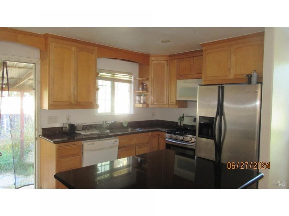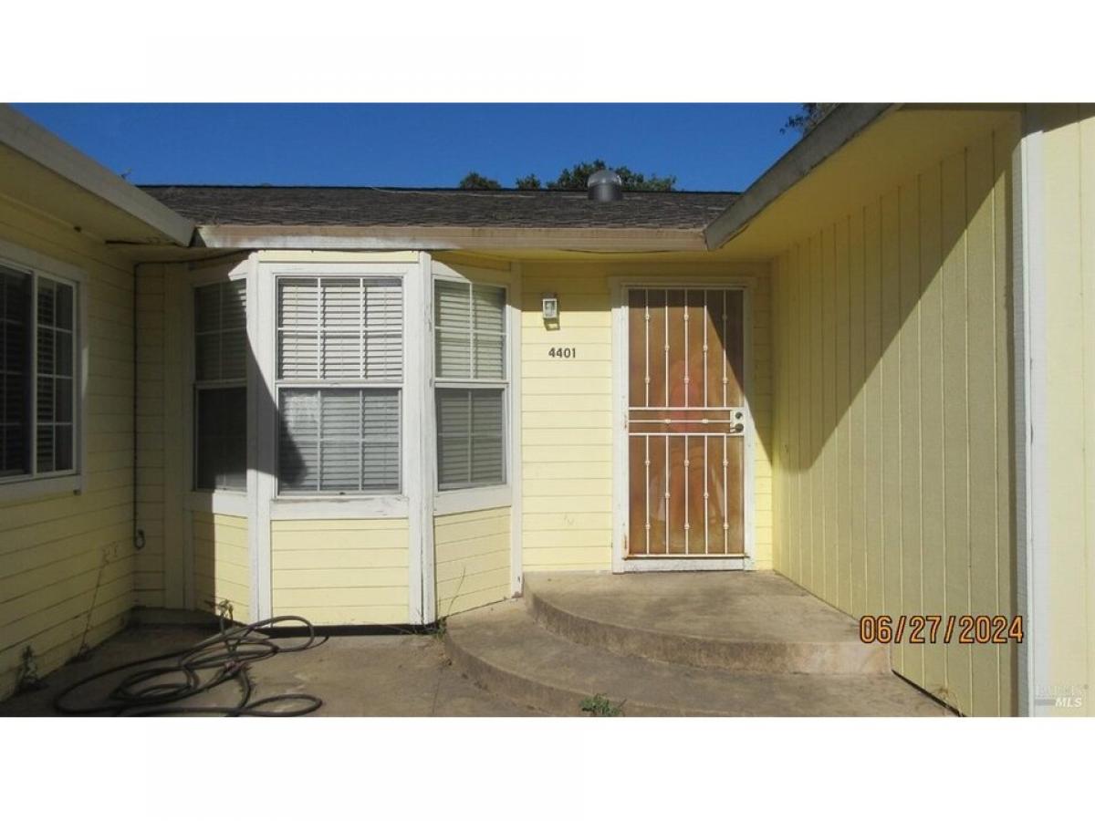 Three bedroom, 2 bath, single story home on 3/4 level acre lot down a private lane. On Public sewer and private well. Corian kitchen and bathroom counters.
