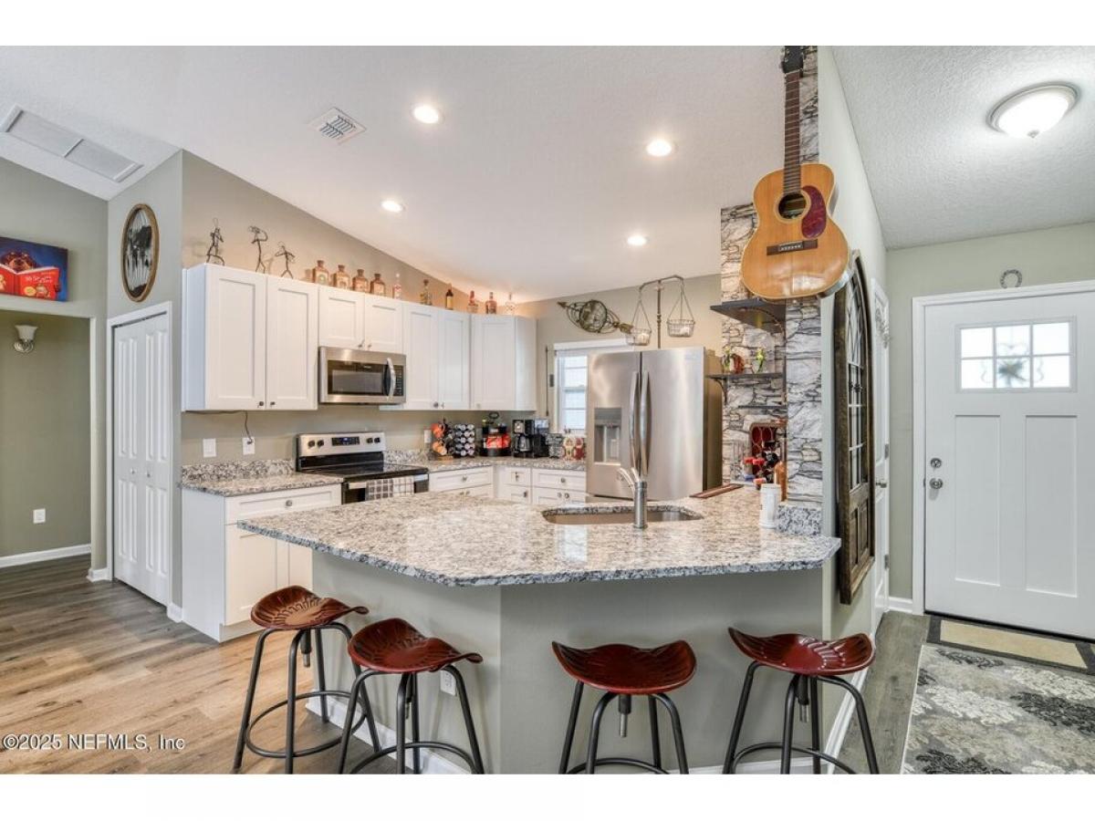 Like new 4 bedroom 2 bath home on large corner lot! This great home features an open living/dining area with vaulted ceiling, spacious kitchen with stainless appliances, granite countertops, white shaker cabinets, and breakfast bar seating. The owner#039;s suite includes a generous sized bedroom, a large walk-in closet, and a stylish step-in shower. The three guest rooms offer options for a home office or craft room, etc. Easy maintenance vinyl plank flooring throughout (except tile in bathrooms), lots of natural light, and a split floor plan are just some of the great features. All kitchen appliances will convey, plus newer washer, dryer, and water softener system. Outside you#039;ll find an attached two car garage, hardiboard siding, front porch, back patio, and plenty of room for a garden or backyard games. No HOA or CDD fees and great St Johns County schools!
