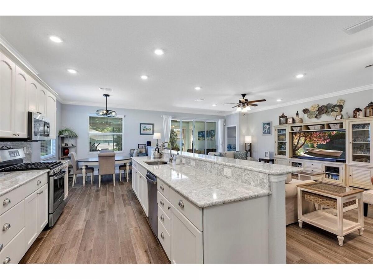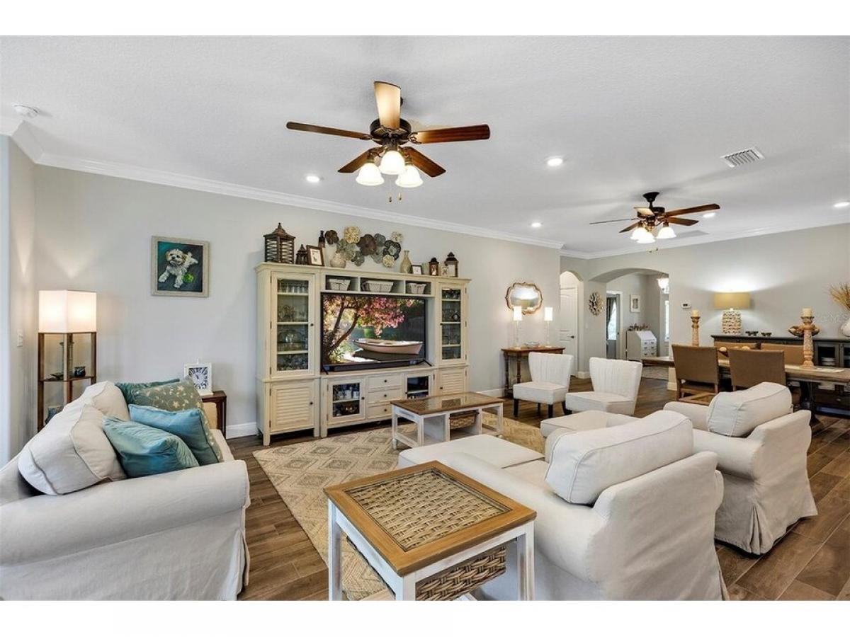 Affordable Low-Maintenance Stucco Home located in Guard Gated, Active Adult Golf Community. Discover a lifestyle of comfort and leisure you#039;ve waited for your whole life for in this charming custom home located in the popular, high-demand Arlington Ridge Community With a low HOA of $124 per month, Built in February 2020, this 2,094 s.f. conditioned Custom Built 3 bedroom, 2 bath home with over-sized (680 s.f.) stretched 2 car garage with golf cart parking. Home boasts modern design and low-maintenance stucco construction situated on over-sized 1/3+ of an acre lot with 6 different types of producing fruit trees, only 5 minute golf cart ride to the community amenities, restaurant and pub. Open-concept floor plan (NO CARPET) Only top of the line wood look porcelain tile, high ceilings and crown molding, Wide baseboards enhance the sense of space and inviting atmosphere and overlooks sliding doors connecting to a 450+ s.f. screened and covered lanai/bird cage w/ Heavy Duty Privacy Curtains. This home is of modern design and has rounded corners, open floor plan connecting Great Room, Dining area and kitchen, Kitchen has gorgeous quartz countertops amp; tile backsplash, 6 seat bar-top, wood cabinets with pullouts and deep soft-close cabinets amp; drawers, upgraded stainless steel appliances and walk-In Pantry The master bedroom features an en-suite bath, vanities w/ quartz tops, a walk-in Roman shower for added safety, private water closet amp; large walk-in closet, Indoor laundry room, , This home is impressive. The always shady lanai is perfect for entertaining . Upgrades incl added landscaping, stone in beds instead of wood mulch, slab for grilling, gutters and mailbox at your home, not an inconvenient mail-bank you have to drive to to get your mail. If you#039;re looking for paradise, You#039;ve found it. Benefit from huge discounts on homeowner#039;s insurance due to the home#039;s high construction standards being built to modern wind code, high elevation for flood protection, and a low wind zone, also qualifying for additional insurance discounts. The low HOA of $124/month includes, Mowing, edging amp; blowing, High speed Wi-Fi and router for signal coverage throughout the home, 200+ cable TV channels, and 250-megabyte high-speed internet. Two DVRs are also included for recording your favorite shows which is all included in the low HOA making this community even more affordable than nearby communities This sought-after community offers a range of amenities, including an 18-hole golf course where you can get a tee time year round, YOU DO NOT HAVE TO PURCHASE A SOCIAL OR GOLF MEMBERSHIP TO USE AMENITIES OR LIVE IN THE COMMUNITY! driving range, putting greens, lighted tennis and pickleball courts, heated swimming pools, hot tub, fitness facilities, billiards, a restaurant, tavern, and a free movie theater. The community is golf cart-friendly, with sidewalks for strolls and low-speed limit streets perfect for bicycling. Enjoy the convenience to grocery stores, restaurants, banks, pharmacies and a free boat ramp and fishing pier on a 15,000-acre lake are nearby within a 5-minute drive . Community is 20 minutes from malls, restaurants, and a 12-screen movie theater, 45 minutes from Orlando, Major theme parks, and the airport, 90 minutes to Daytona Beach amp; Atlantic Ocean and Gulf of Mexico Clearwater SJS 2025copy;