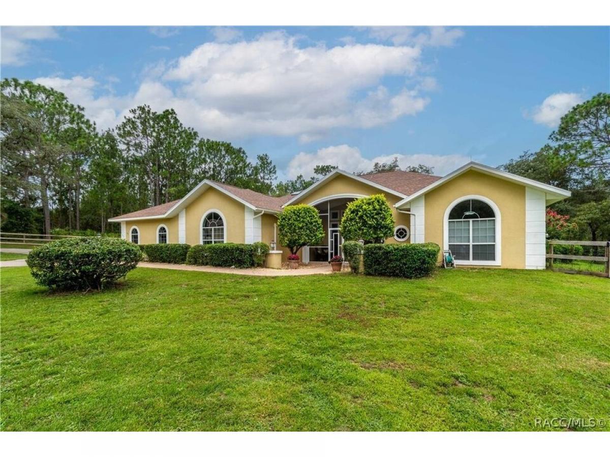 On an oversized corner lot within the peaceful community of Pine Ridge, this stunning home features a variety of upgrades and plenty of room for everyone. Surrounded by large yards and tasteful landscaping, the well-maintained home features a total of 5-bedrooms and 4.5-baths with multiple updates made throughout. The spacious split-bedroom floor plan features plenty of natural light, high ceilings, and tasteful finishes throughout. A large combination family/dining room invites you into the home as you step inside, with french doors that let in lots of light and provide easy access to the pool areandash; a great area for hosting guests! The well-appointed kitchen features plenty of prep space with granite countertops, high end wood cabinets, stainless steel appliances, a center island, and a butler pantry. Directly adjacent to the kitchen is a cozy breakfast nook with access to the back patio, as well as the spacious living room complete with a floor-to-ceiling wood burning fireplace. The primary suite and a smaller mini-suite rest in the right wing of the home, while the remaining three bedrooms rest in the left wing. To the back of the home is the stunning screen-enclosed in-ground heated pool and spa which is surrounded by a large pool deck, covered area for seating, and a built-in wet bar. A sauna is also in place and conveys. A short drive provides access to a variety of shopping and dining options in both Beverly Hills and nearby Crystal River, not to mention the various outdoor options along Crystal Riverrsquo;s coast. This stunning home is a true must-see for those who seek space and want to enjoy the Florida lifestyle!