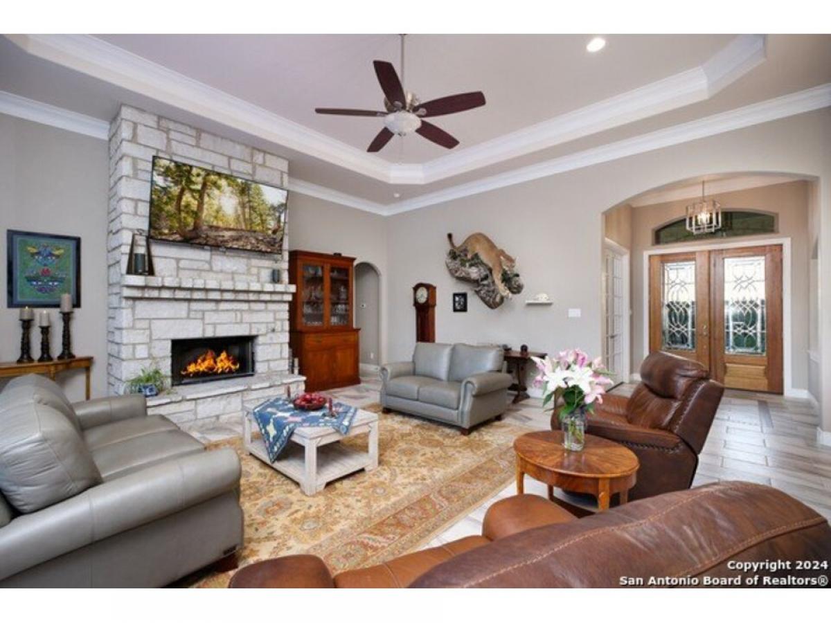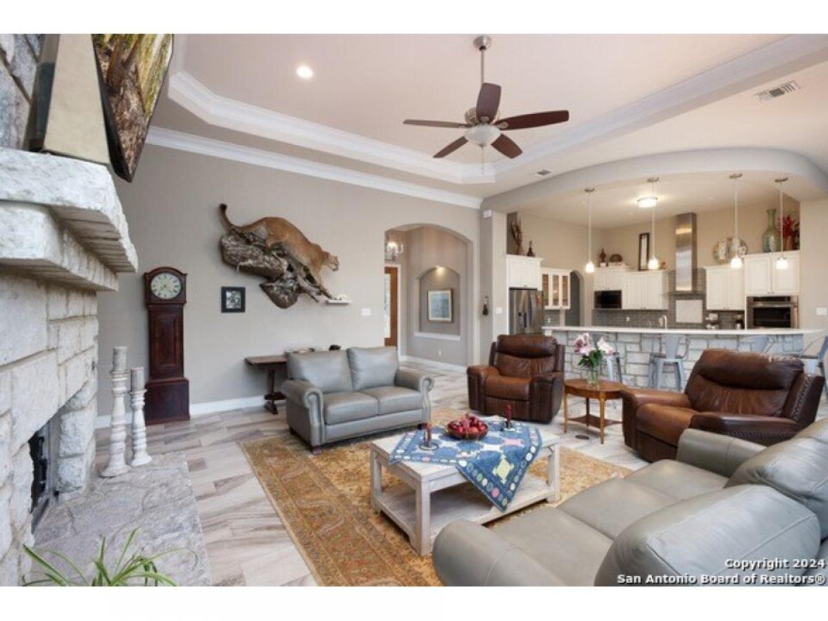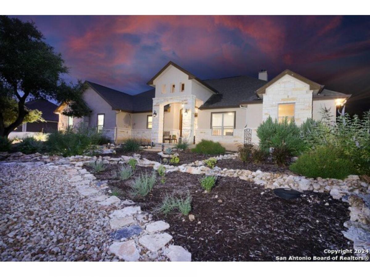 Welcome to the enchanting Cascada at Canyon Lake! This elegant custom home, just five years young and set on 1.14 acres, epitomizes luxury living. Designed with a blend of classic and modern elements, the home features 3 bedrooms, 2.5 bathrooms, and an office. Upon entering, you#039;ll be greeted by an open layout that seamlessly connects the stunning kitchen, living room, and dining area, all overlooking the breathtaking Hill Country backyard. The kitchen is a chef#039;s dream, equipped with stainless steel appliances, quartz countertops, and a high bar top, making it perfect for entertaining and creating delicious meals for years to come. The primary bedroom is privately situated opposite the second and third bedrooms, offering a serene retreat. The master bathroom is a haven of relaxation with its resort-style garden tub and oversized shower, ideal for unwinding after a long week. The low-maintenance front and backyards provide picturesque Texas country views from every window. Conveniently located just north of San Antonio and a short drive to New Braunfels, Austin, Blanco, Wimberley, and more, this home offers both tranquility and accessibility.