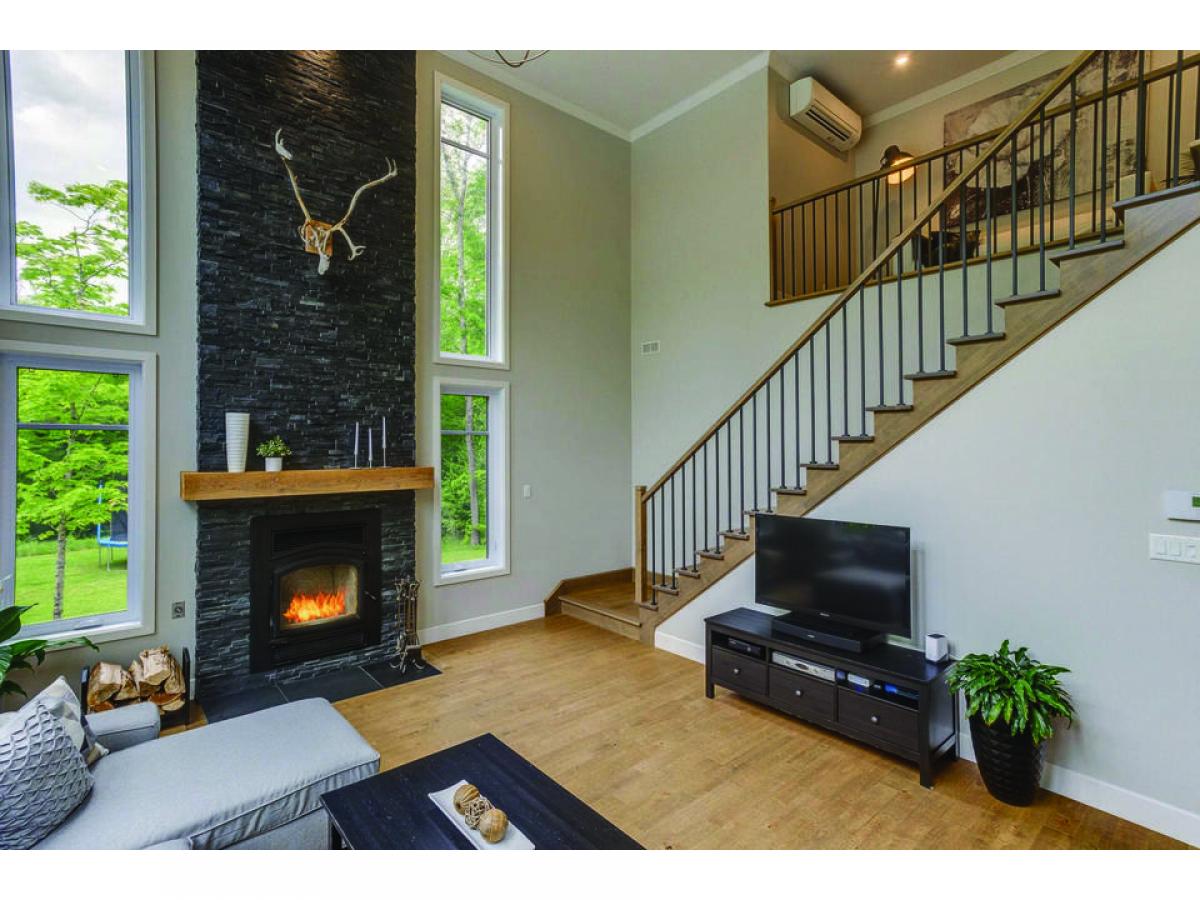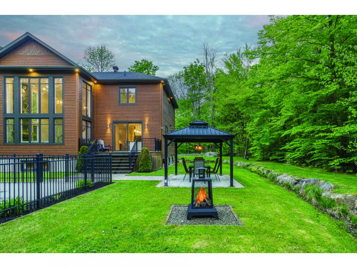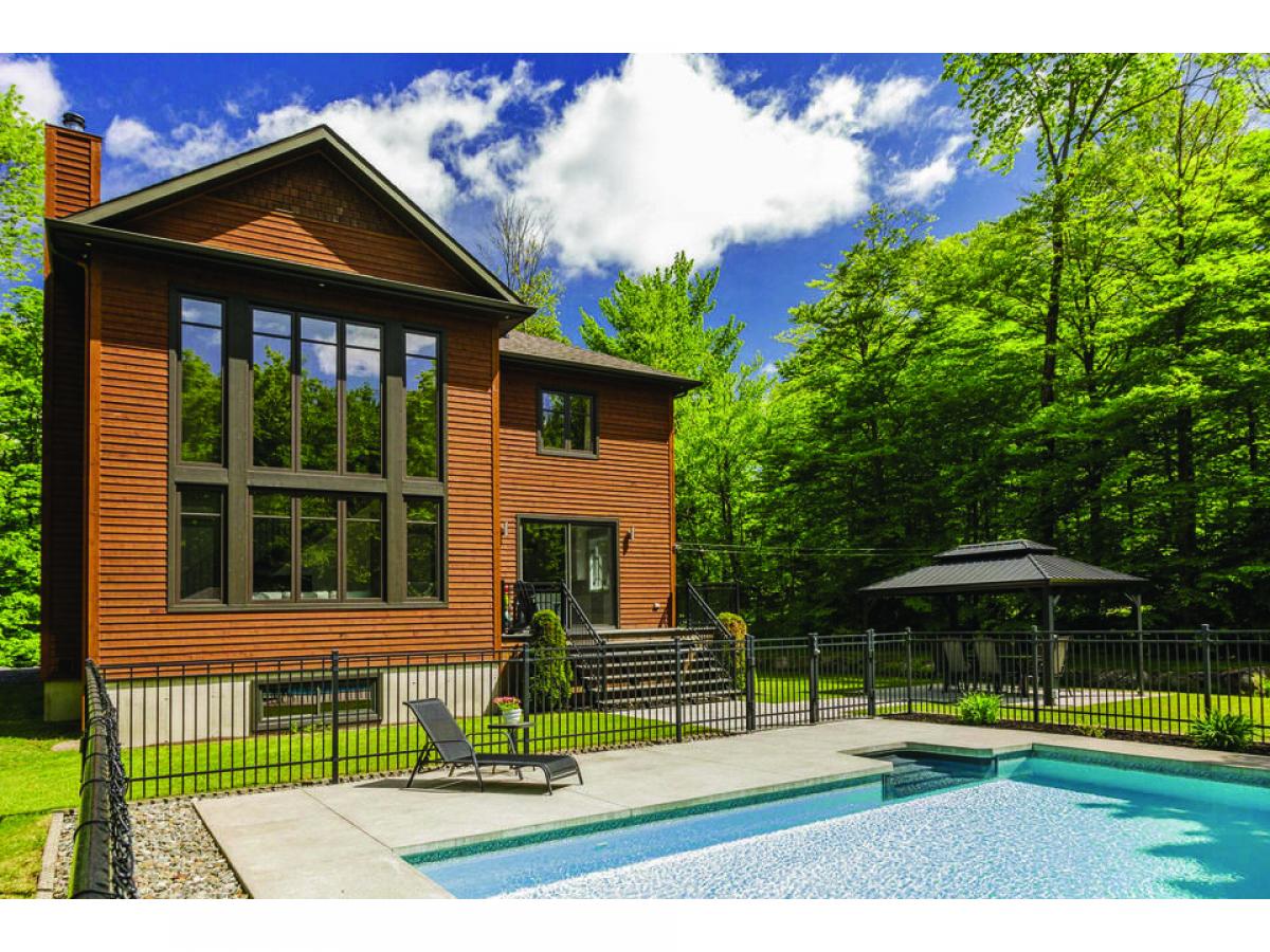 This property set on 3 intimate acres surrounded by forest features 4 bedrooms, an in-ground pool, 9 & 18 foot ceilings, a garage and a very private site close to outdoor activities. Its spacious, light-filled interior creates a welcoming ambience, while the pool and terrace offer an ideal space for relaxing and entertaining with ease. Possibility of converting the wood shed into a 2nd garage. Via the nearby Route Verte, you'll have access to Parc National du Mont-Orford and a host of activities via Lac Stukely. An opportunity to establish yourself in the Eastern Townships!