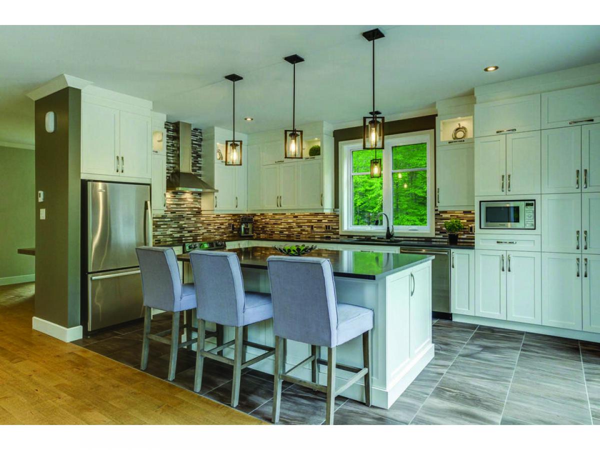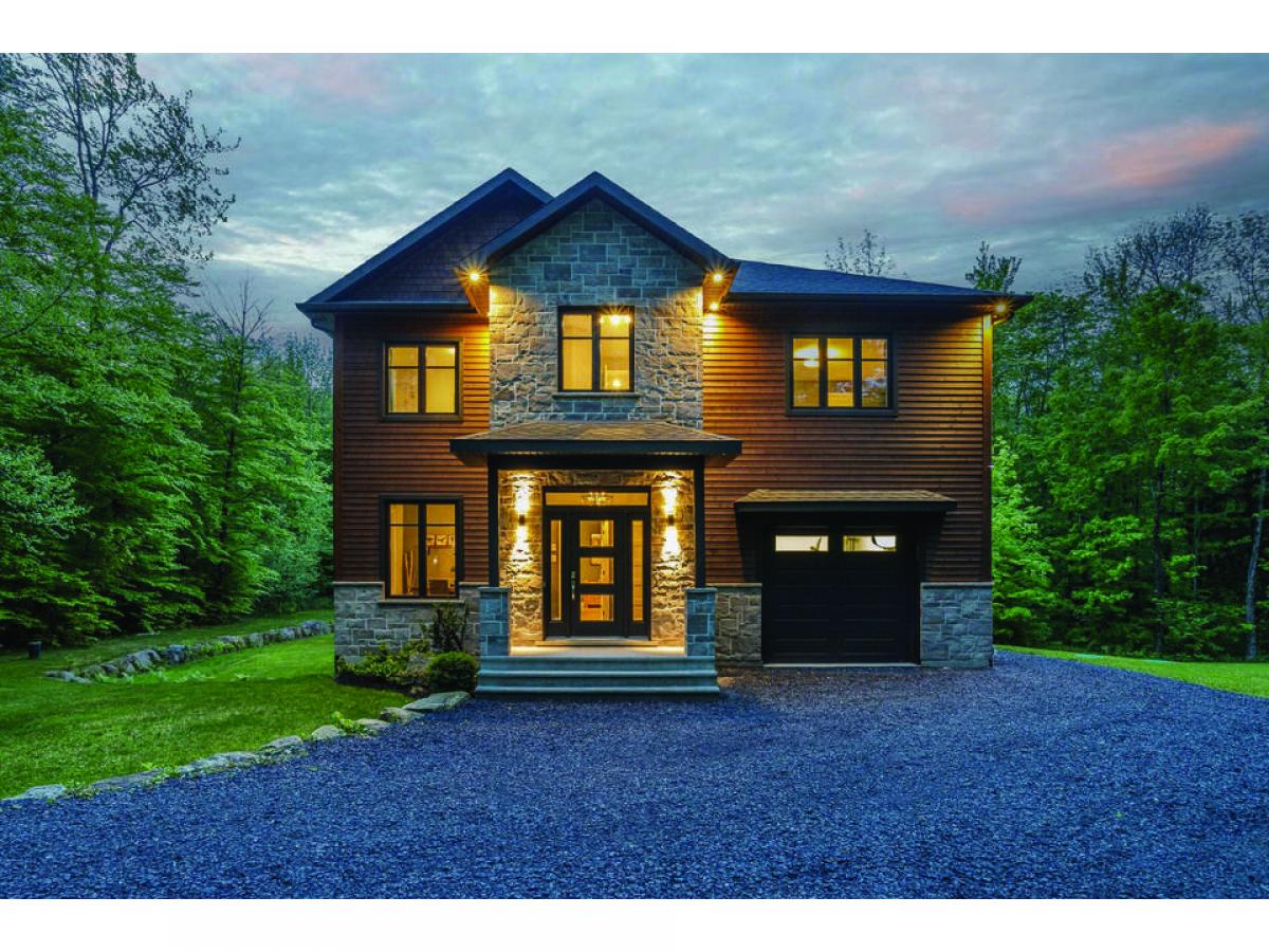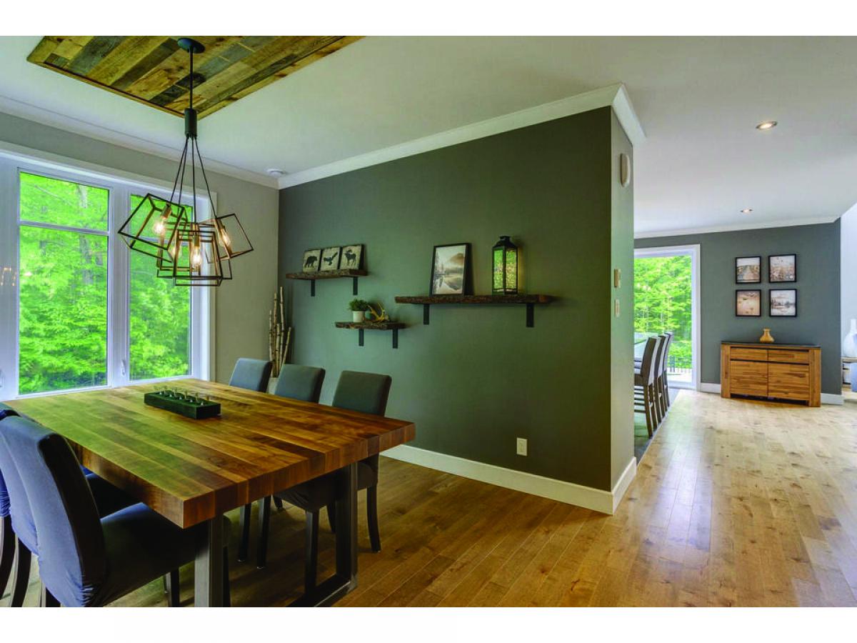 This property set on 3 intimate acres surrounded by forest features 4 bedrooms, an in-ground pool, 9 & 18 foot ceilings, a garage and a very private site close to outdoor activities. Its spacious, light-filled interior creates a welcoming ambience, while the pool and terrace offer an ideal space for relaxing and entertaining with ease. Possibility of converting the wood shed into a 2nd garage. Via the nearby Route Verte, you'll have access to Parc National du Mont-Orford and a host of activities via Lac Stukely. An opportunity to establish yourself in the Eastern Townships!