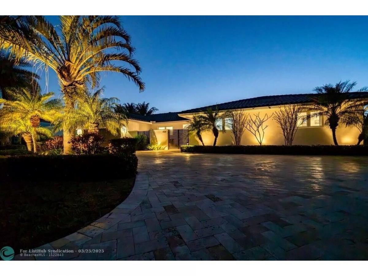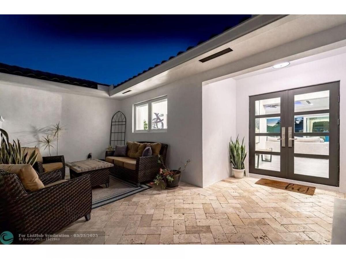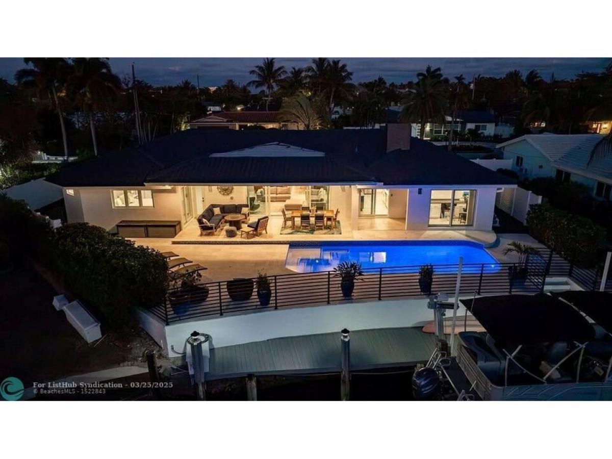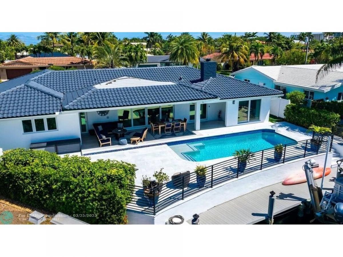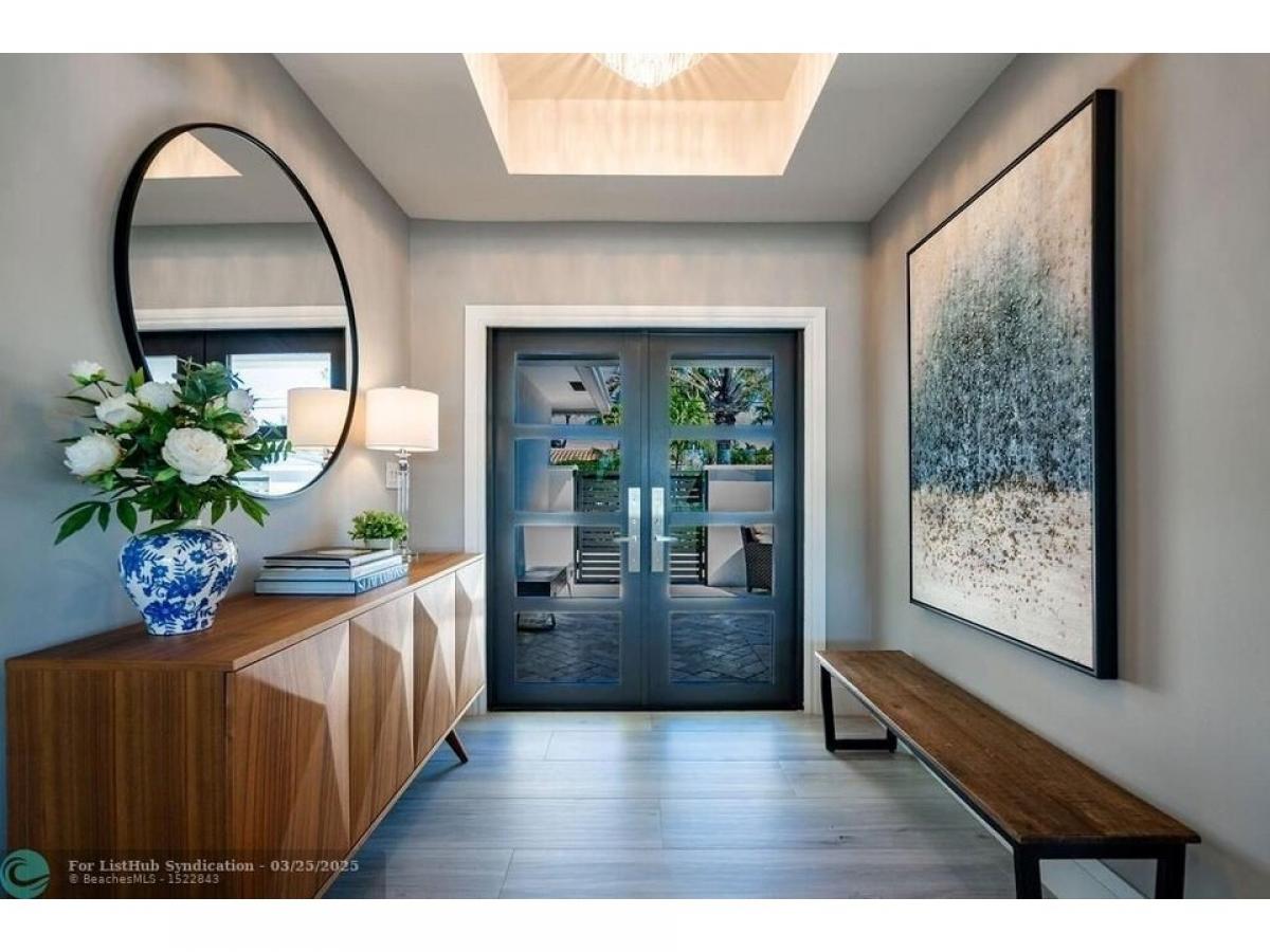 Ultimate luxury awaits you in this completely redesigned 4 bed, 4 bath, 2 car garage home! It starts with beautiful curb appeal and only gets better as you step through the gated courtyard into the foyer entryway. The contemporary interior features raised tray ceilings in the living room, dining room and foyer entry defining the spaces. Open floor plan with chefs kitchen featuring quartzite counters. Large butler pantry with extra refrigerator as well as a huge interior laundry. A high ceiling lanai was added to the home with adequate room for seating and dining areas and features a wood tongue and groove ceiling. Remodeled pool surrounded by solid marble, large artificial turf side yard with putting green. Polymer dock, 20K Lbs. boat lift. Air conditioned tackle/storage room. A must see!