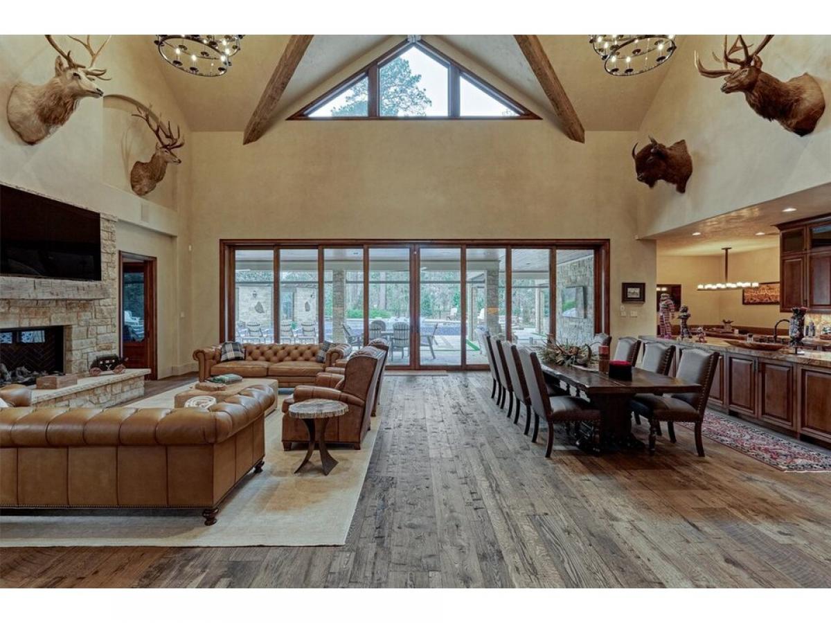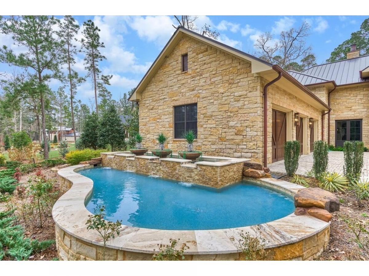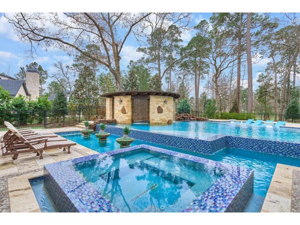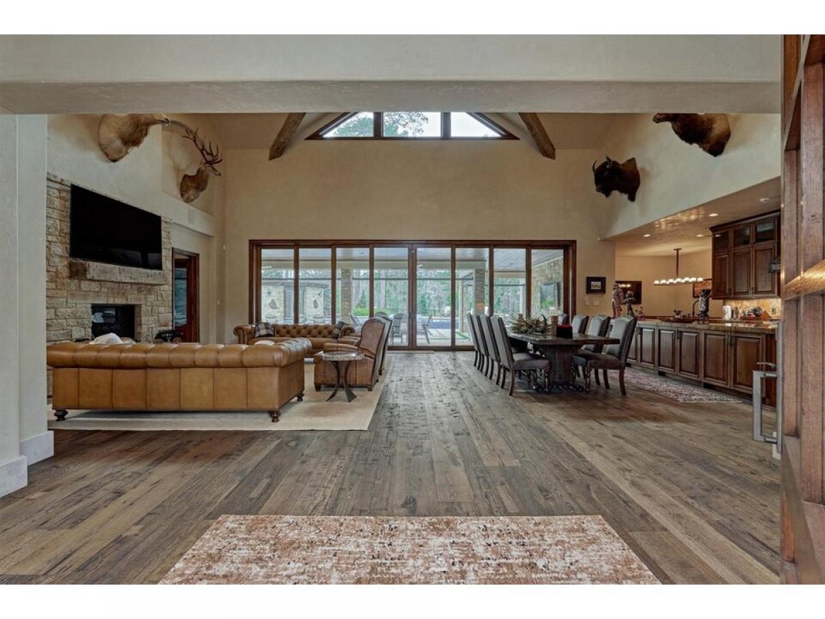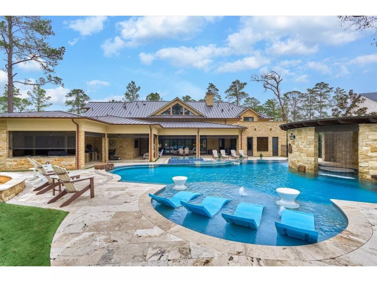 Nestled within the exclusive Bluejack National community in Montgomery, Texas, this residence epitomizes laid-back luxury. The home boasts hand-laid and scraped wood flooring, soaring ceilings, and a gourmet kitchen with a spacious pantry, additional freezer, and ice-making machine. A state-of-the-art gym features a steam shower and advanced overhead system, reflecting many upgrades. The property includes six garages with built-in cabinetry, a resort-style pool with dual chillers, and a grotto equipped with an outdoor television. Smart home integrations manage automatic wood blinds, lighting, and security cameras. Enhanced with foam insulation, high-grade silicone-sealed windows, and treated exterior stone and driveway, the home ensures energy efficiency and durability. Living in Bluejack National offers access to the first Tiger Woods-designed golf course in the U.S., The Fort for family recreation, and The Sanctuary wellness center, all set amidst 767 acres of rolling hills.