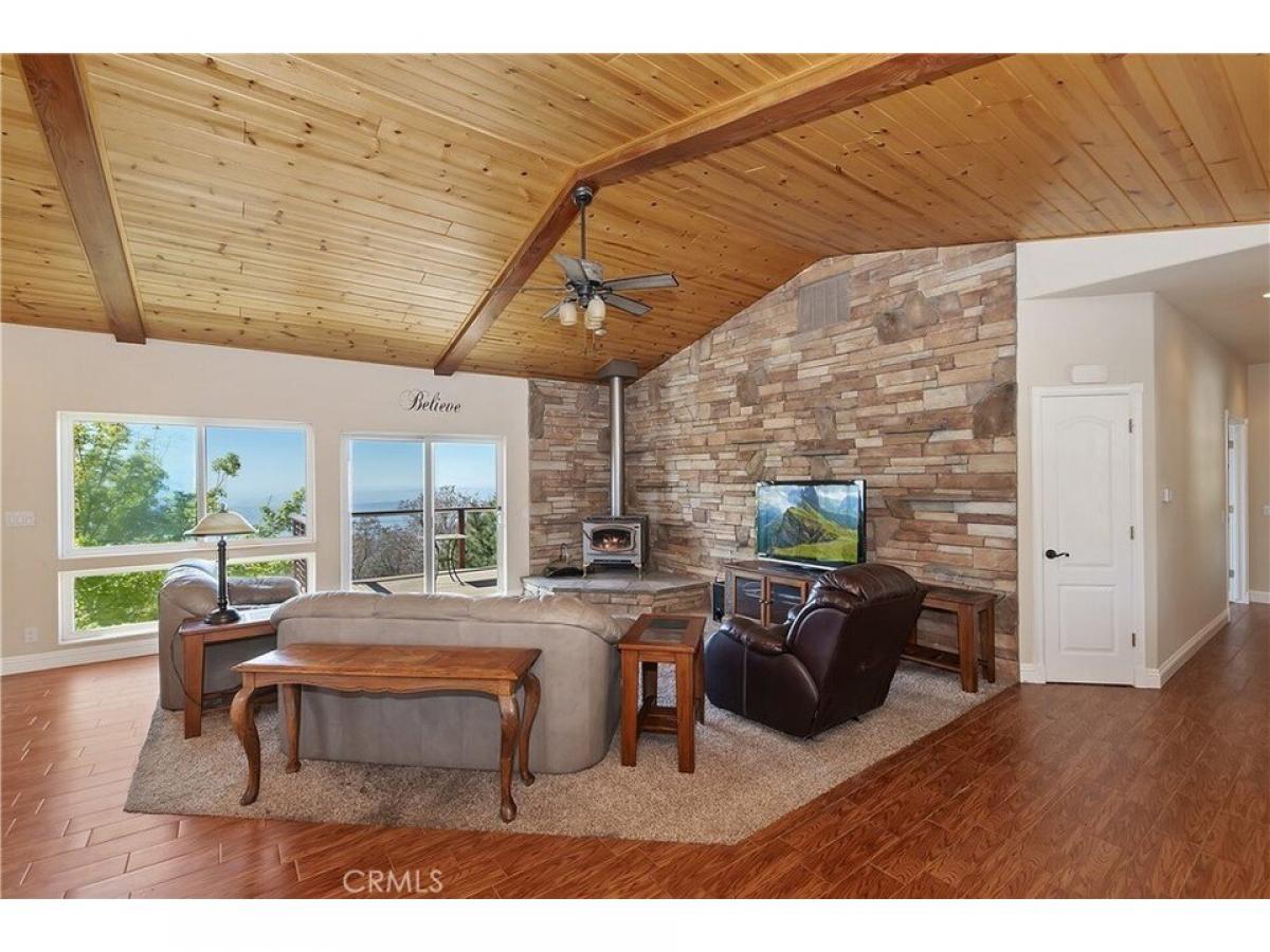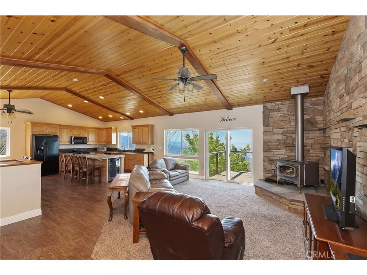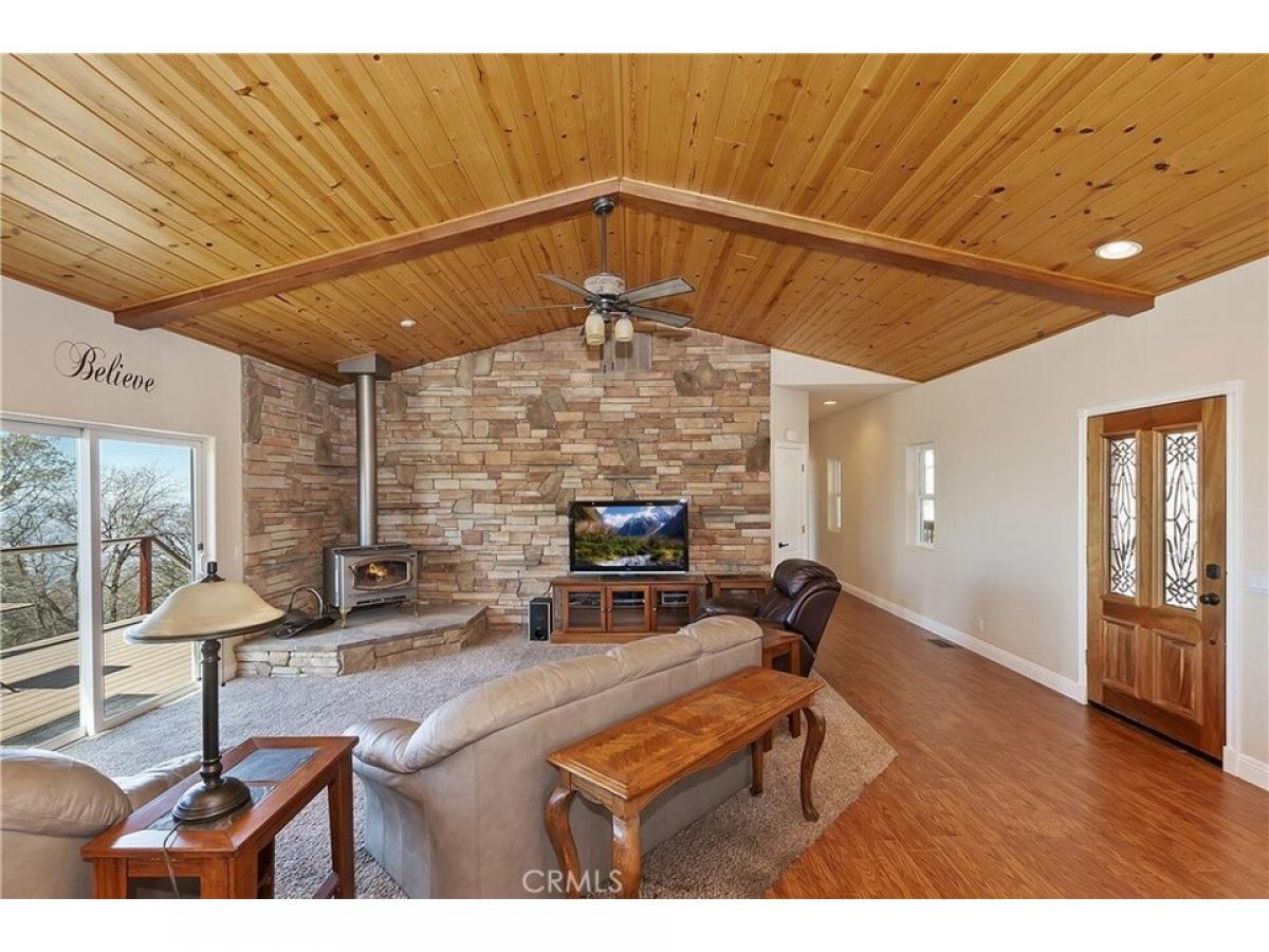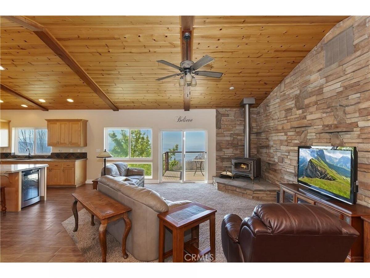 Welcome to this exceptional turnkey property featuring stunning panoramic views that will take your breath away! This thoughtfully designed home offers convenience and luxury at every turn. Arrive to the easy access driveway leading to a spacious two-car attached garage. Enter directly through the garage, or make a grand entrance through the inviting covered front porchmdash;perfect for morning coffee or evening relaxation. The main level showcases a modern open-concept design that seamlessly blends living, dining, entertaining and cooking. The kitchen area features a large breakfast bar with bonus beverage refrigerator, walk-in pantry, dining area, and laundry room with garage access. The spacious living area will catch your eye with built-in sheet rock shelves, the vintage looking, wood burning stove, back deck access leading you to amazing views, and the hallway to the half bath. The large primary suite on this level is a true retreat, featuring a luxurious bathroom with dual lavs, a jetted tub with incredible valley views, the walk-in shower, and a generous walk-in closet. Head downstairs and discover a versatile lower level complete with a large game room perfect for family fun, an additional bedroom for guests, and a full bathroom. There is also plenty of room for a 2nd bedroom addition! Head out the back slider to the patio and enjoy a large fenced yard with more wonderful views, this can also be a fresh canvas for gardening, picnic or bbq area, etc. You can even enjoy summers and entertain at the nearby clubhouse and swimming pool area! Just minutes away from Hwy 330 makes this a great commuter location, with near by bonus locations like the Running Springs shops and restaurants, Sky Park, Snow Valley, the Exploration Trail, Lake Arrowhead Village, etc. This move-in ready home is the perfect blend of comfort, style, and spectacular views. Come make it yours today!