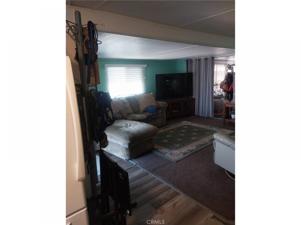 Senior Park -Hemet this home is a 10 wide , but has 2 expandos with a built on area in the middle so approx 900 sq ft( Buyer to Verify) The yard is enclosed with chain link fence.