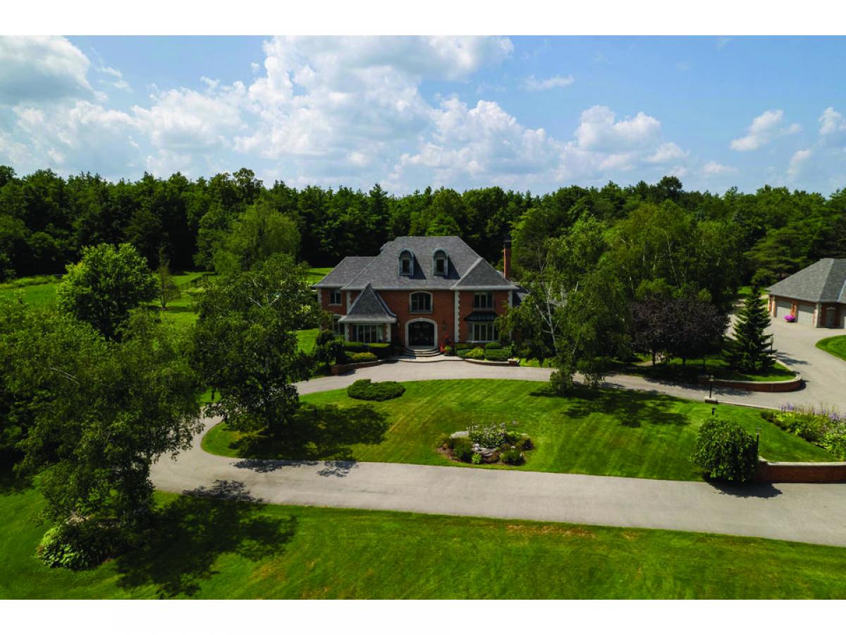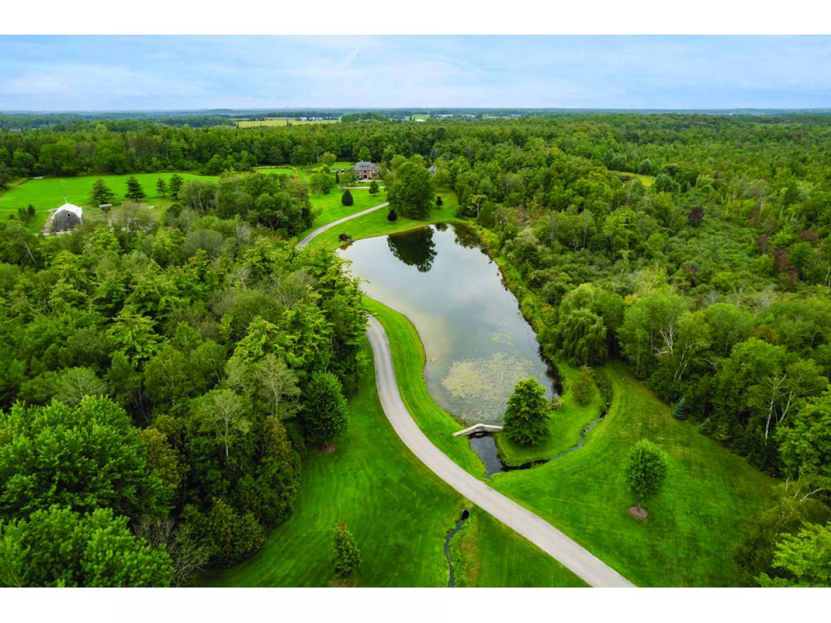 Down a private half a km long drive that wraps around a manicured spring-fed pond, this exquisite French chateau inspired estate w/nearly 14,000 sqft of living space is set back overlooking the pond to perfectly capture the manor