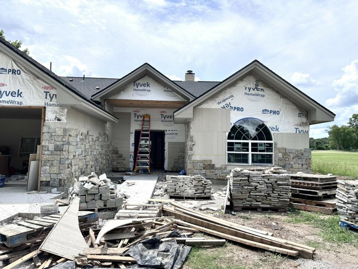 Golf Course Frontage (Hole #2) NEW CONTRUCTION: texturing walls, starting exterior stone work, concrete drive and backside concrete complete. 3 Bedroom/2 bath home features gray and white color tones, open floor concept, ONE LEVEL, vaulted ceilings, fireplace, custom cabinetry, quartz countertops, wrought iron front door, wider doorways, Samsung appliances and heat/air system will have smart technology, tankless water heater, 3 car garage, covered patio area, hot tub hook ups, exterior will consist of Stone, Stucco & Siding. The Coves at Bird Island, is a gated community that offers 24 hr security, a 18 hole Championship Golf Course, Pro shop, Club House, swimming pool, pickle ball and tennis courts, bball court, observation deck areas, LAKE ACCESS, BOAT LAUNCH area & Boat Slip Rentals