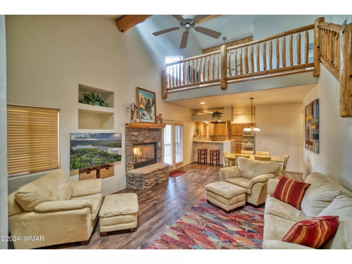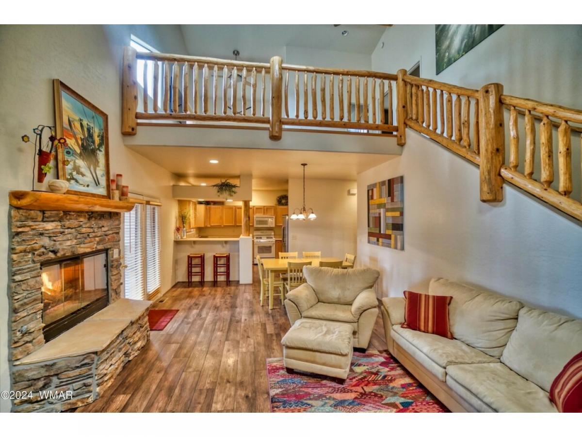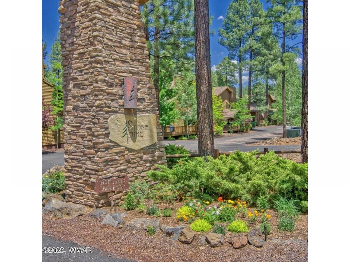LOCATION - BACKS NATIONAL FOREST ! Escape to the serene beauty of the White Mountains with this charming 3-bed, 2.5-bath townhome nestled in the coveted Stone Pine Estates. Located in an exceptional spot, this rare end unit backs the National Forest, offering unparalleled access to nature right from your doorstep. Step onto the covered deck and immerse yourself in the tranquility of the forest surroundings. With custom laminate flooring and rustic lodge pole accent beams and handrails, this home exudes mountain charm. Warm up on chilly evenings by the stone gas fireplace, creating a cozy ambiance. The master bedroom is conveniently located on the main level, providing ease and comfort, while two guest rooms upstairs offer ample space for visitors. A loft area serves as a versatile den or office space, adapting to your lifestyle needs. Experience the ultimate outdoor lifestyle with direct access to the Springs trail and a private community picnic area, perfect for enjoying sunny afternoons surrounded by nature's splendor. Whether you're an avid hiker, cyclist, or simply enjoy the peace of the forest, this location caters to all outdoor enthusiasts. Additionally, residents can enjoy the proximity to private and public golf courses, as well as the excitement of Sunrise ski resort just 45 minutes away. Don't miss the opportunity to make this exceptional property your mountain retreat, where every day feels like a vacation amidst the beauty of the White Mountains. Schedule your showing today and embark on a journey to a lifestyle of adventure and relaxation.