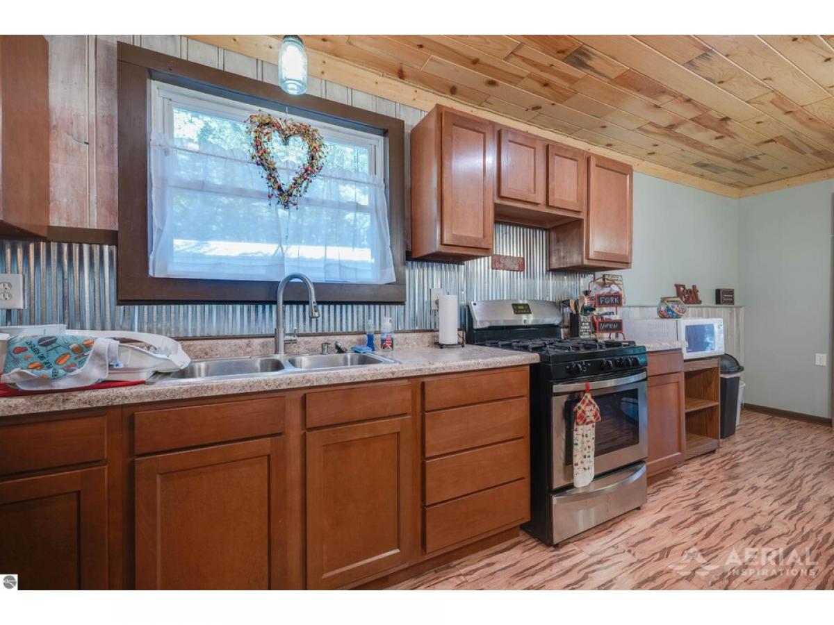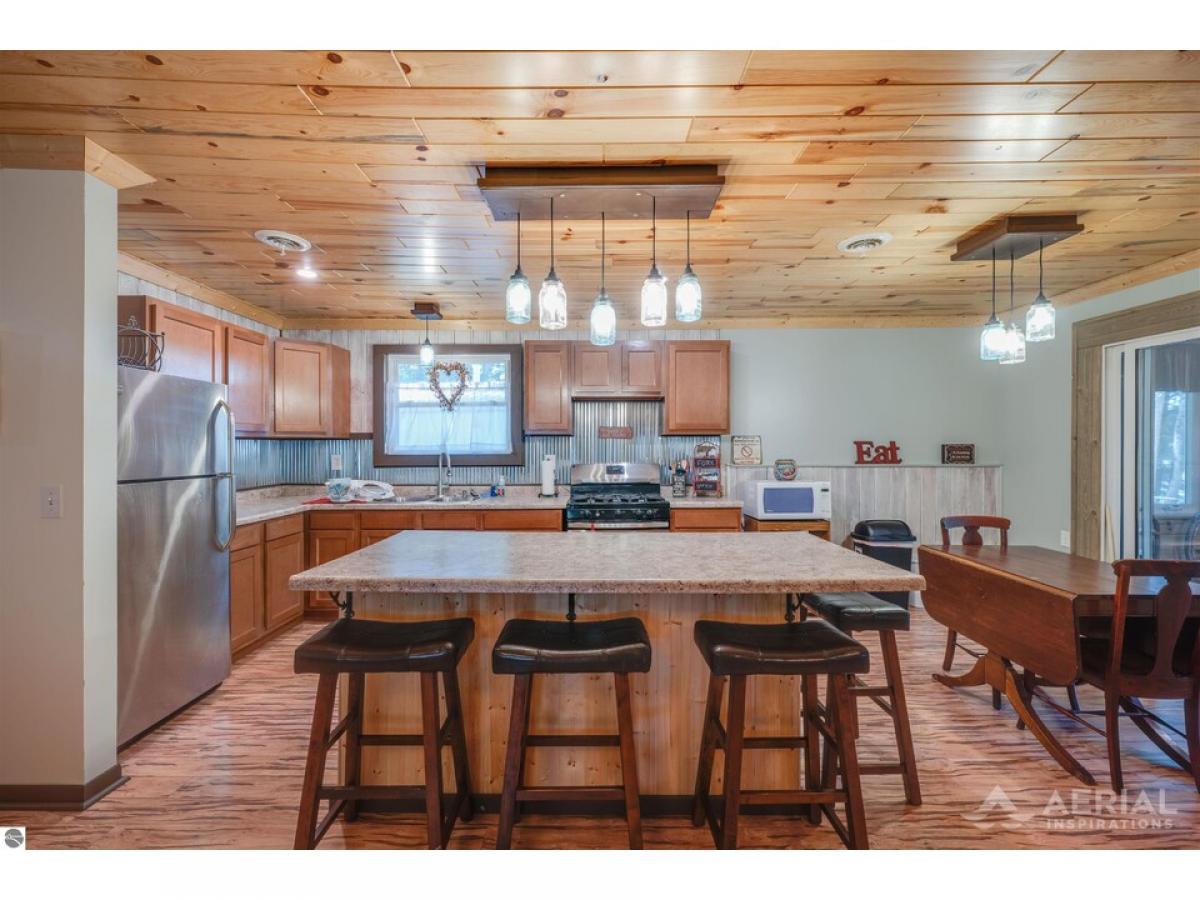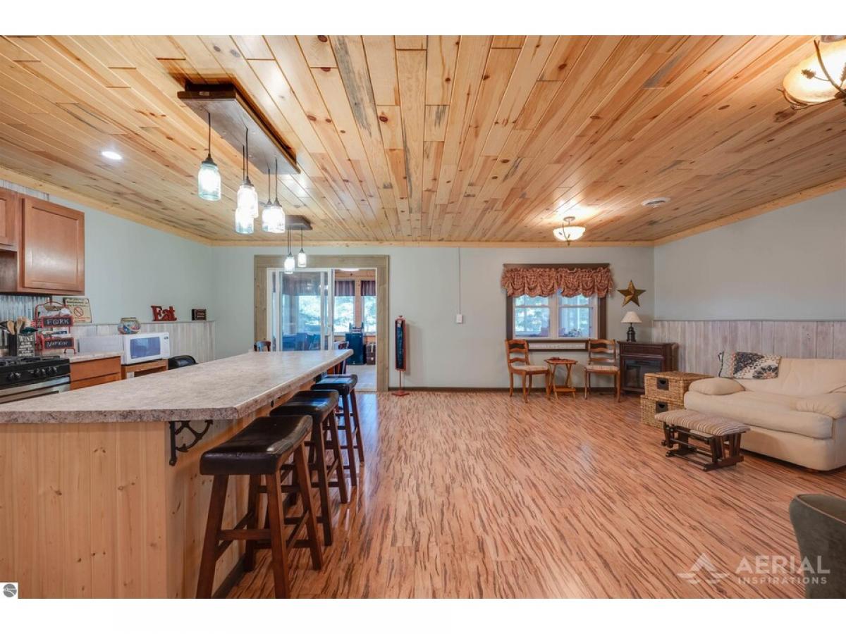 TITTABAWASSEE RIVER! Beautifully remodeled 3 bedroom, 1 bath home with frontage on the Tittabawassee River! Pontoon down the river into Secord Lake! The main living area features an open floor plan with knotty pine ceilings. The kitchen features an island for extra work room, metal backsplash, custom hanging quart jar lights, whitewashed wood wall accents and lots of charm. The primary bedroom features a walk-in closet and plenty of space! This home has a lot of unique accents including a metal ceiling, barn-style entry door and custom fan blade light in the third bedroom. The bathroom has been fully updated including metal wainscot and vinyl laminate flooring. Main floor laundry/mechanical room. Walk out the sliding door to sunroom with knotty pine walls, vaulted ceiling and beautiful views of the river. The deck overlooks a beautifully landscaped paver patio with firepit. The seawall has been newly constructed to the water’s edge where you have 80ft of frontage. 2 car garage for all your up north toys and storage needs. 15 minutes from downtown West Branch! Check out the Four Lakes Task Force website for more information on the Secord Dam repair. https://www.four-lakes-taskforce-mi.com/