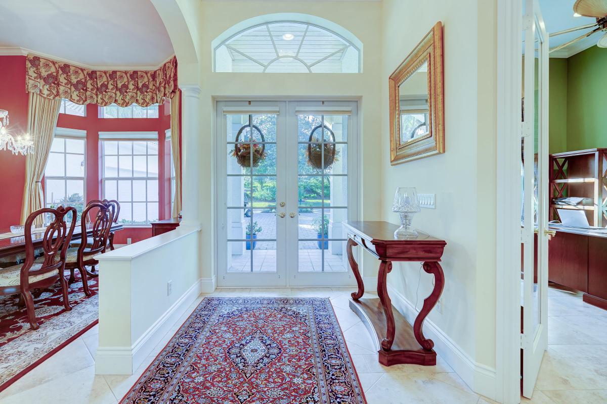Luxury lakeside living awaits in this 5BR, 3 full & 2 half bath home in prestigious Willoughby Golf Club. All impact glass & doors. Main level features a spacious primary suite, 2 guest rooms w/ Jack & Jill bath, office w/ closet (possible 6th BR), living rm w/ gas fireplace, great rm w/ cabana bath opening to lanai & grill area, dining rm, breakfast nook, and kitchen w/ double wall ovens, island, prep sink & 2nd DW. Elegant wood & tile floors flow throughout. Upstairs offers 2 more BRs, full bath & private balcony overlooking the lake & pool. Enjoy resort-style amenities--golf, tennis, pickleball & more. Minutes from downtown Stuart's dining, boutiques & farmers market.