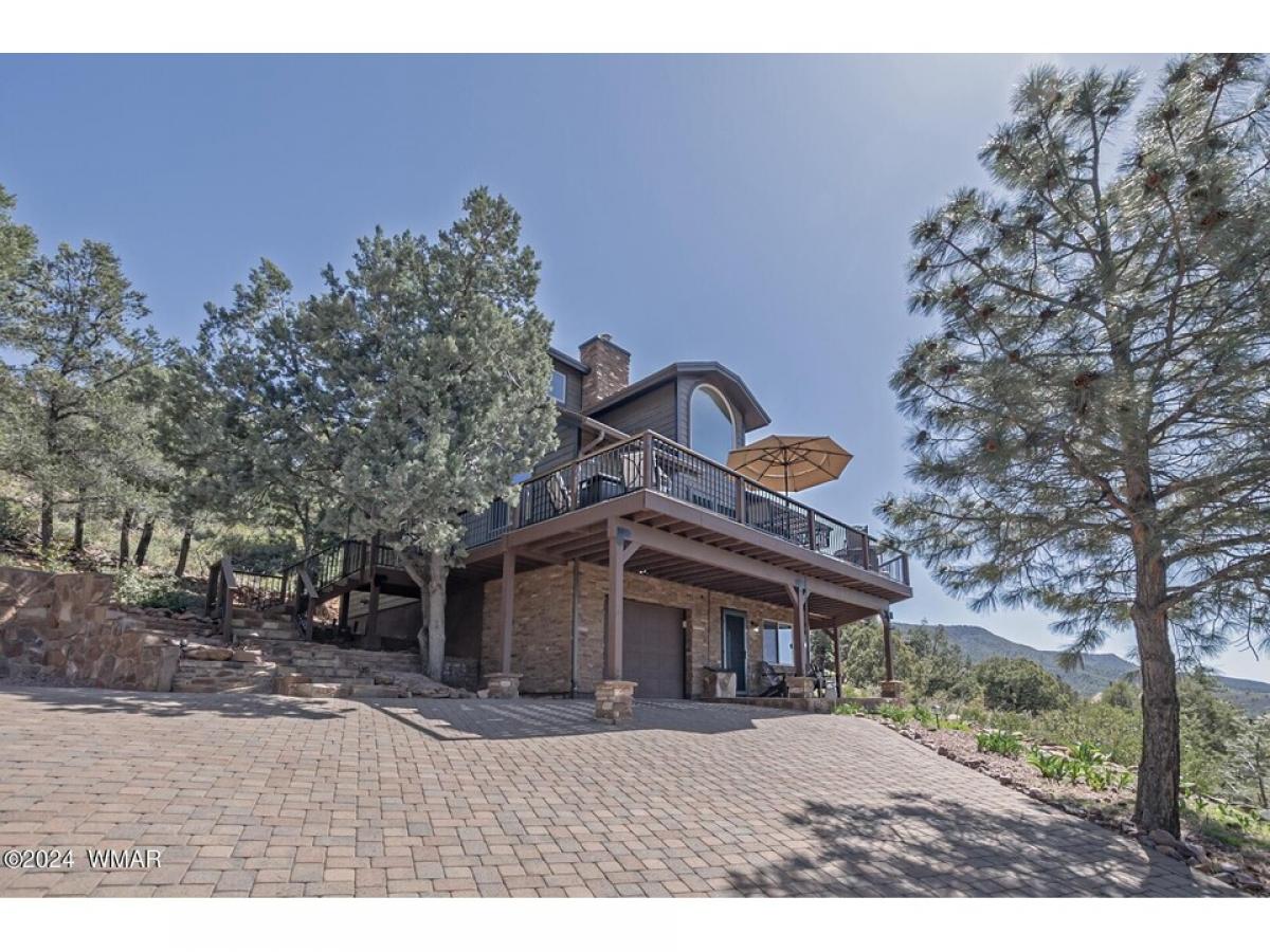 Welcome home to this beautiful custom built 3-bedroom, 4-bathroom retreat boasting breathtaking panoramic views of the serene mountains and picturesque town. Nestled in a tranquil neighborhood, this inviting home offers the perfect blend of comfort and sophistication. Upon entering, you'll be greeted by an open and airy great room concept, ideal for entertaining guests or enjoying cozy nights in with loved ones. The spacious living area seamlessly flows into the dining space and kitchen, creating a warm and inviting atmosphere. The large kitchen features sleek stainless-steel appliances, complemented by a convenient walk-in pantry, ensuring ample storage space for all your culinary needs. Located on the main floor, the master suite offers a peaceful sanctuary with stunning CLICK ''MORE'' views, providing the perfect retreat at the end of a long day. Two additional generously sized bedrooms provide plenty of space for family members or guests. For added convenience, this home boasts a one car garage, providing secure parking and storage options. For those seeking additional privacy the downstairs can be used as guest quarters with its own entrance and covered patio or it can offer endless possibilities. Step outside to the expansive patio area and soak in the awe-inspiring vistas of the surrounding mountains and the charming town of Pine. Whether you're enjoying your morning coffee or hosting a barbecue with friends, this outdoor oasis is sure to take your breath away. Over the past few years there has been a tremendous number of upgrades. The entire deck has been rebuilt, New AC and Heat Pump, LP Siding, Stonework on the lower patio wall and chimney, Meshtech Security doors, New dual pane windows throughout, New Roof, New French Drain and Landscaping, Remodeled bathroom in the basement plus laminate flooring and lighting. Other upgrades throughout the years consist of new flooring throughout the home, upgraded kitchen countertops, driveway pavers, moss rock walls, lower deck added and exterior stairway. With over $200,000 worth of upgrades already completed, this home is in move-in condition. All it needs is you! The furniture is negotiable outside of escrow.