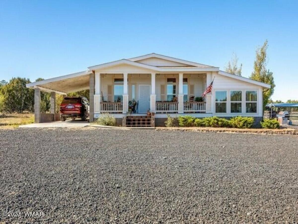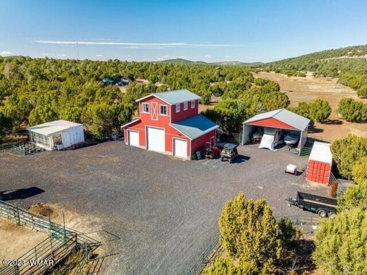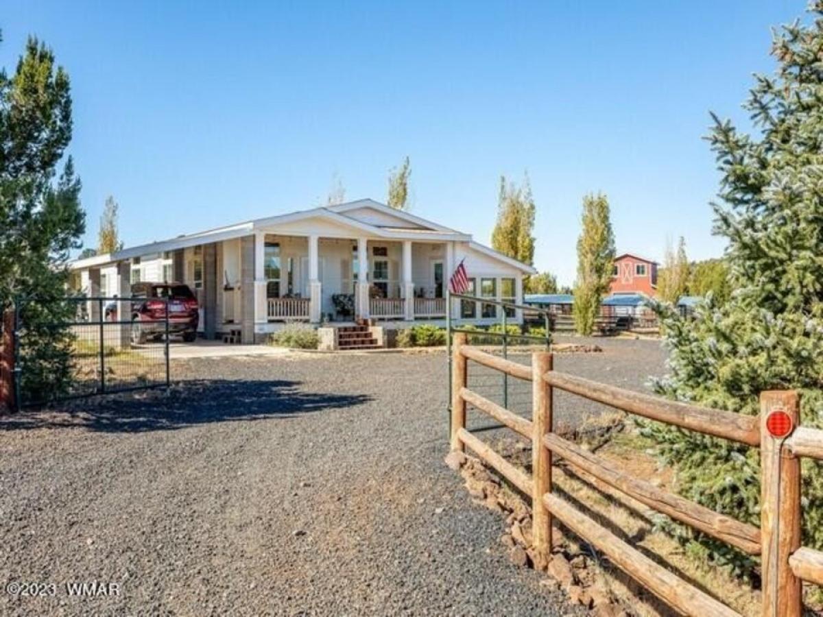 YOUR OWN MINI RANCH AND HOBBY FARM! 34.08 Acres to make your own. Bring your horses, cows, goats and chickens where you can enjoy a pinch of country elegance at the jewel of the White Mountains. The main house is a custom Cavo manufactured home with 2 bedrooms plus office or den. All tape and textured walls. The open floor plan is great for entertaining. The addition includes a 12 x 32 art studio with multiple dual pane windows for natural lighting and a pellet stove to keep this space warm in the winter. A 12 x 12 mud room with full length closet providing plenty of storage. The main home also features a single car attached garage as well as a covered carport. But there are plenty more outbuildings for all your storage needs! See additional description. The main barn is 28x42 with 3 bays. The first bay is currently being utilized as a workshop. The main bay is large enough for another vehicle or tractor. The third bay features a built-in wine cellar and a meat-hanging fridge with extra storage above. Need a room to keep your littles entertained? Head up the stairs to the 20 x 20 game room featuring a pool table, shuffleboard, darts, and electronic video games. They can enjoy the games while you take in the amazing views of the surrounding mountain ranges. Next to the main barn is a 30 x 30 pole barn to store all your mini ranch equipment. Features power and lighting as well as 30 AMP RV hookups. Hay storage is located behind the main barn and the 8 x 30 storage container to store alfalfa and stock feed is located next to the pole barn. If you have a green thumb and love to garden this home features an 11 x 20 climate-controlled greenhouse as well as a spacious garden area just in front of the 8-pen animal corral. The house and lower pasture sit on 6.44 acres and is completely fenced and cross fenced. The upper pasture is 27.12 acres is included in the sale and is located just north of the barn. This parcel is also fully fenced and cross fenced and features a rain/snow runoff pond for your animals. This property has all that you need to escape the hustle and bustle of city life. Located in Northeastern Arizona with cool summer temperatures at just under 7000 feet. Enjoy the abundance of wildlife from your front deck which includes elk, deer, antelope and turkey. The home is less than 5 miles from Sitgraves National Forest. If you are a fan of the Old West, this home is just 30 miles from John Wayne's famous Bar 26 Ranch and historic Milky Ranch. All this just 20 minutes from Show Low. Leave the city life behind and come make this mountain home your forever oasis. Furniture and farm equipment are available for purchase outside of escrow.