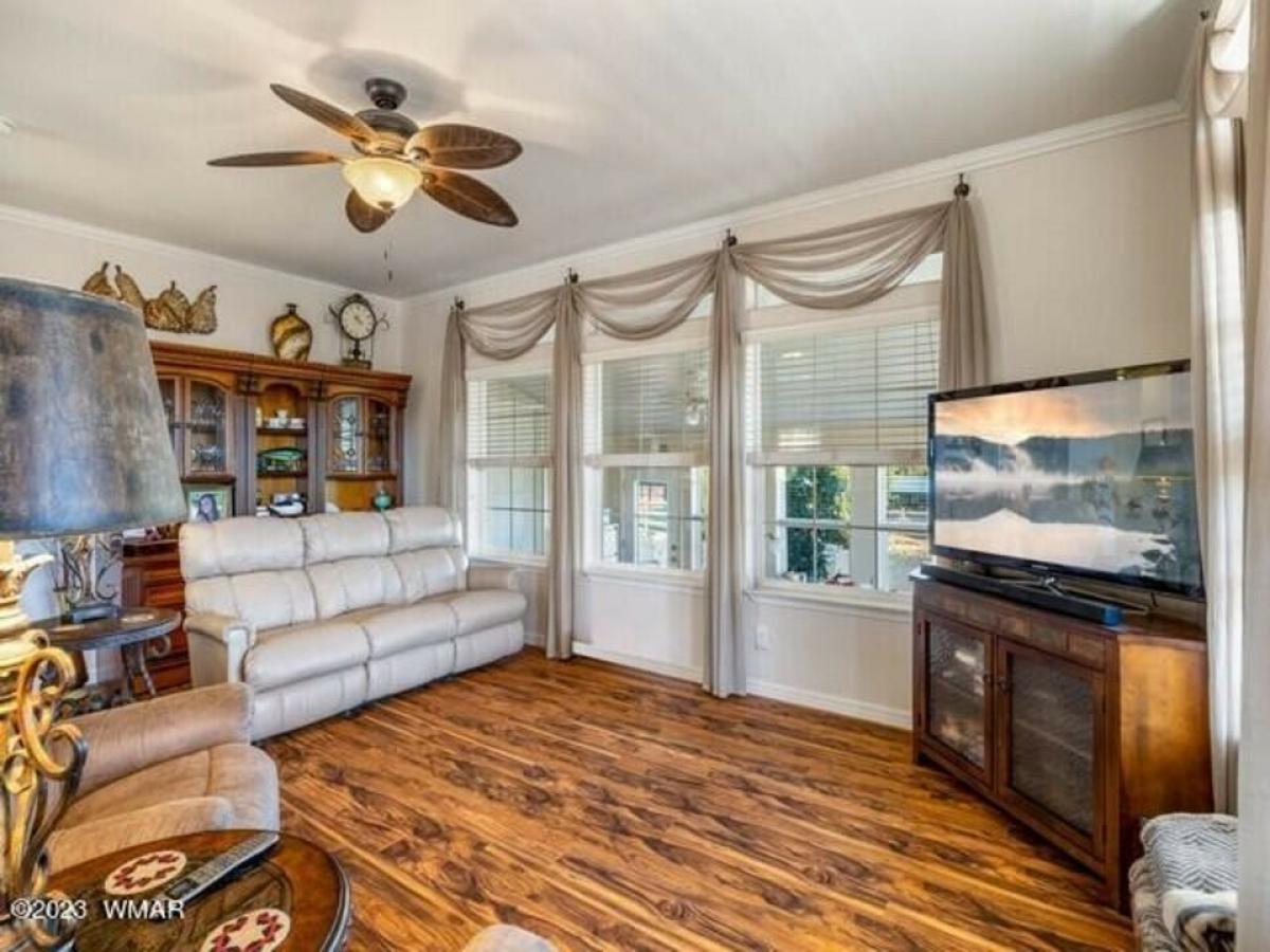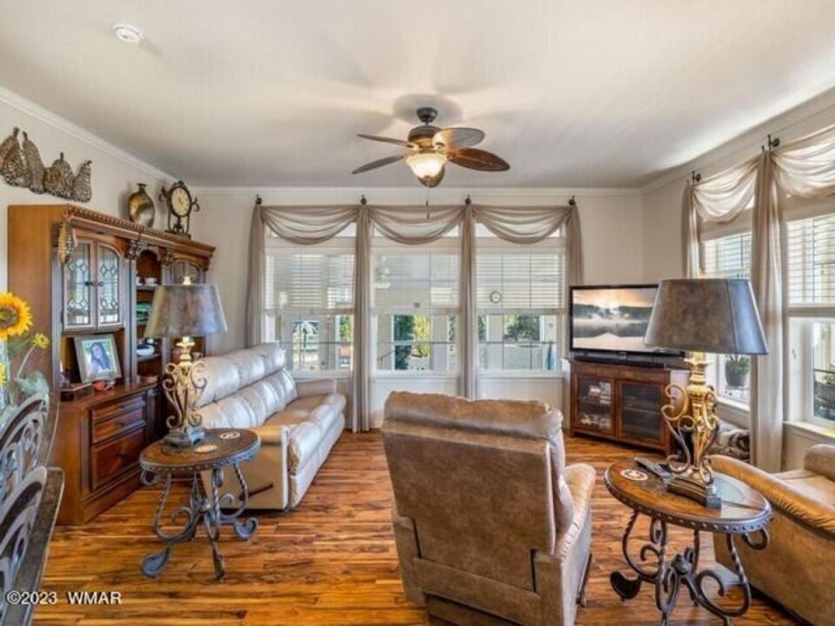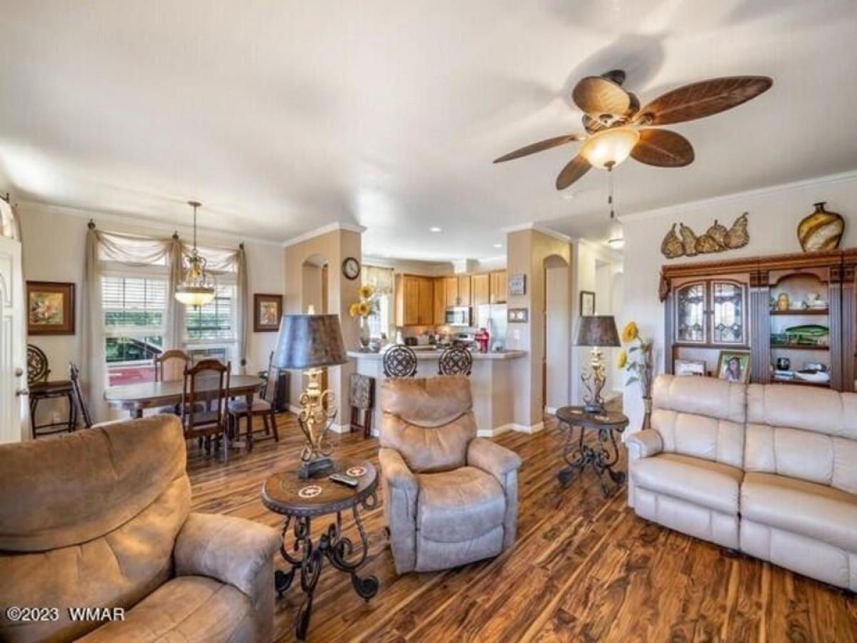 YOUR OWN MINI RANCH AND HOBBY FARM! 34.08 Acres to make your own. Bring your horses, cows, goats and chickens where you can enjoy a pinch of country elegance at the jewel of the White Mountains. The main house is a custom Cavo manufactured home with 2 bedrooms plus office or den. All tape and textured walls. The open floor plan is great for entertaining. The addition includes a 12 x 32 art studio with multiple dual pane windows for natural lighting and a pellet stove to keep this space warm in the winter. A 12 x 12 mud room with full length closet providing plenty of storage. The main home also features a single car attached garage as well as a covered carport. But there are plenty more outbuildings for all your storage needs! See additional description. The main barn is 28x42 with 3 bays. The first bay is currently being utilized as a workshop. The main bay is large enough for another vehicle or tractor. The third bay features a built-in wine cellar and a meat-hanging fridge with extra storage above. Need a room to keep your littles entertained? Head up the stairs to the 20 x 20 game room featuring a pool table, shuffleboard, darts, and electronic video games. They can enjoy the games while you take in the amazing views of the surrounding mountain ranges. Next to the main barn is a 30 x 30 pole barn to store all your mini ranch equipment. Features power and lighting as well as 30 AMP RV hookups. Hay storage is located behind the main barn and the 8 x 30 storage container to store alfalfa and stock feed is located next to the pole barn. If you have a green thumb and love to garden this home features an 11 x 20 climate-controlled greenhouse as well as a spacious garden area just in front of the 8-pen animal corral. The house and lower pasture sit on 6.44 acres and is completely fenced and cross fenced. The upper pasture is 27.12 acres is included in the sale and is located just north of the barn. This parcel is also fully fenced and cross fenced and features a rain/snow runoff pond for your animals. This property has all that you need to escape the hustle and bustle of city life. Located in Northeastern Arizona with cool summer temperatures at just under 7000 feet. Enjoy the abundance of wildlife from your front deck which includes elk, deer, antelope and turkey. The home is less than 5 miles from Sitgraves National Forest. If you are a fan of the Old West, this home is just 30 miles from John Wayne's famous Bar 26 Ranch and historic Milky Ranch. All this just 20 minutes from Show Low. Leave the city life behind and come make this mountain home your forever oasis. Furniture and farm equipment are available for purchase outside of escrow.