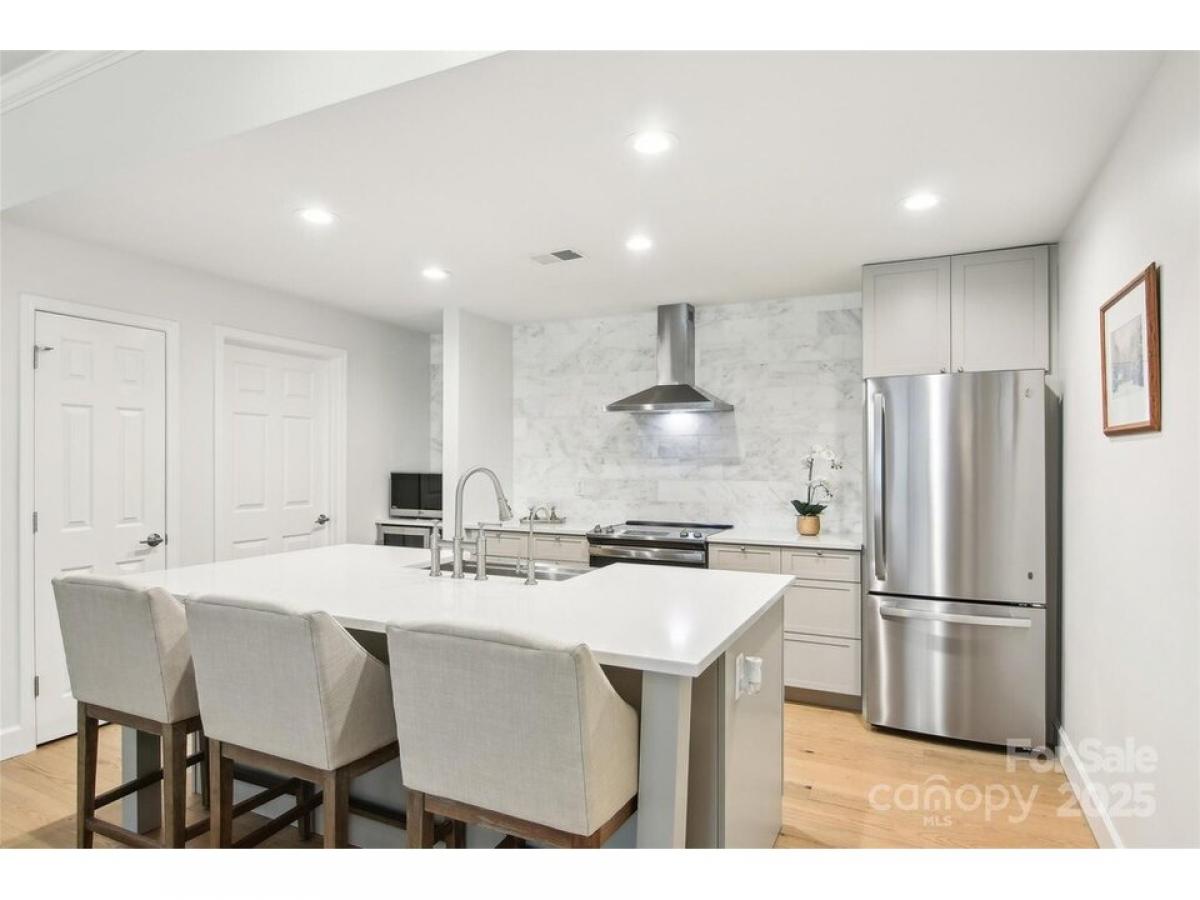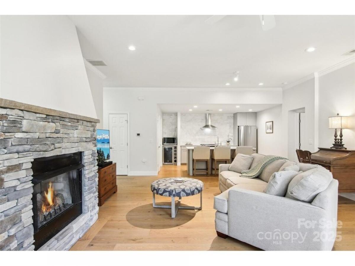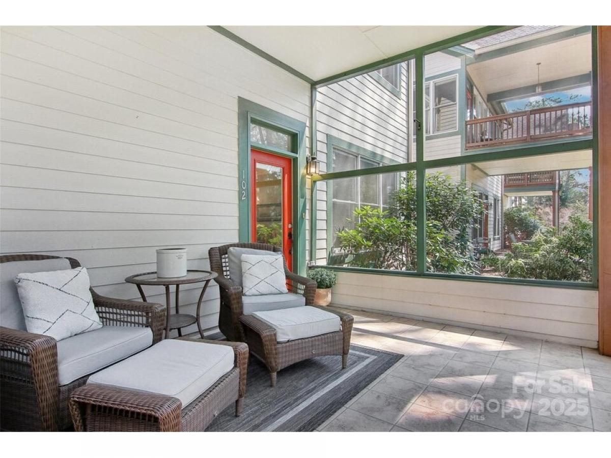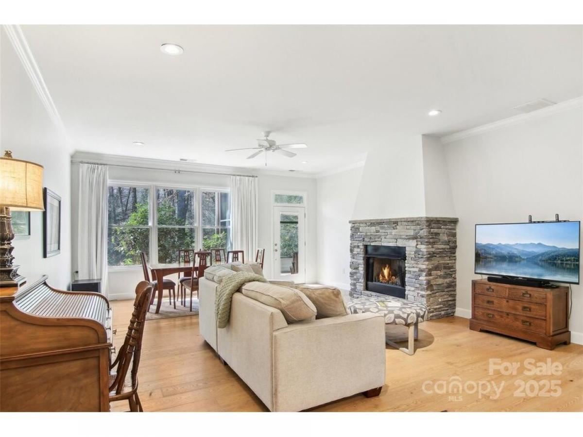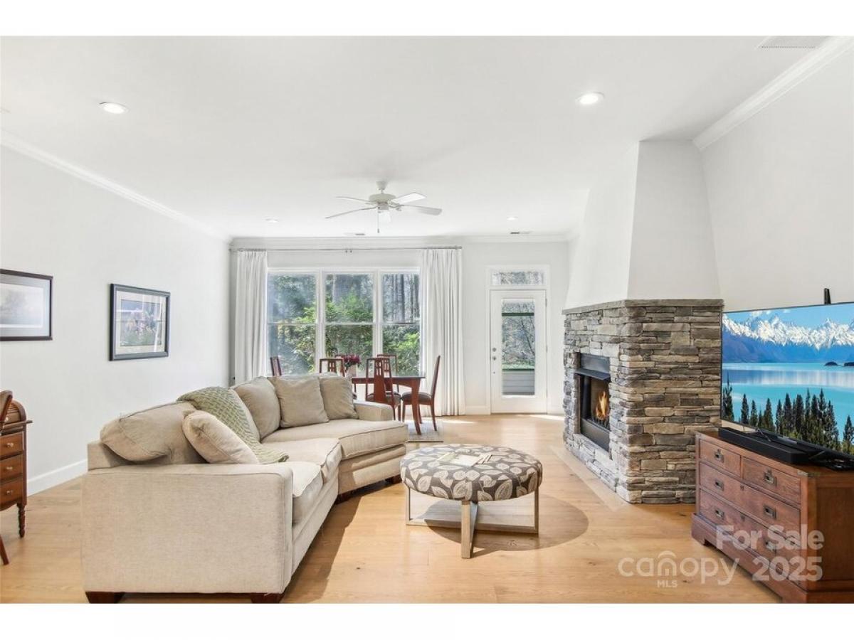 Upscale end-unit condo in Straus Park with private garage, screened porch, and completely level entry and layout. This unique unit has been beautifully updated and features two bedrooms and two full baths with upscale kitchen, upgraded bathrooms, private screened-in porch overlooking wooded green area, stone fireplace (natural gas) and so much more. Discover upscale finishes, ample light and one level living at its best. Located in the highly-coveted community of Straus Park, you will enjoy neighborhood amenities like pool, club house, lake, tennis and pickleball courts, community garden and walking trails all within the city limits of Brevard, N.C.