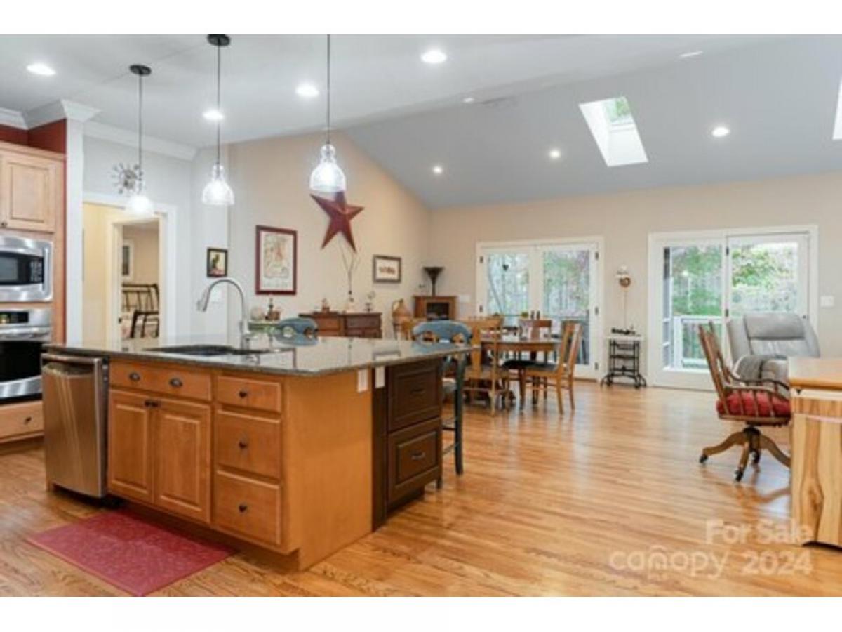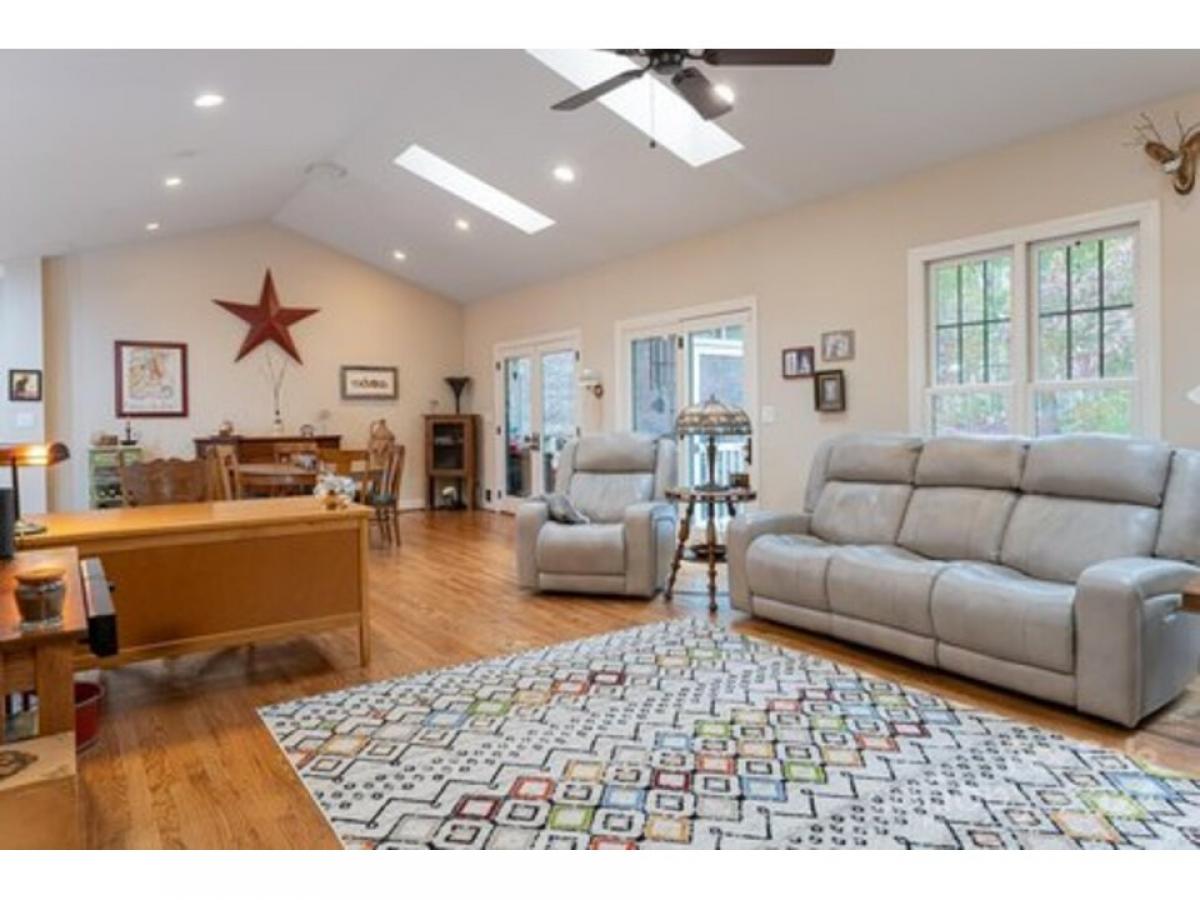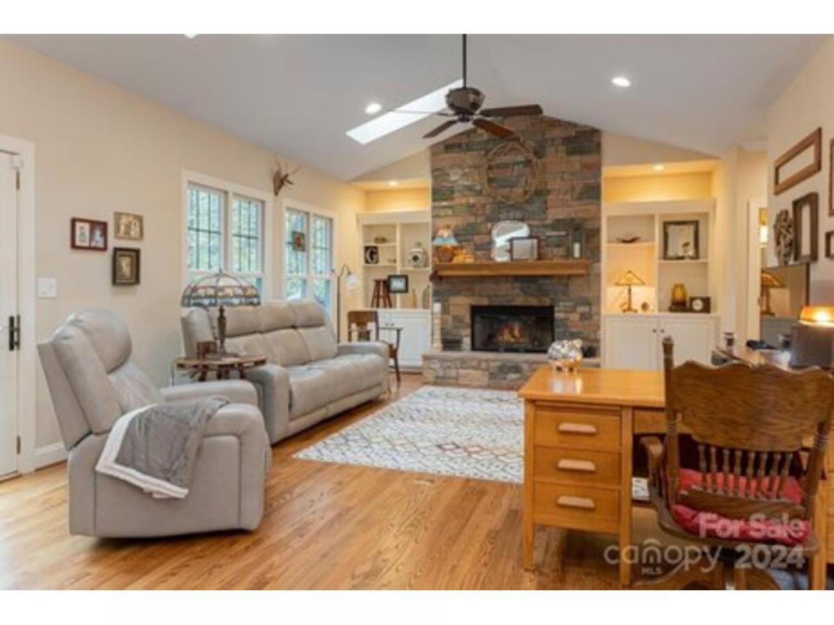 Stunning and beautifully appointed home with amazing open floor plan situated on 1.28 acres of natural setting with stream and footbridge. Level driveway with beautiful landscaping. The main level boasts light filled rooms with skylights, hardwood floors, vaulted ceilings, great room with floor to ceiling stone fireplace flanked by bookcases, open kitchen with high-end appliances, pull-outs, large island with breakfast bar, walk-in pantry, large primary suite with access to screened porch, 2 walk-in closets, tray ceiling in bath, garden tub, double vanities with storage tower and walk-in tiled shower, study with closet and oak wood wainscoting, laundry room with cabinetry and sink. Enclosed breezeway leads to 2 car garage. The lower level features family room with granite wet bar area, 2 guest bedrooms, 2 bathrooms (one is a Jack & Jill with family room), cedar closet, and fantastic workshop/storage space. Enjoy this private natural setting on the screened porch, open deck or LL patio.